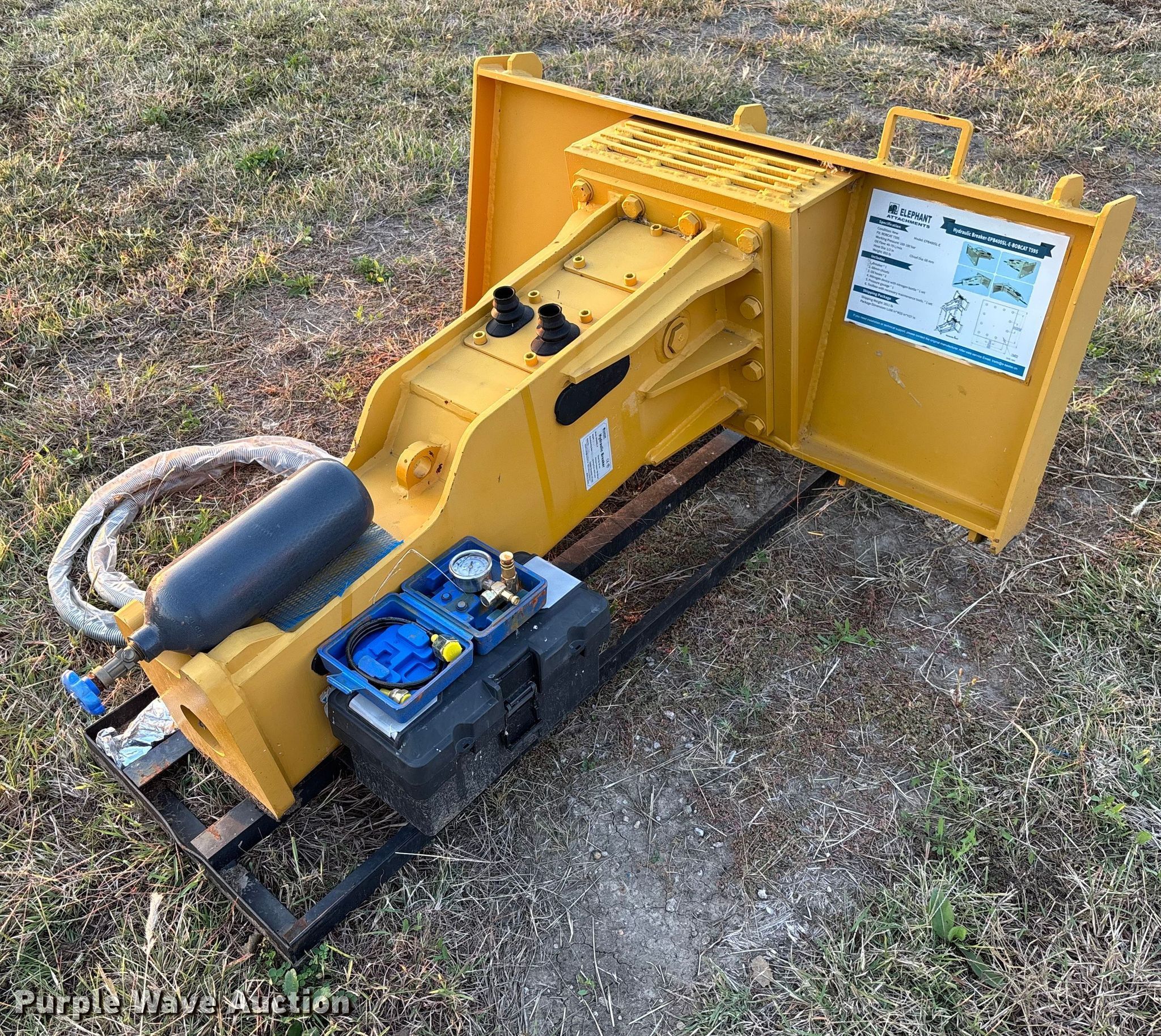 Purple Wave is selling a used Skid Steer Attach. in Kansas. This item is a 2024 Elephant EPB400SL-E skid steer breaker with the following: Serial: 2410063, Nitrogen fill kit, Fits bobcat T595 skid steer