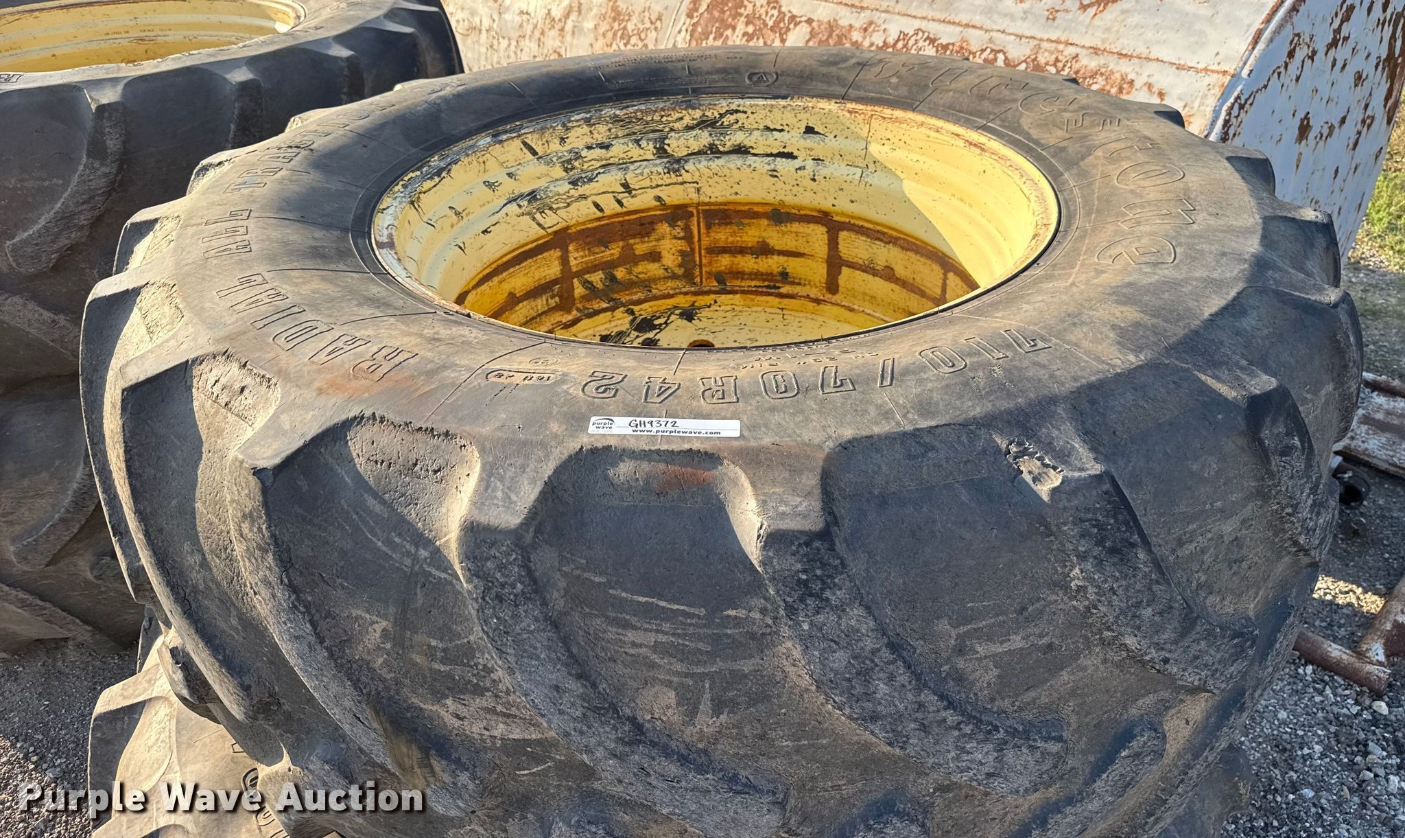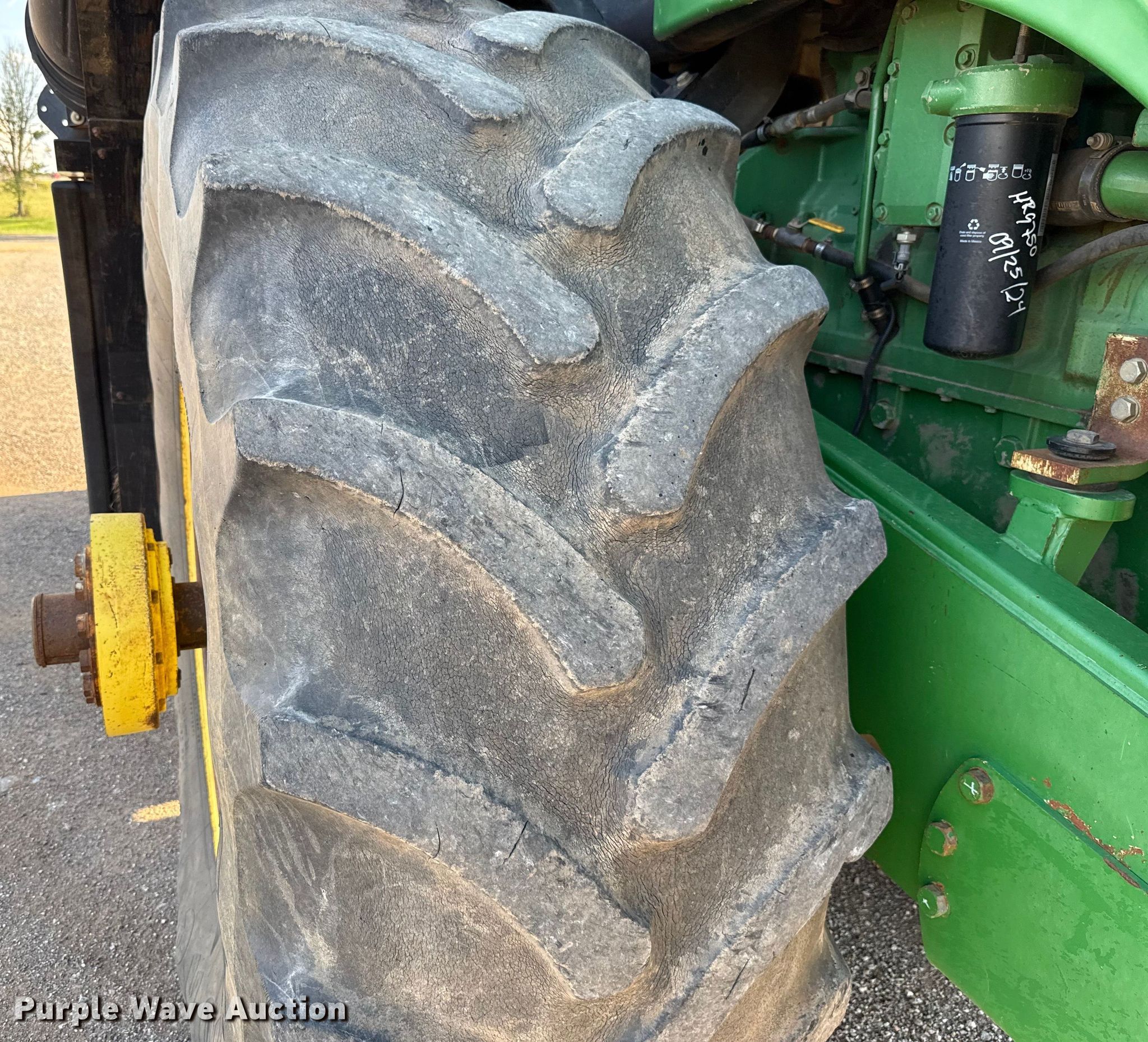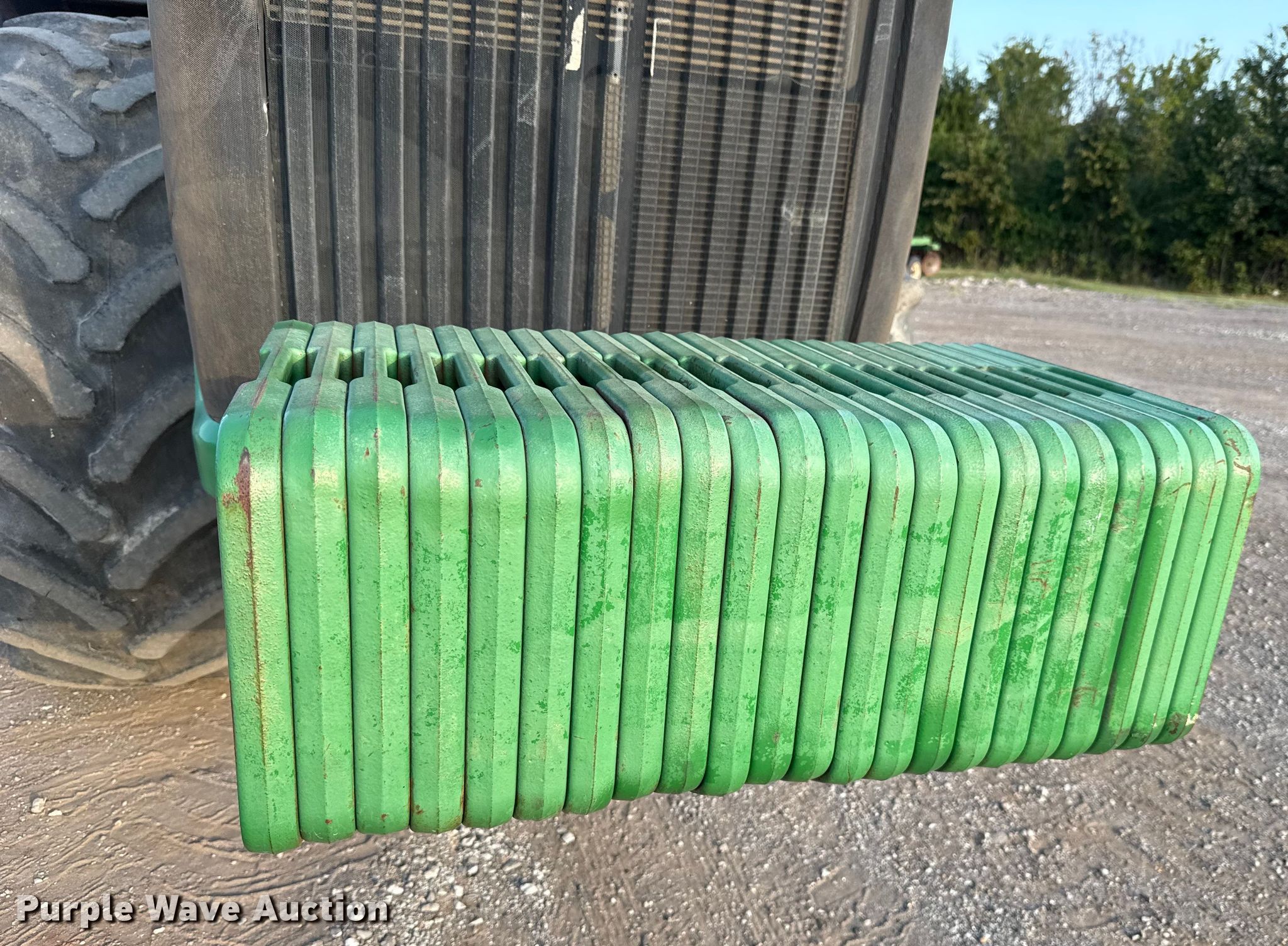 2008 John Deere 9530 Scraper Special 4WD tractor. Hours: 9,823 on meter, Serial: RW9530E002073. Engine John Deere 6135HRW01, Displacement: 13.5L, Cylinders: 6, Fuel type: Diesel, kW: 440. Transmission Powershift, 18F - 6R, Differential lock. Operators station AC, Heat. Features Seven pin outlet, ISOBUS outlet, Hydraulic remote sets Rear: 4, Suitcase weights: 22. Tires Size: 710/70R42, Duals, Front duals. Notes Transmission issues, low gear slips underload. Seminole, OK 74868