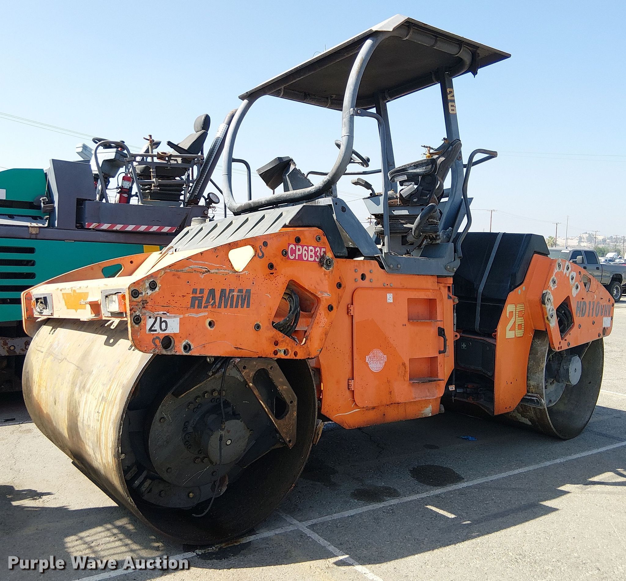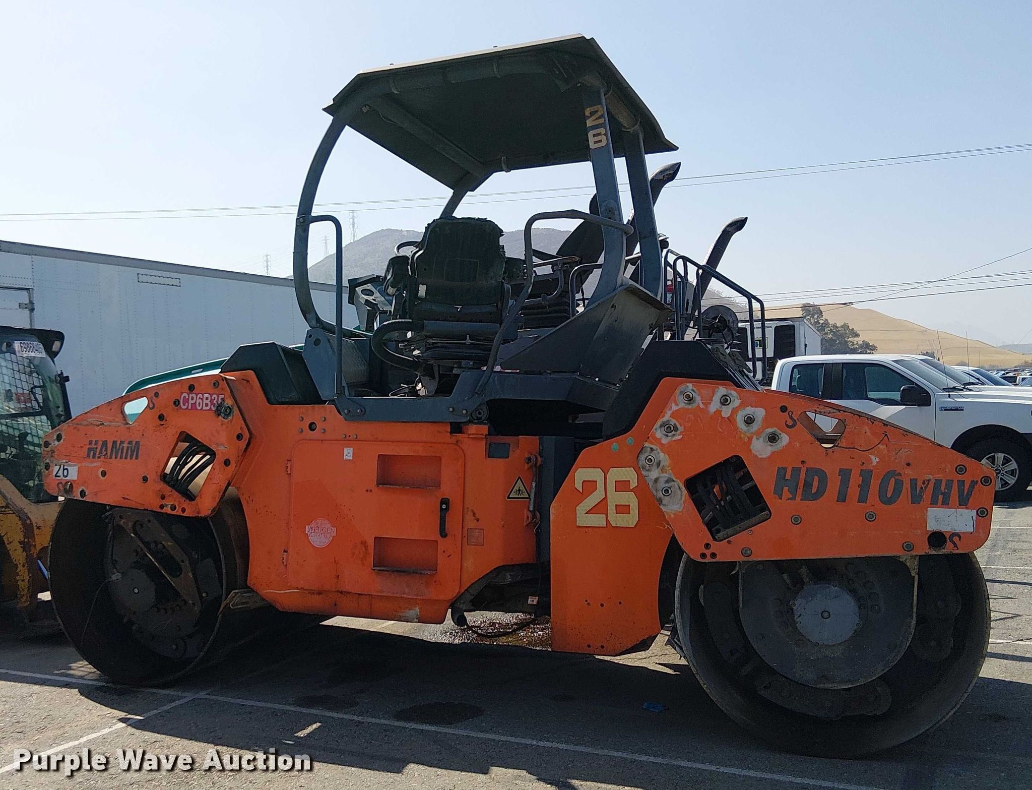 Purple Wave is selling a used Double Drum Roller Compactor in California. This item is a 2009 Hamm HD110 double drum vibratory roller with the following: Hours: Unknown, Serial: H1810514