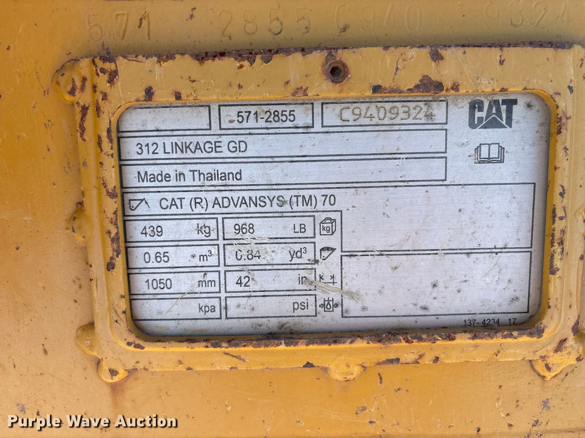 2022 Caterpillar 315 excavator. Hours: 1,170 on meter, Serial: CAT00315TWKX20534, Unit #: 71492335. Engine Caterpillar, Displacement: 3.6L, Cylinders: 4, Fuel type: Diesel. Transmission Hydrostatic, Two speed travel. Operators station Enclosed cab, AC, Heat, Backup camera. Features Auxiliary hydraulics, Counter weights, Backfill blade Width: 101", Boom Standard, Stick Stick length: 9' 6", Quick coupler: Hydraulic Caterpillar 312 Linkage, Thumb: Hydraulic Caterpillar THC13912, Bucket Caterpillar 312 Linkage GD, Capacity: 0.84 cu.yd., Width: 42", Teeth: 7. Tracks Width: 23.5", Steel, Grouser pads: Triple. Notes Glass missing, Glass cracked. Insurance salvage, stored at a secured facility. Please review REQUIRED REMOVAL INSTRUCTIONS. Insurance Salvage. Ebensburg, PA 15931
