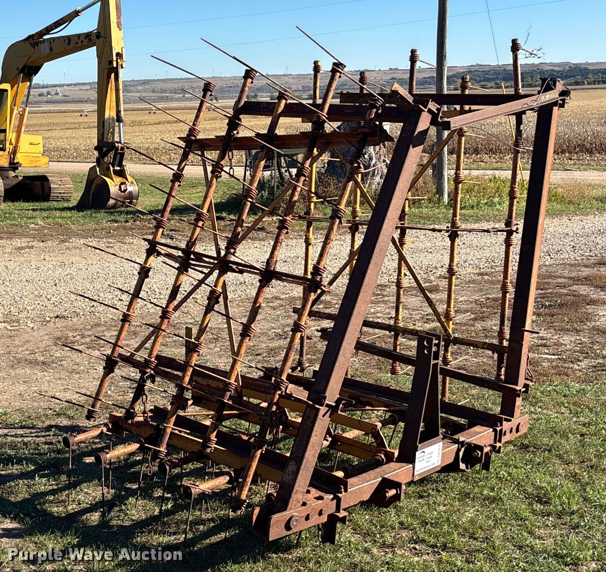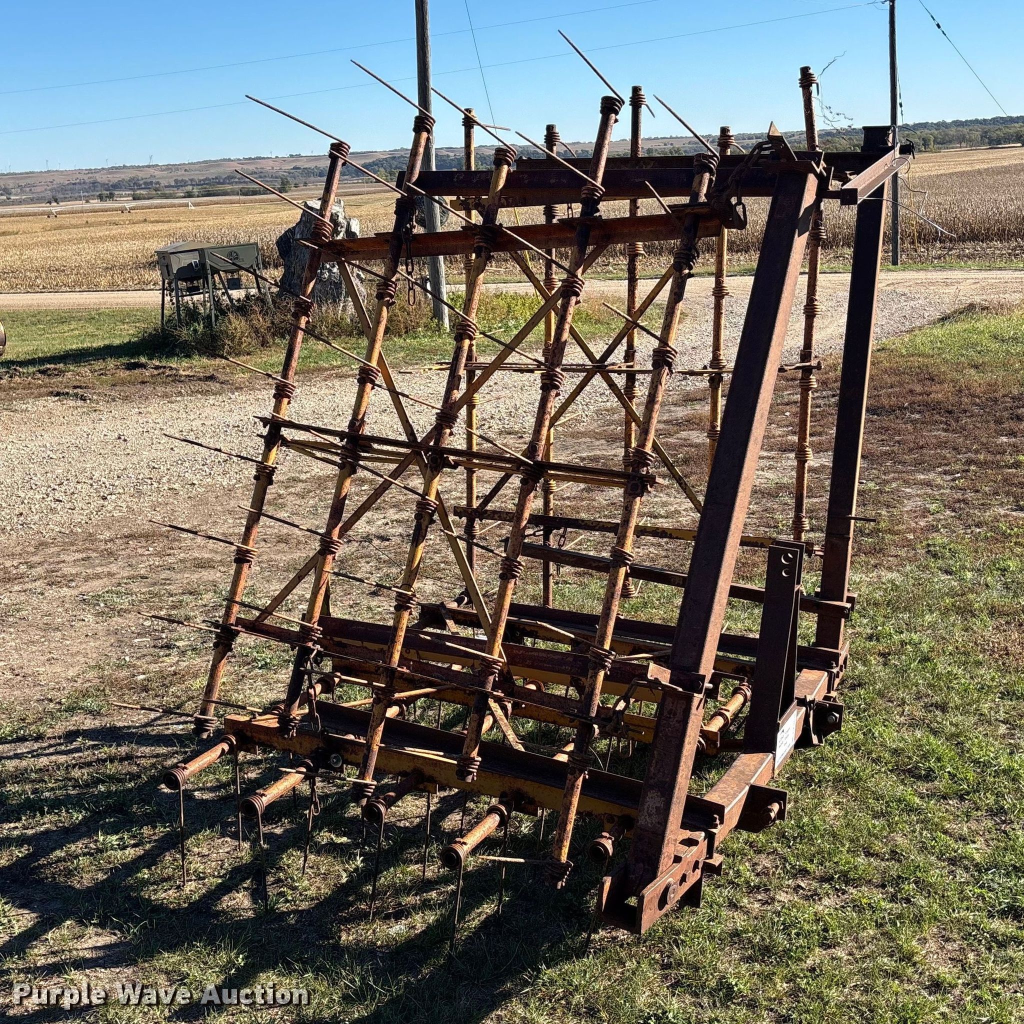 Purple Wave is selling a used Tillage Other in Kansas. This item is a Tine harrow with the following: Overall width: 18', Hitch: Three point, Adjustable depth