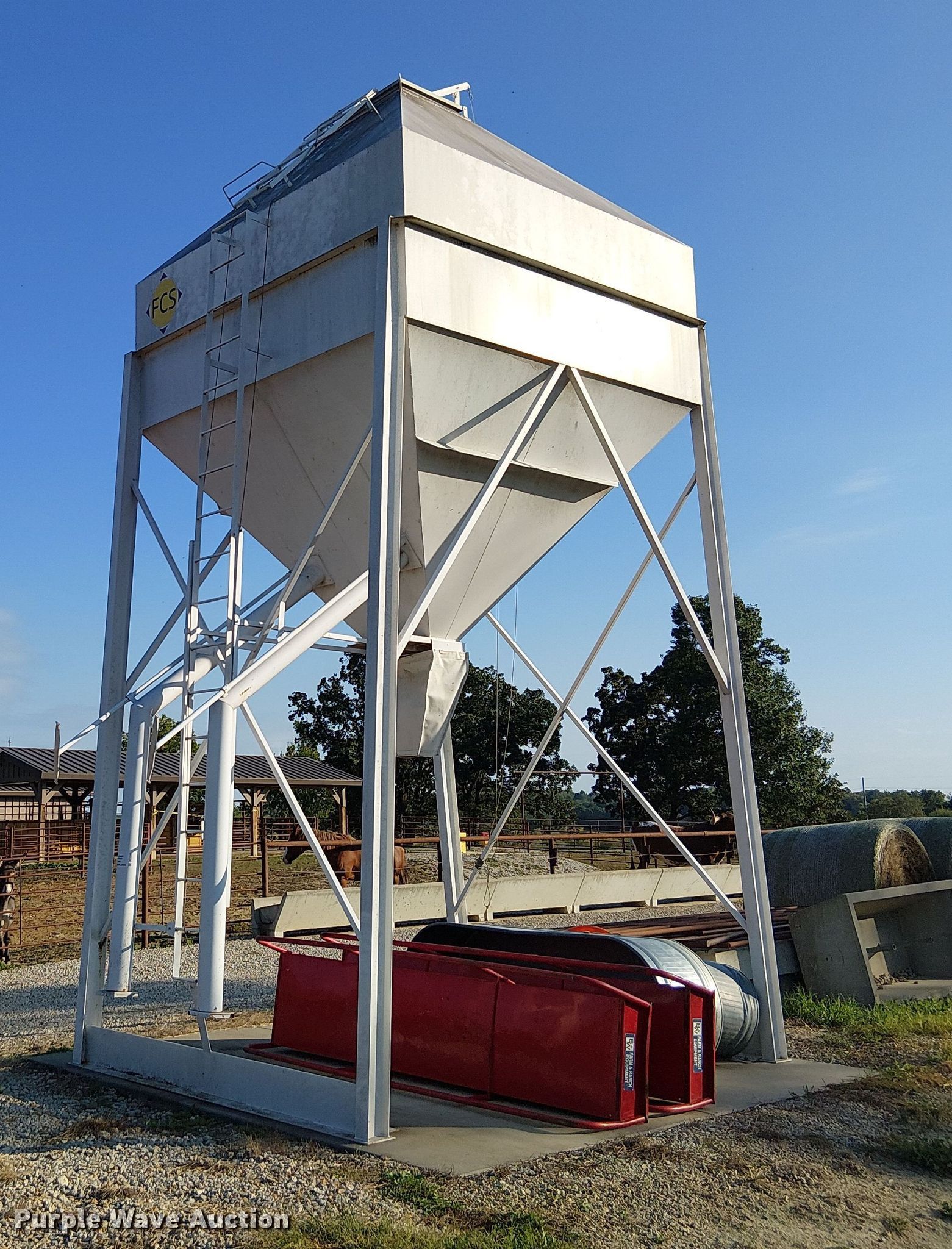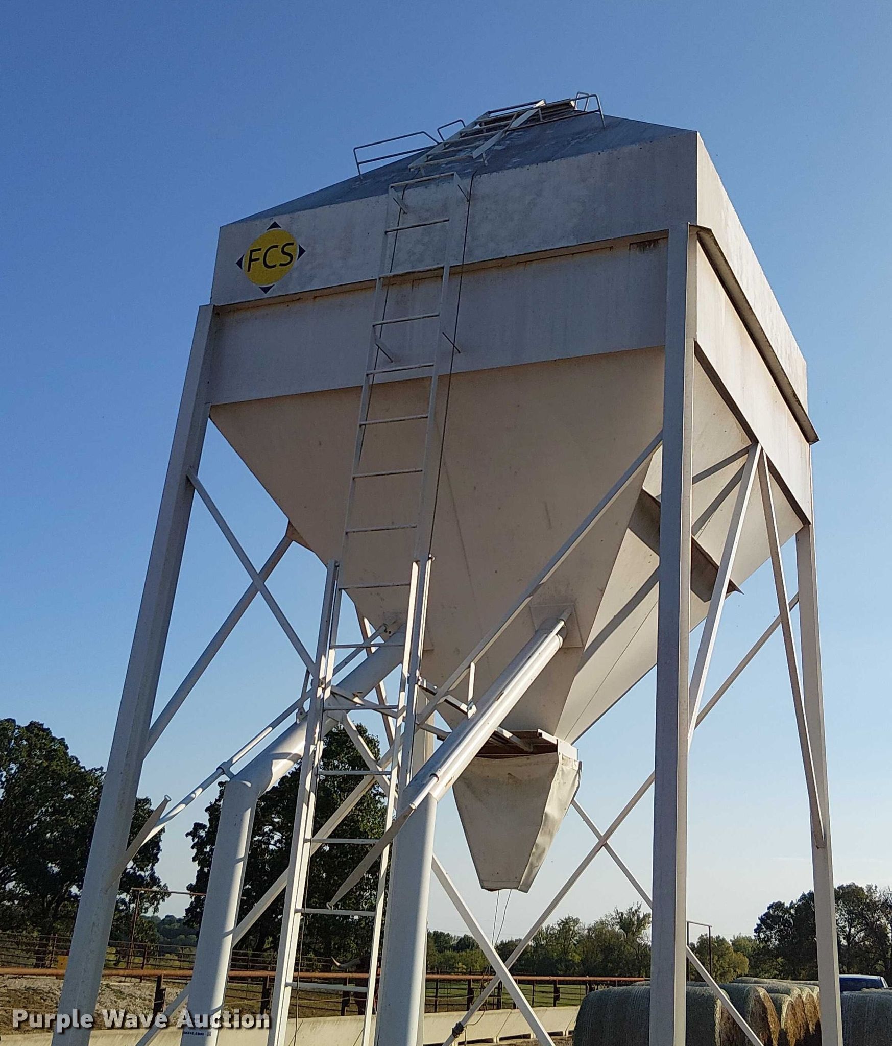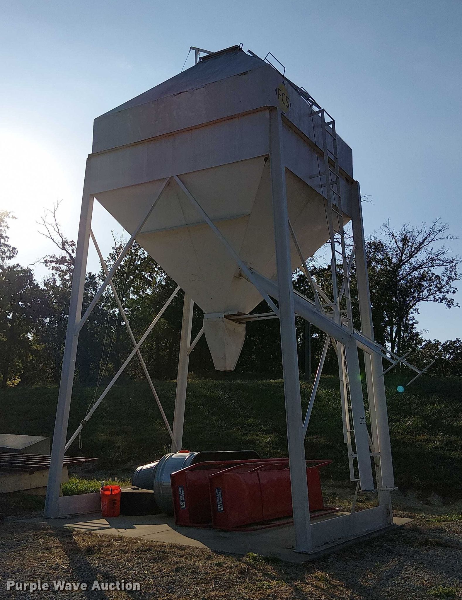 Purple Wave is selling a used Other Grain or Fertilizer Handling in Kansas. This item is a FCS grain bin with the following: Capacity: 14 tons, Compartments: 2, Chutes: 2