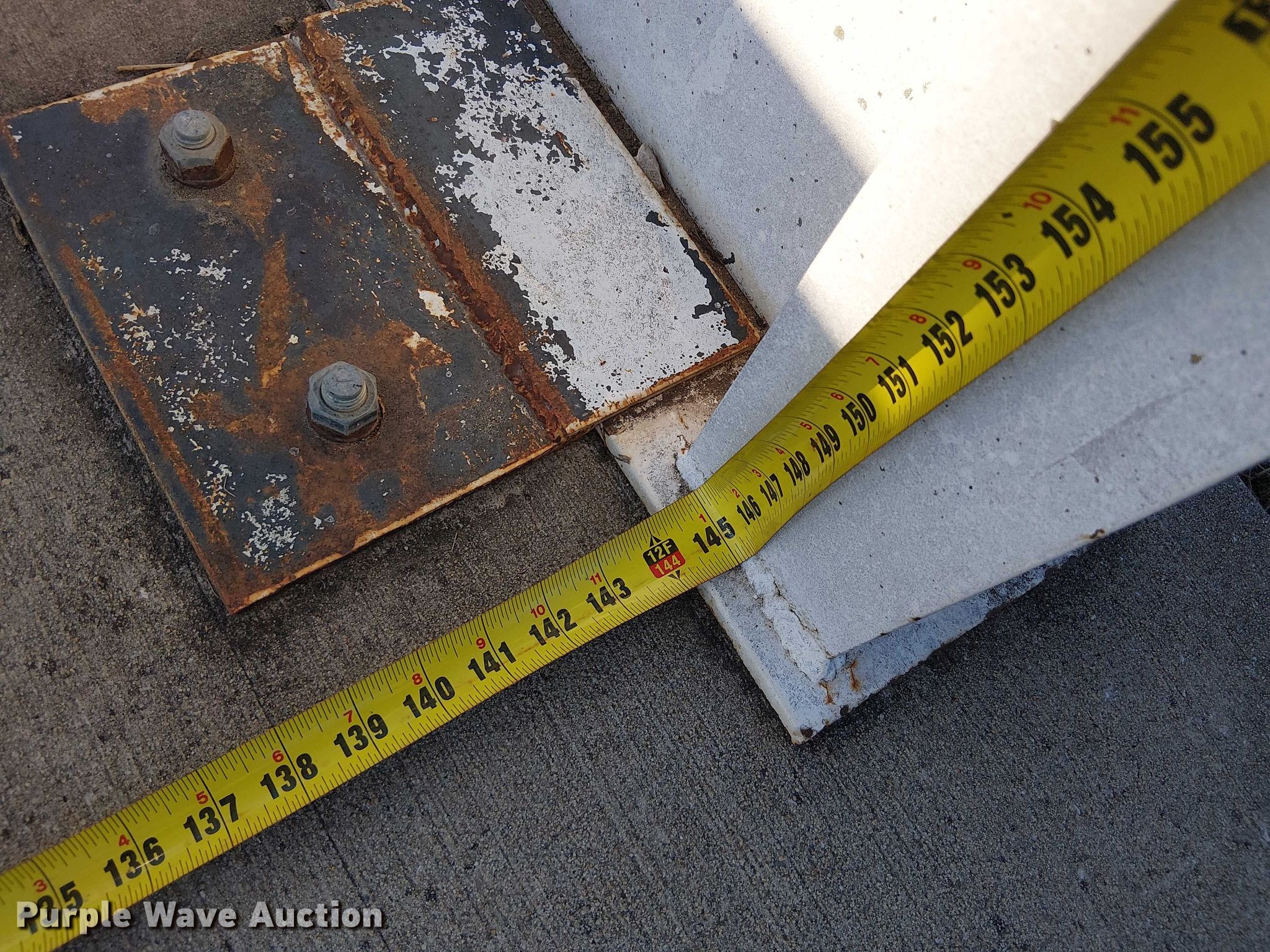 FCS grain bin. Capacity: 14 tons, Compartments: 2, Chutes: 2. Dimensions Base: 10' 1" x 13' 4.5", Height: Approx. 25', Clearance: Approx. 9' 6". Buyer responsible for all aspects of disassembly and removal. Leavenworth, KS 66048