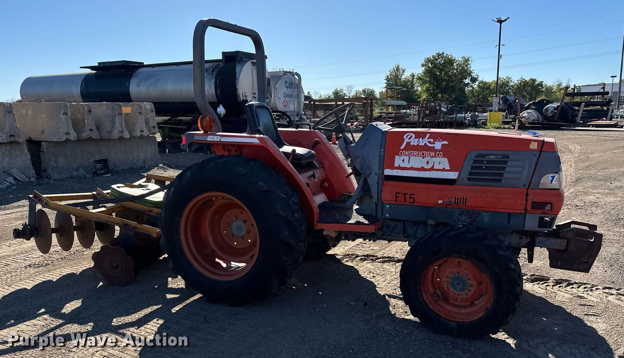 1994 Kubota L2900GST HFWD tractor. Hours: 1,280 on meter, Serial: L2900D52486. Engine Kubota, Cylinders: 3, Fuel type: Diesel. Transmission Glide, 6F - 6R. Features PTO: 540, Three point Top link, Hydraulic remote sets Rear: 1, Suitcase weights: 2, Disk harrow King Kutter, Width: 65". Tires Front: 10-16.5, Rear: 420/70-24. Park Construction Co. Blaine, MN 55449