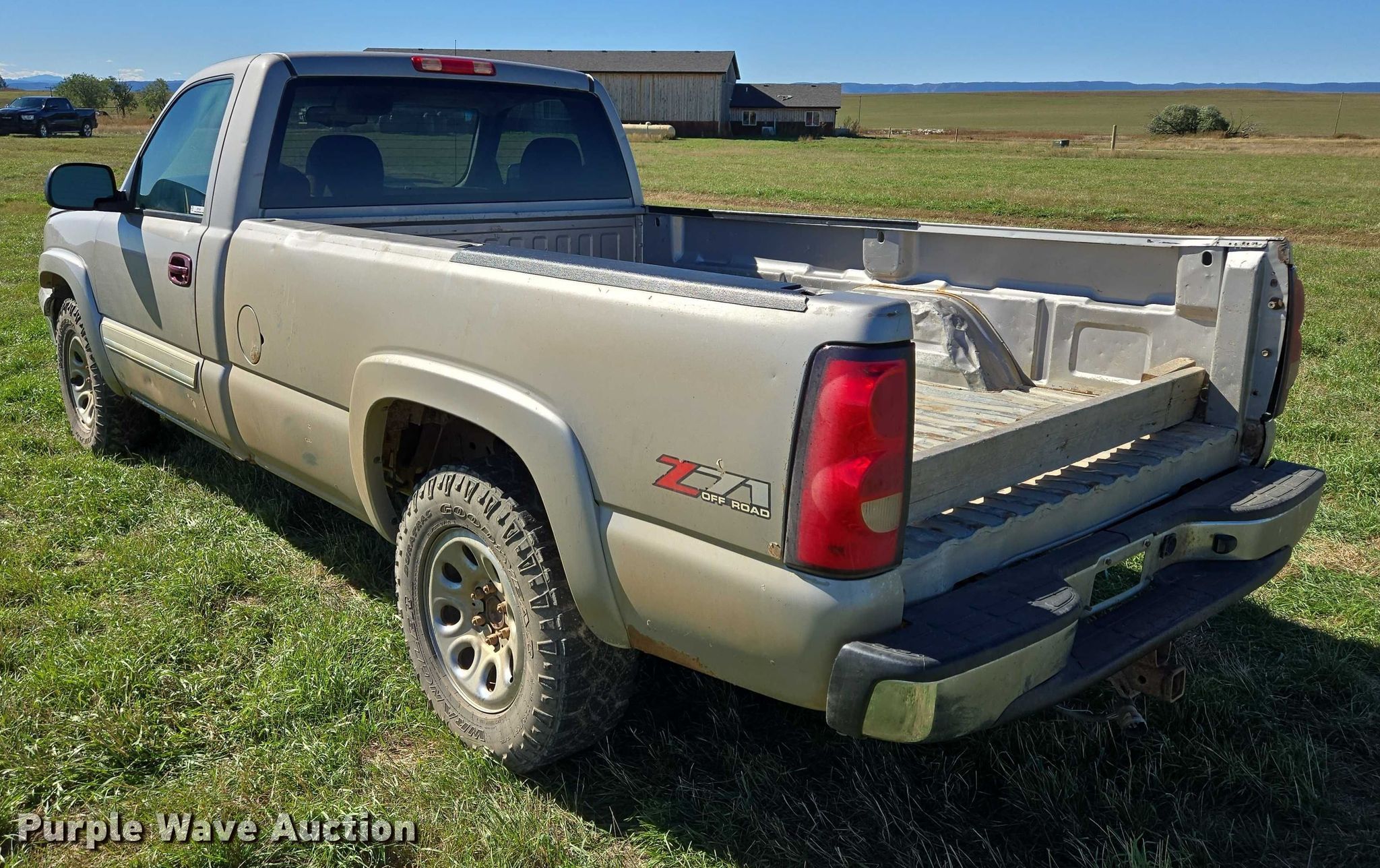 2006 Chevrolet Silverado 1500 pickup truck. Miles: 293,720 on odometer, VIN: 1GCEK14T86Z108171. Engine Displacement: 5.3L V8 OHV, Cylinders: 8, Fuel type: Gas. Transmission Automatic, Four wheel drive. Interior AC, Heat, Power windows, Power locks, Cruise control. Tires Size: 265/70R17. Notes Tailgate missing, Rust damage, Dash warning indicator: Check engine, Airbag. South Dakota title. Title distribution may be delayed up to 14 days from verification of funds. 63 Land and Cattle Company, LLC. Sturgis, SD 57785