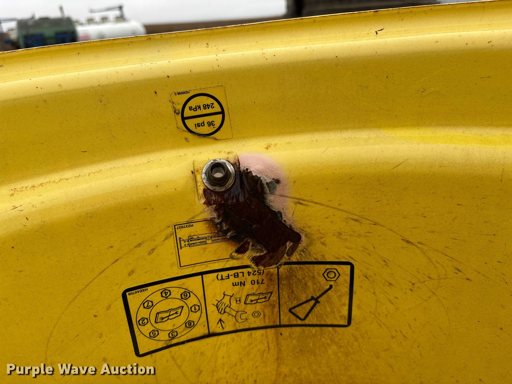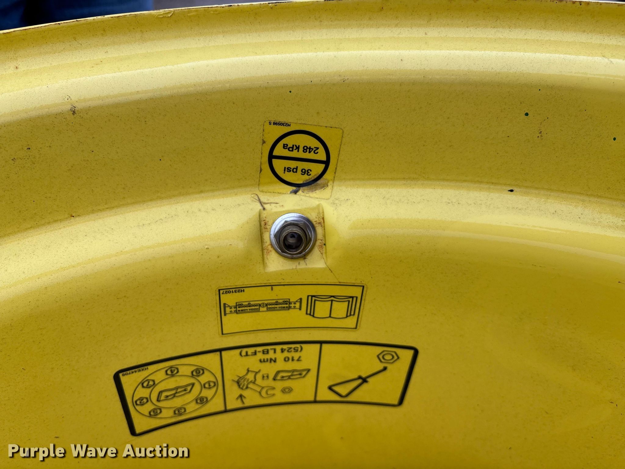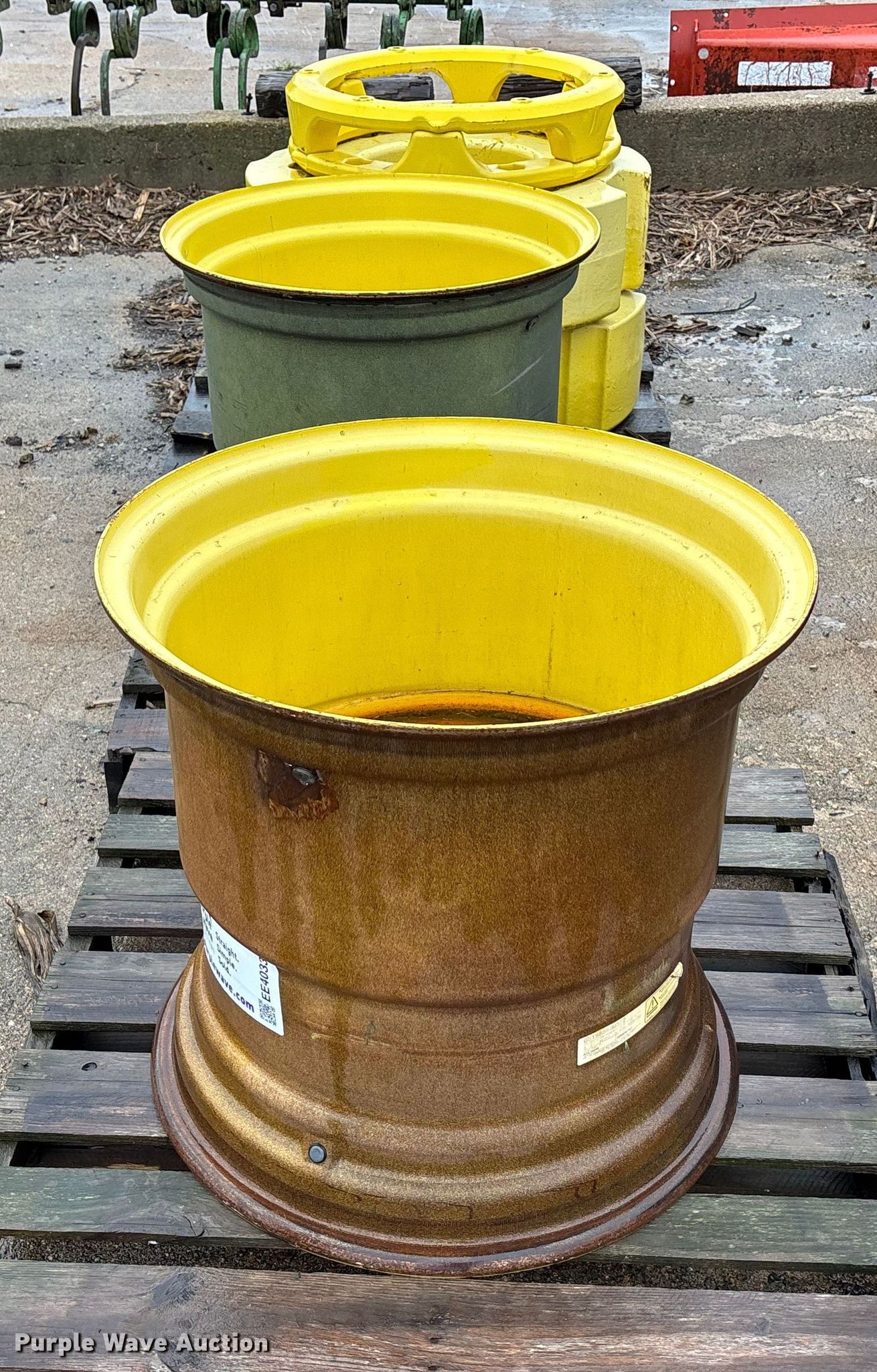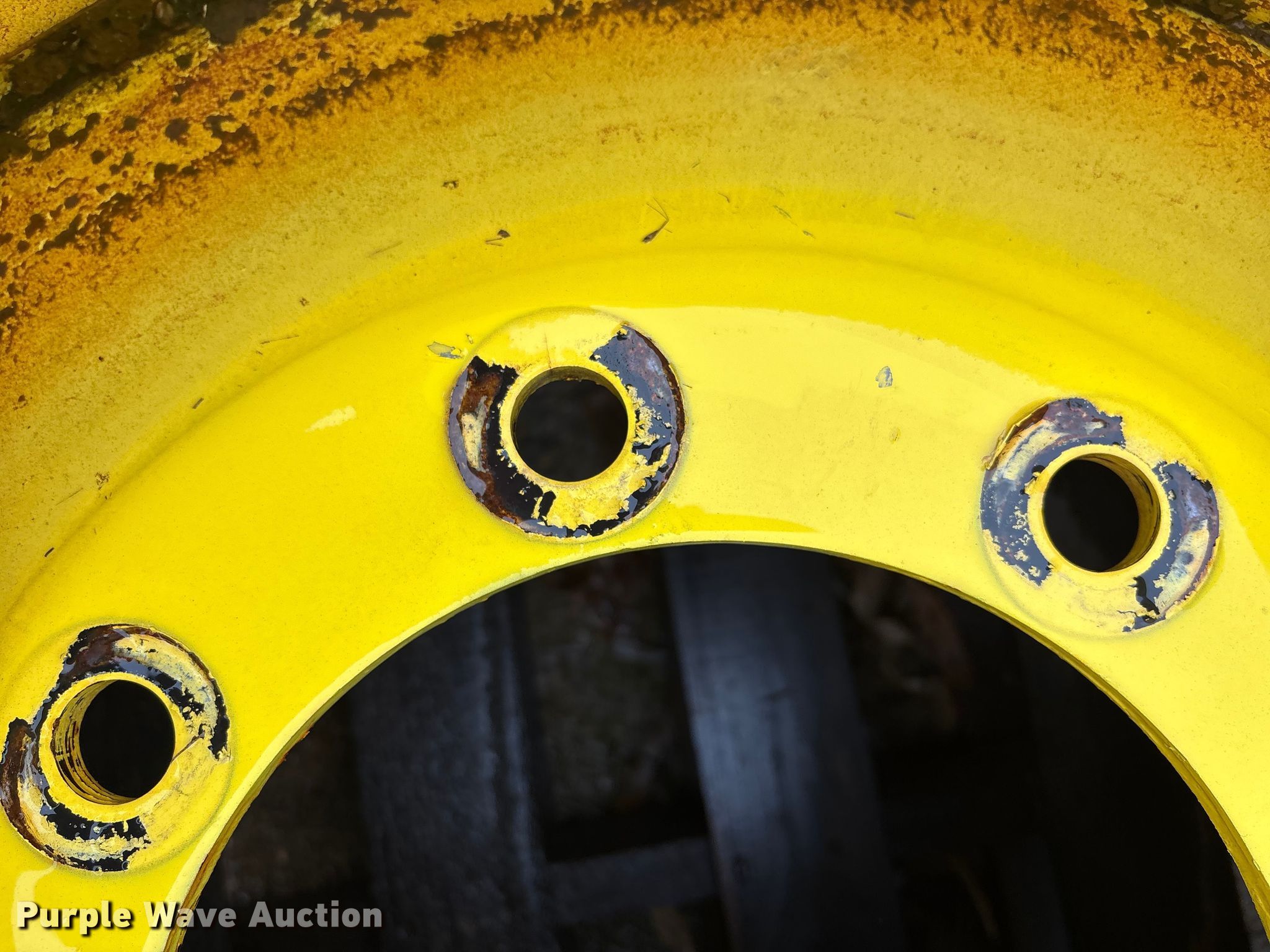 Purple Wave is selling a used Industrial Tires or Tracks in Kansas. This item is a (2) wheels with the following: Removed from John Deere S670 combine, Damaged, cracked