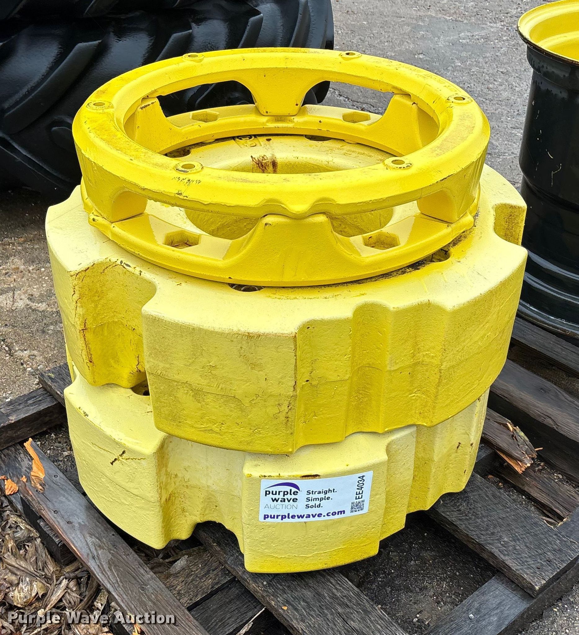 Purple Wave is selling a used Ag Equip. Other in Kansas. This item is a Wheel weights with the following: Removed from a John Deere 8400R, (2) 70 kg, (2) 900 kg