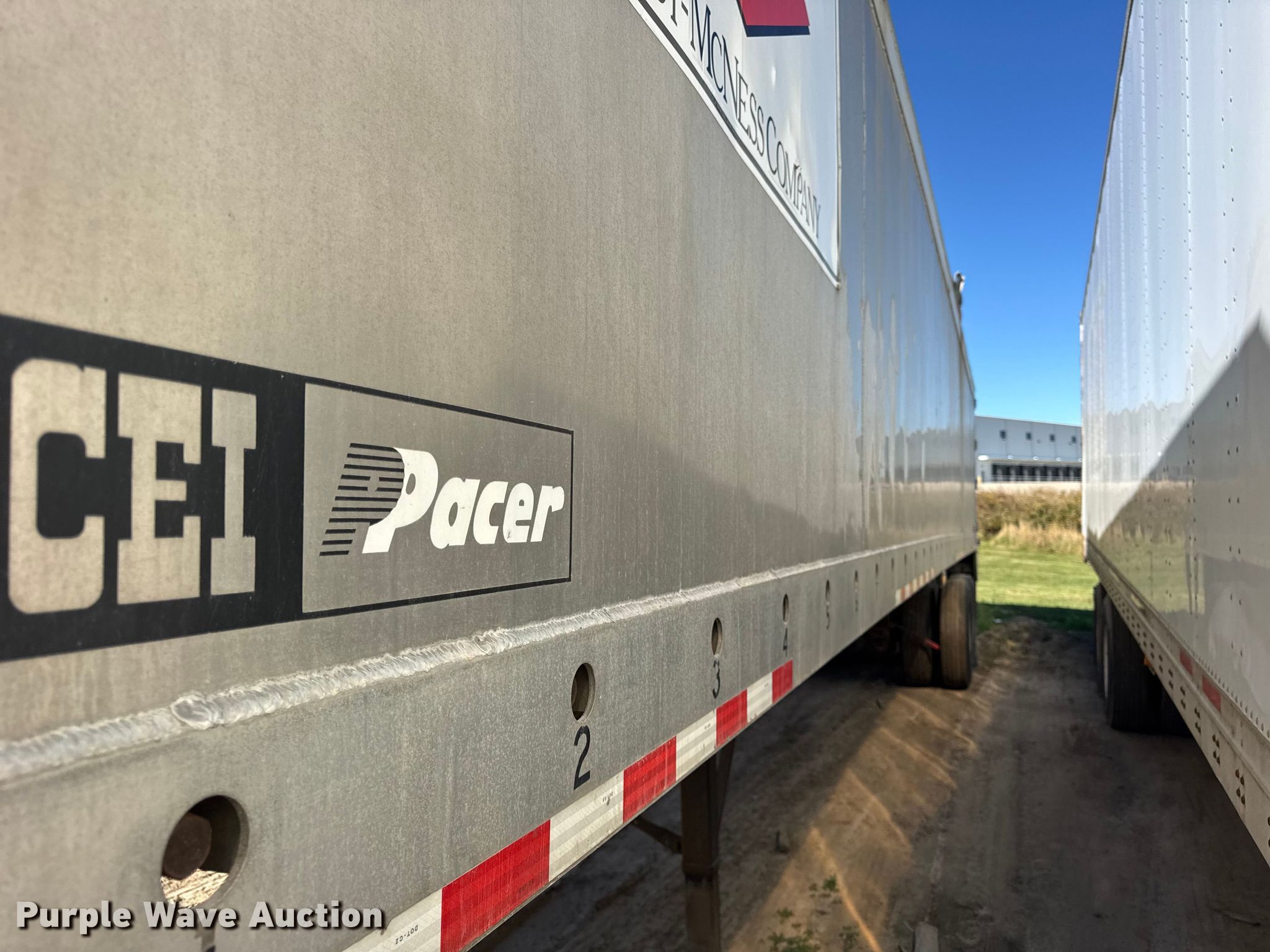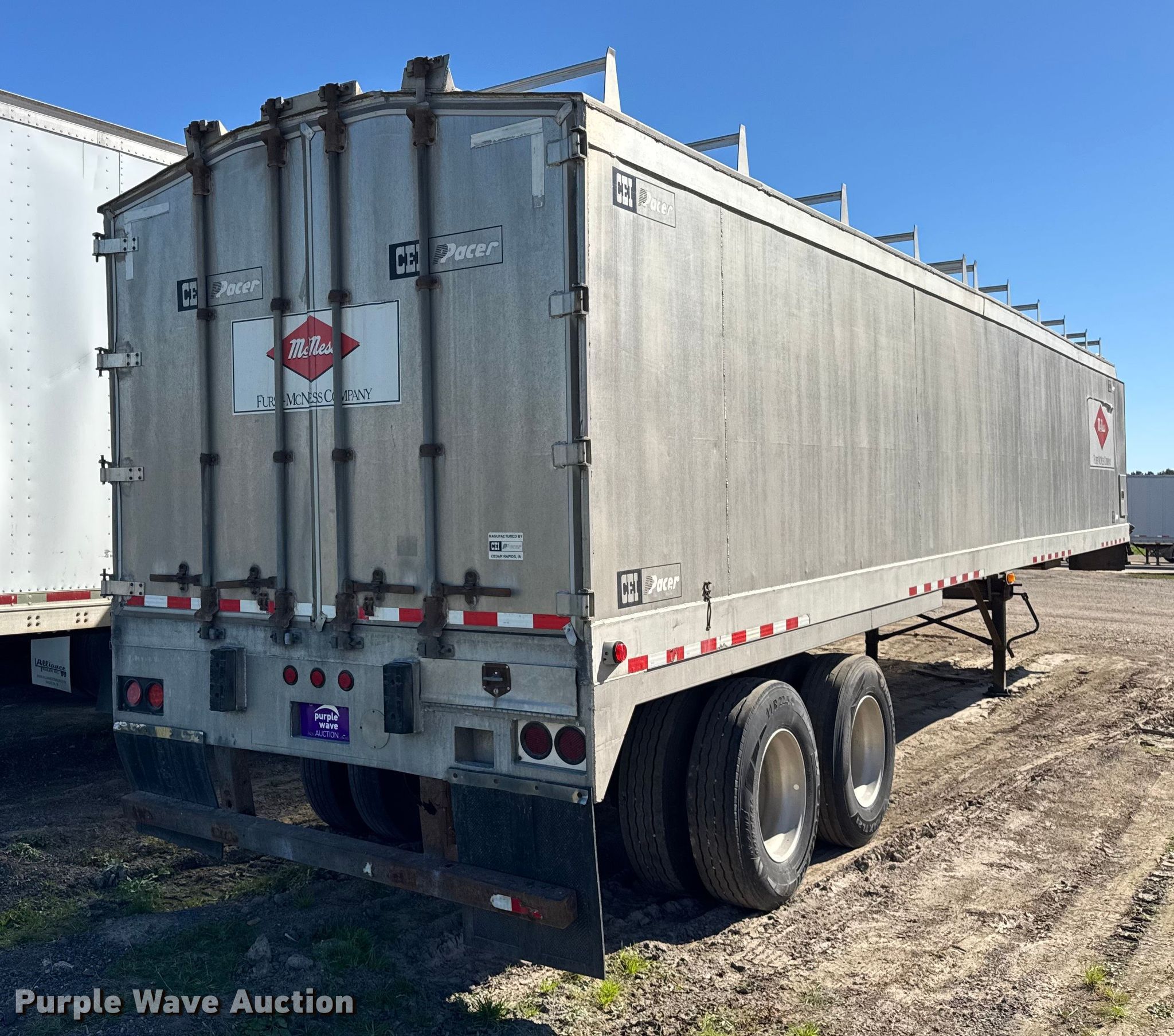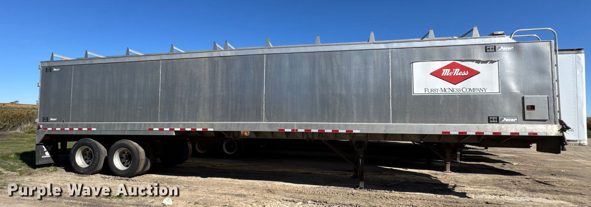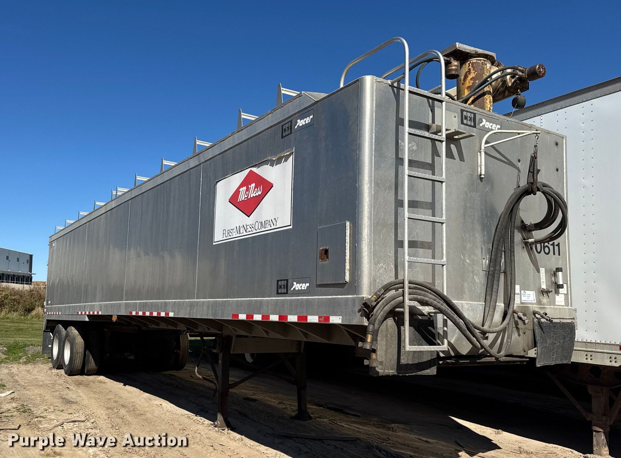 2011 CEI Pacer AT65 fertilizer delivery trailer. VIN: 1C9FB4229B1257305, Unit #: 611. Dimensions Overall Length: 42', Width: 102", Side height: 80". Features Body type: Aluminum, Discharge auger Length: 30', Diameter: 10". Chassis Landing gear: Dual, Suspension: Air, Brakes: Air, Axles: Tandem, GVWR: 65,000 lbs. Tires Aluminum wheels, Size: 11R22.5. Notes Decals will be removed prior to auction, Flat tires, Brakes issues, locked up , Sliding frame issues, bent , Unit must be towed or hauled. Wisconsin title. Title distribution may be delayed up to 14 days from verification of funds. Furst McNess. Lodi, WI 53555