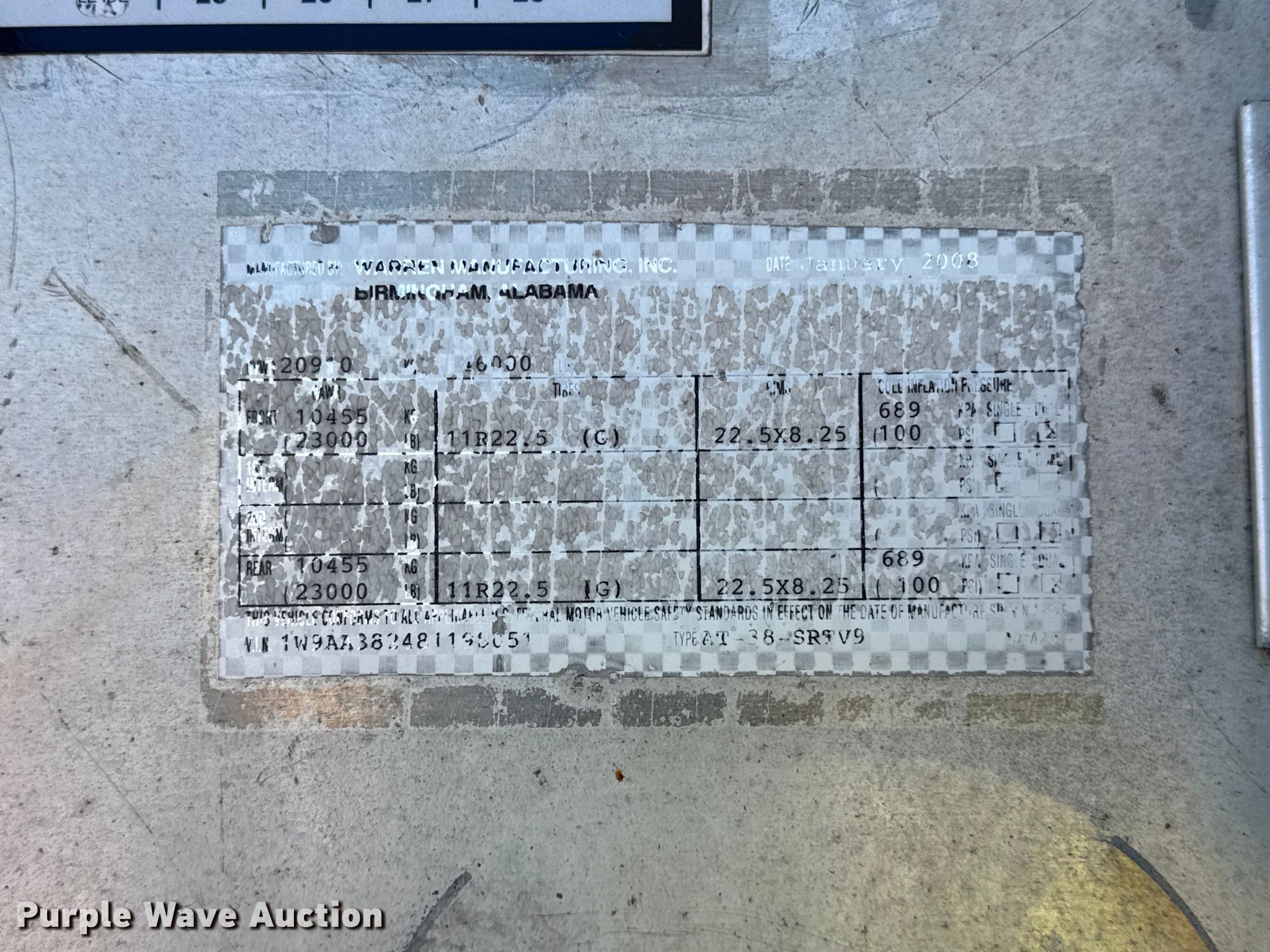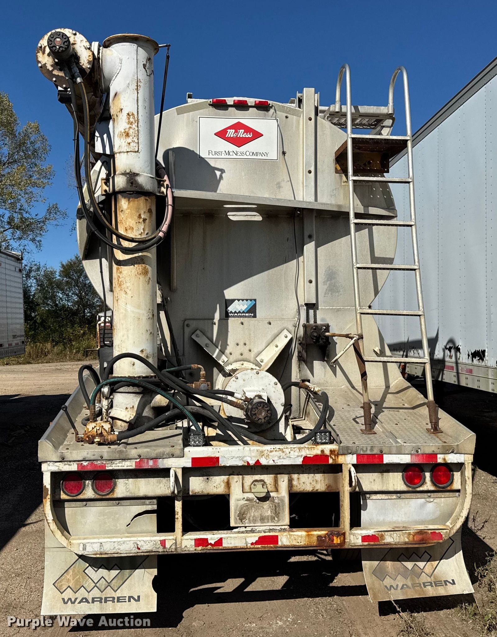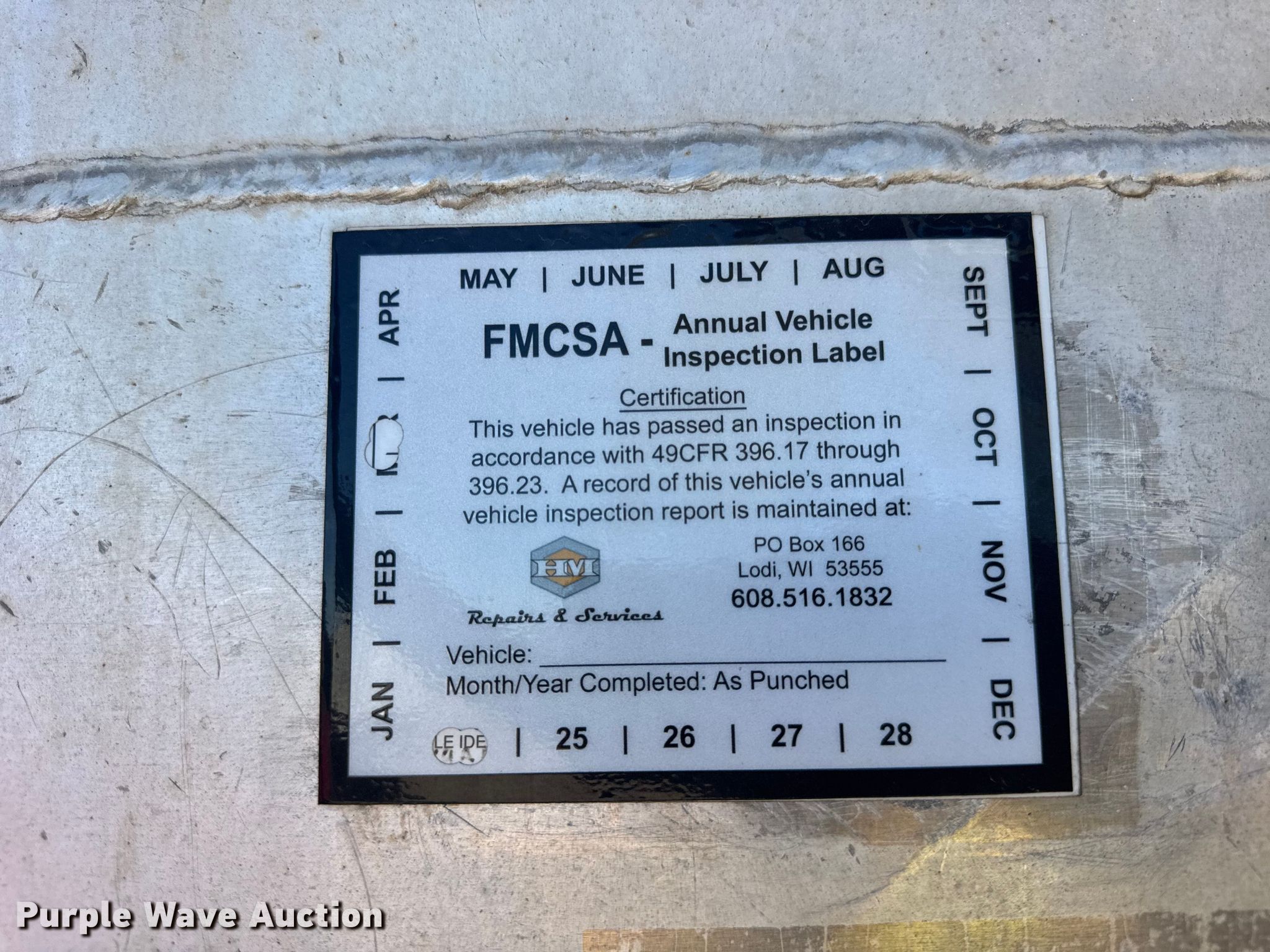 2008 Warren AT38SRTV9 feed delivery trailer. VIN: 1W9AA382481198051, Unit #: 8. Dimensions Overall Length: 42', Width: 95", Body Length: 38', Width: 95", Side height: 74". Features Body type: Aluminum, Compartments: 9, Discharge auger Length: 30', Diameter: 10". Chassis Landing gear: Dual, Suspension: Air, Brakes: Air, Axles: Tandem. Tires Steel wheels, Size: 11R22.5. Notes Decals will be removed prior to auction, Non-operational floor doors, Salt and feed contents in trailer, Brakes issues, locked , Unit must be towed or hauled , Non-operational unit. Wisconsin title. Title distribution may be delayed up to 14 days from verification of funds. Furst McNess. Lodi, WI 53555