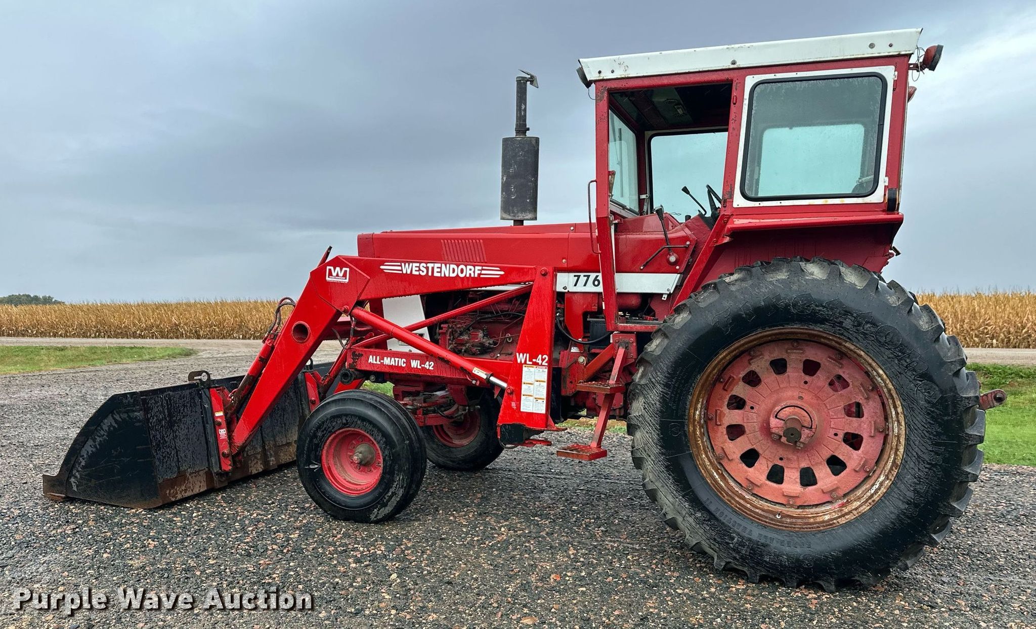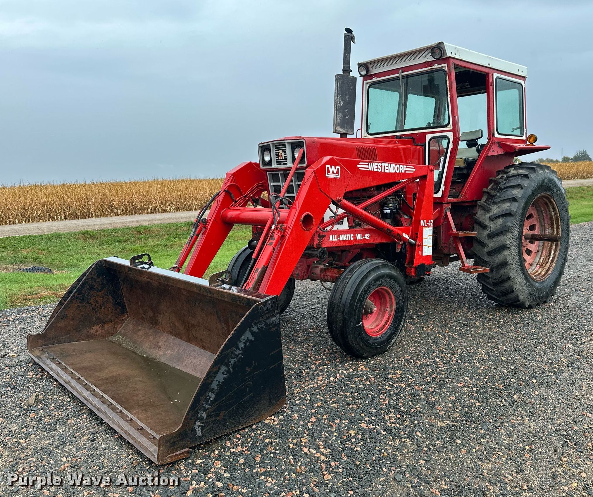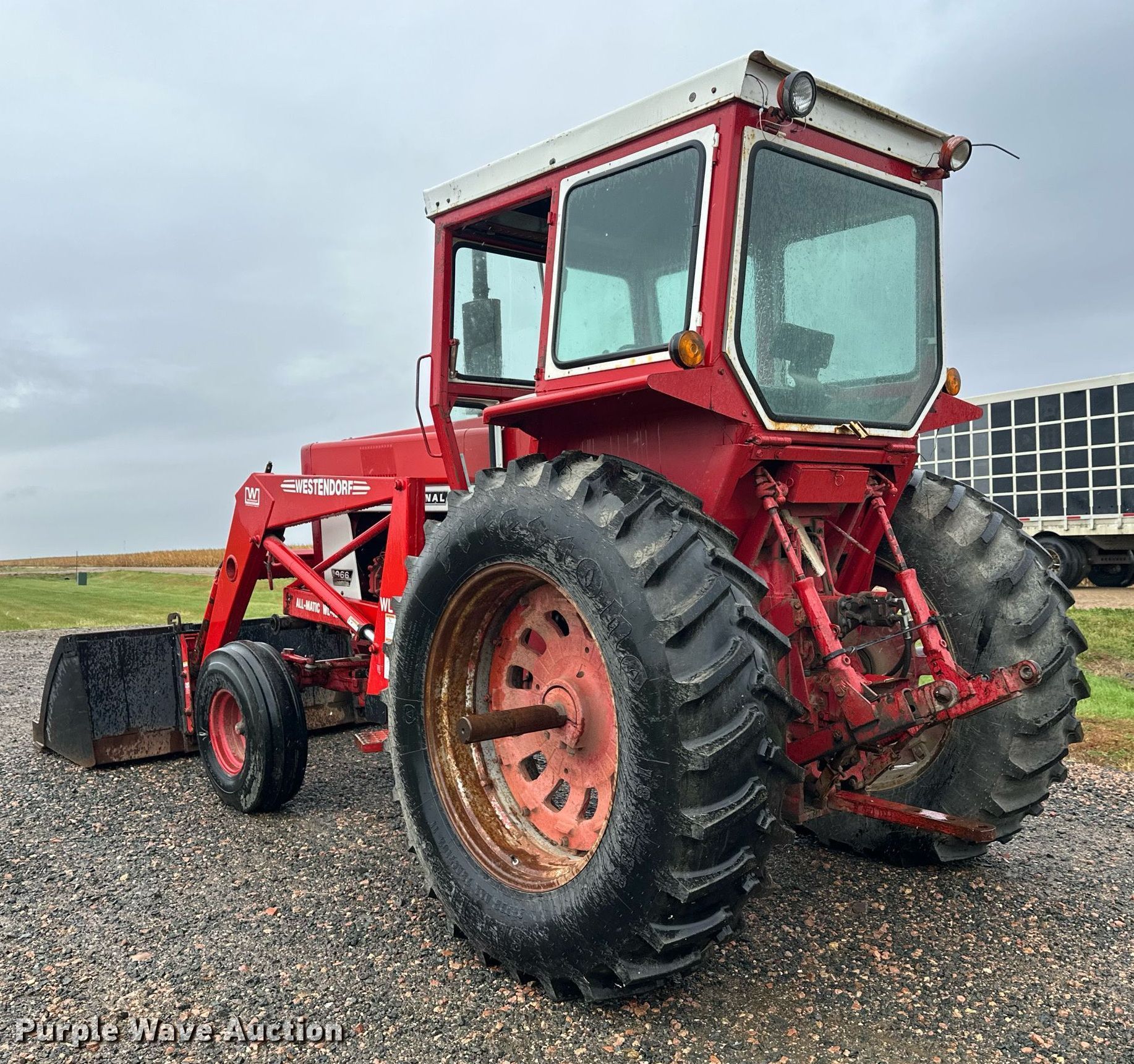 International Harvester F966 tractor. Hours: 6,644 on meter, Serial: 2510187U029063. Engine Cylinders: 6, Fuel type: Diesel. Transmission Manual, 8F - 4R. Features PTO: 540, 1000, Three point Top link, Hydraulic remote sets Rear: 2, Loader Westendorf All magic wl42, Controls: Joystick, Bucket Width: 98".. Tires Front: 10.00-16, Rear: 18.4R38. Christensen Family Farms. Sleepy Eye, MN 56085