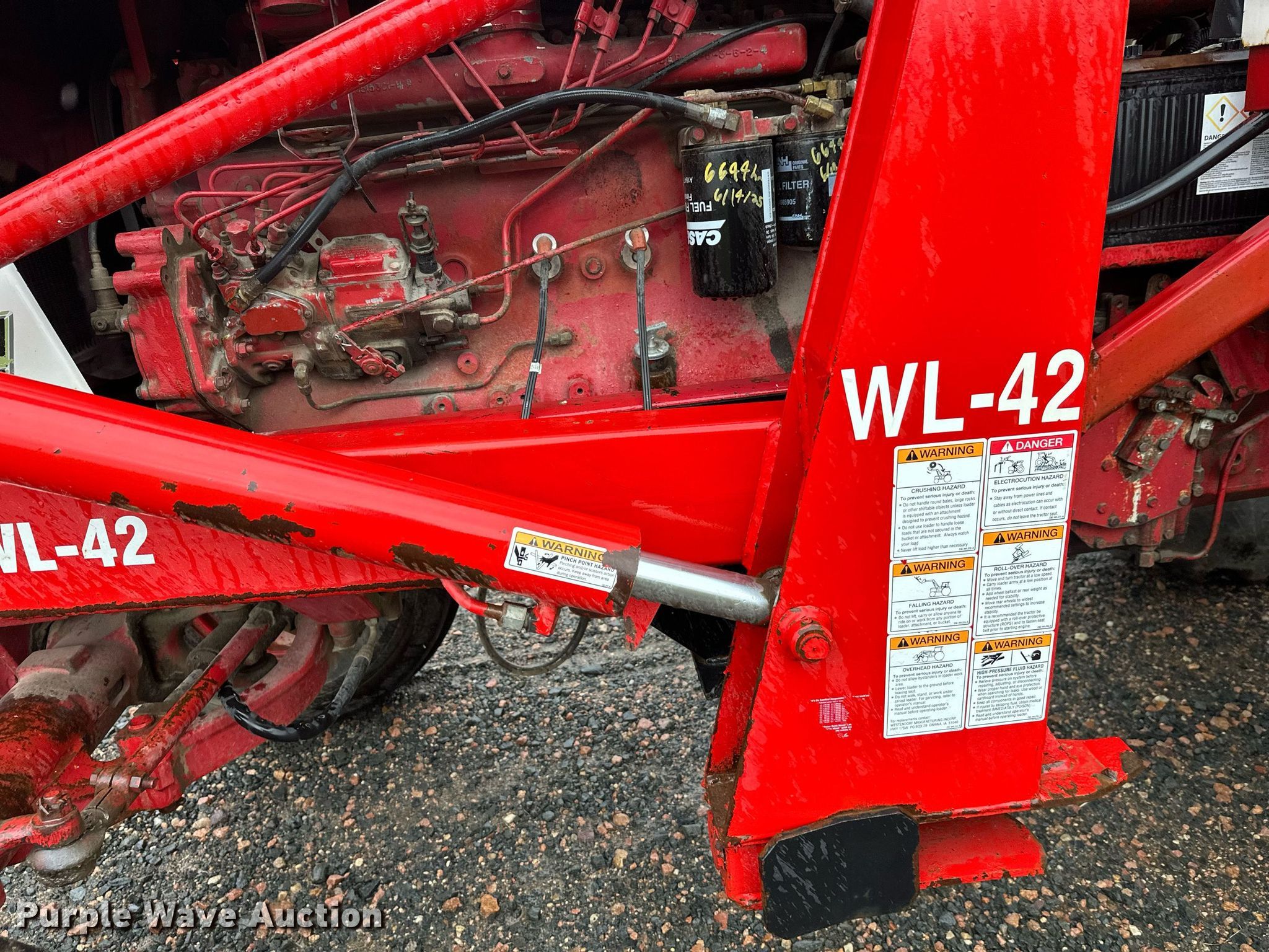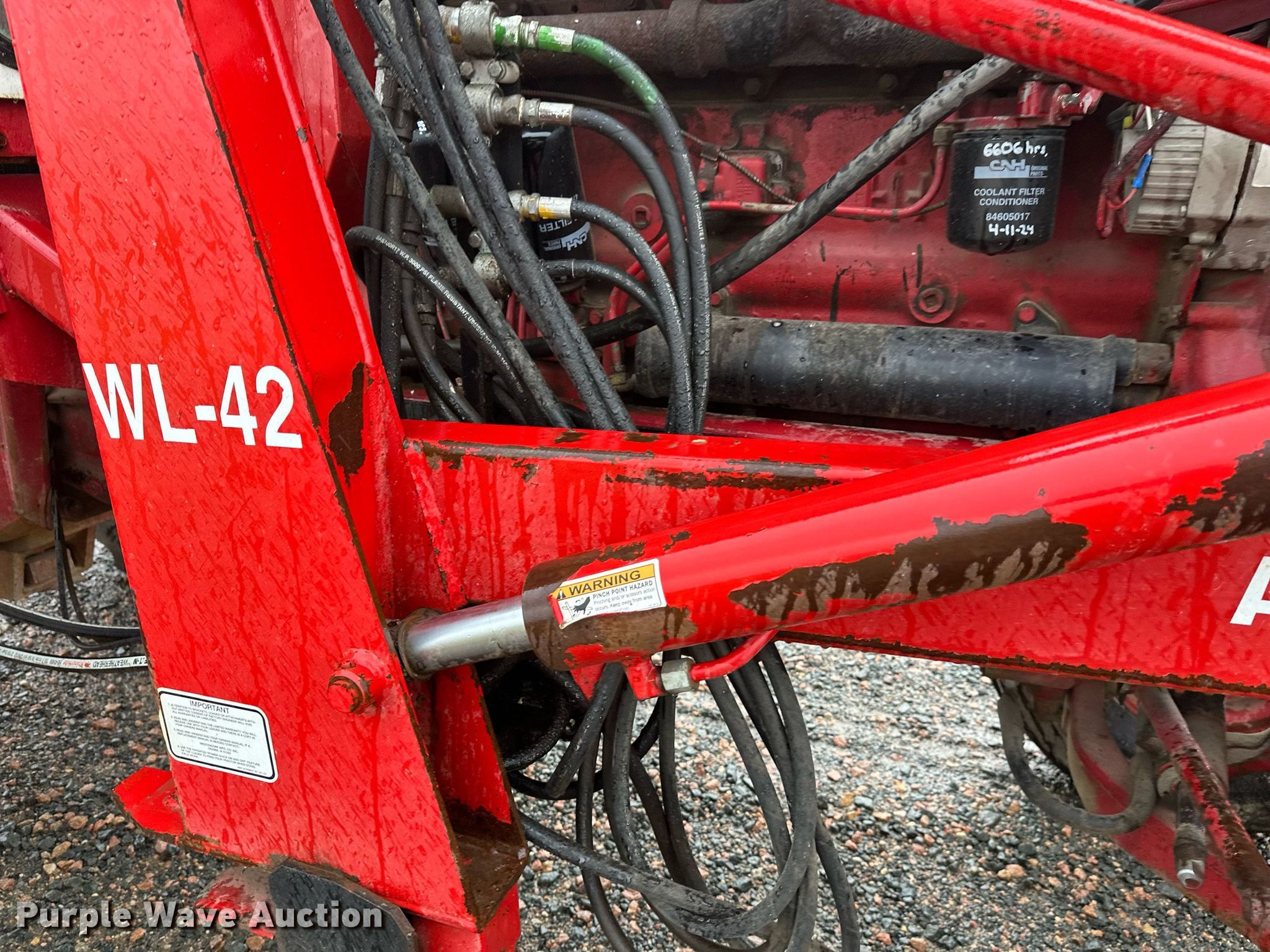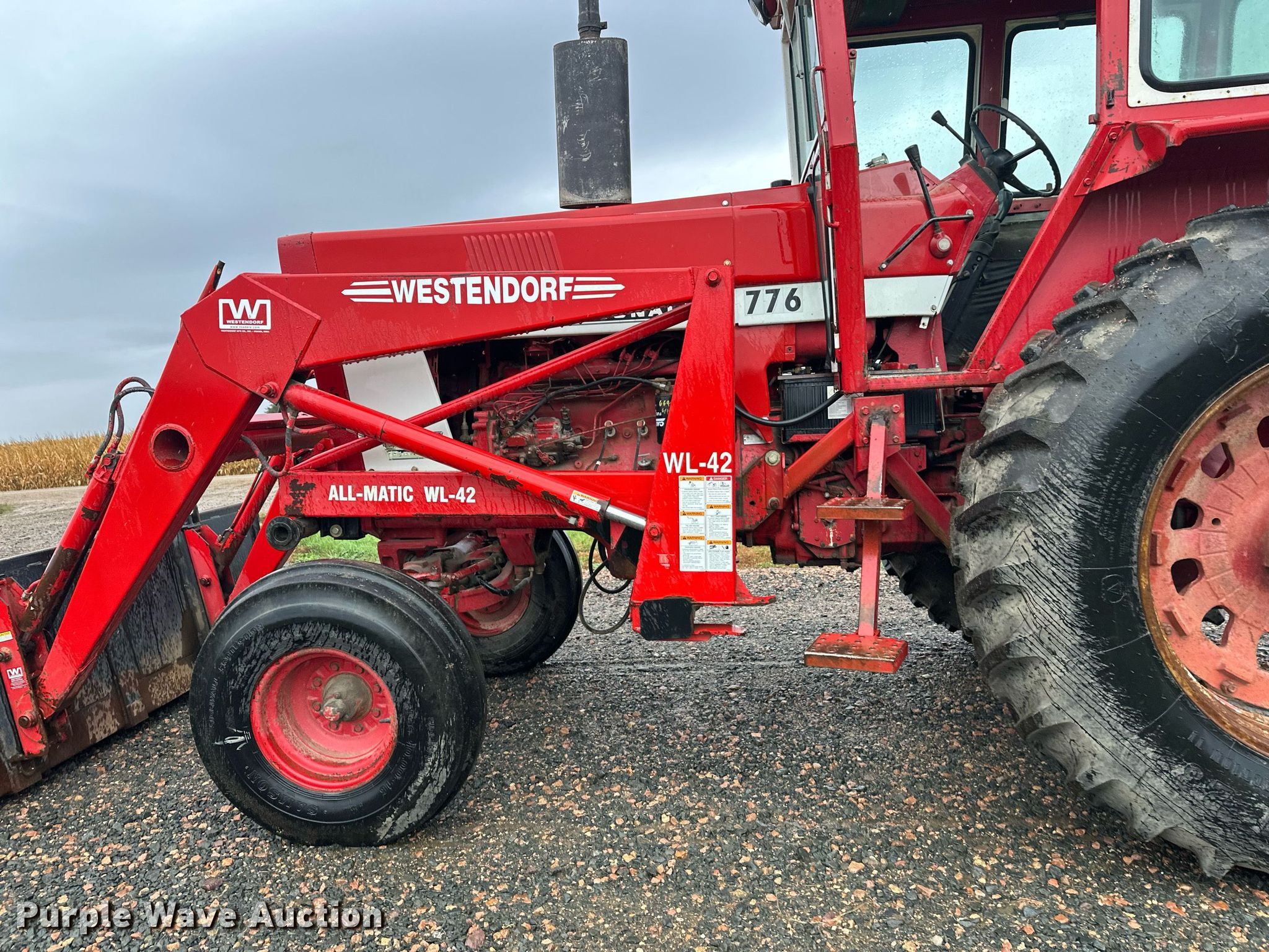 International Harvester F966 tractor. Hours: 6,644 on meter, Serial: 2510187U029063. Engine Cylinders: 6, Fuel type: Diesel. Transmission Manual, 8F - 4R. Features PTO: 540, 1000, Three point Top link, Hydraulic remote sets Rear: 2, Loader Westendorf All magic wl42, Controls: Joystick, Bucket Width: 98".. Tires Front: 10.00-16, Rear: 18.4R38. Christensen Family Farms. Sleepy Eye, MN 56085