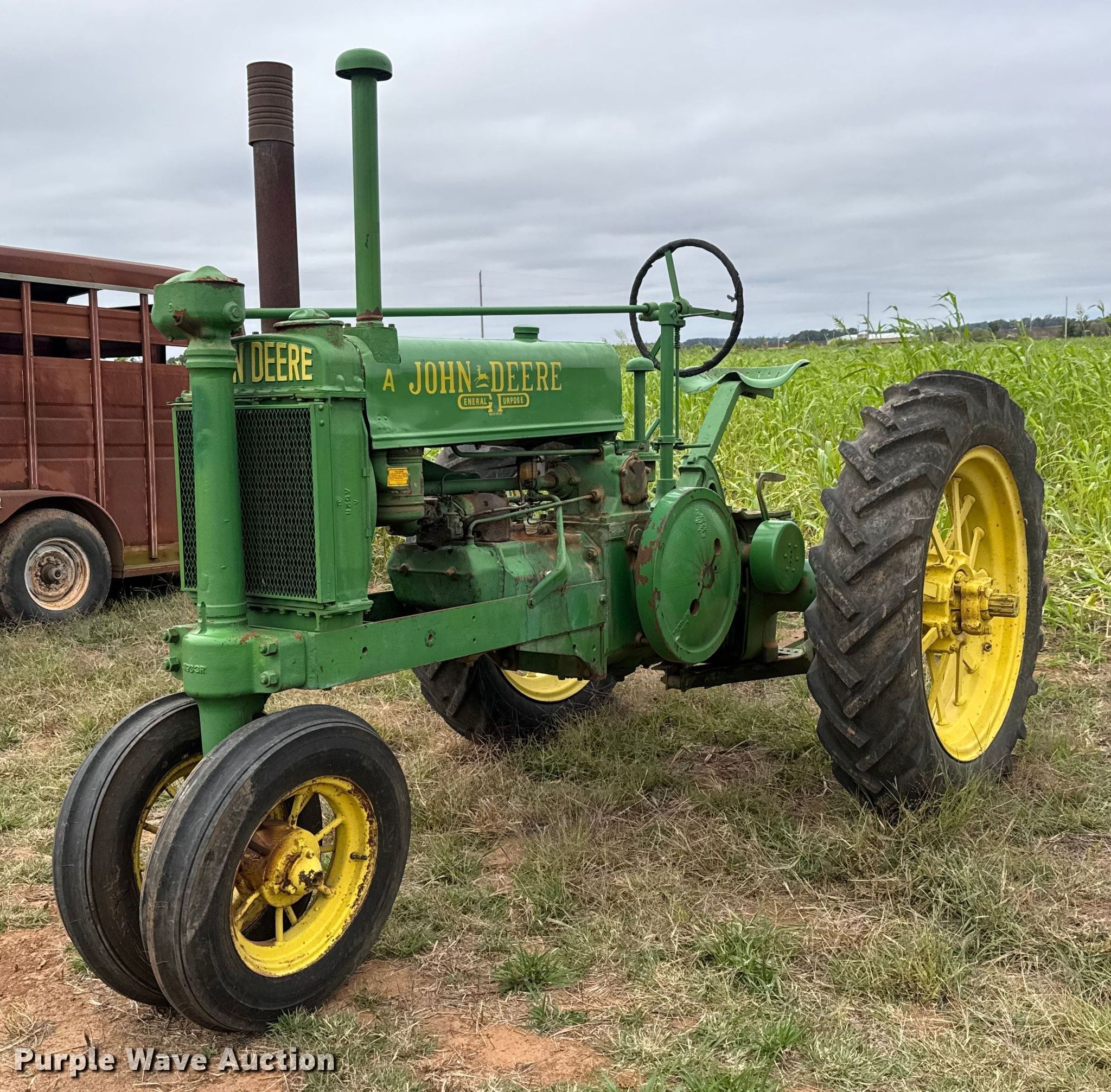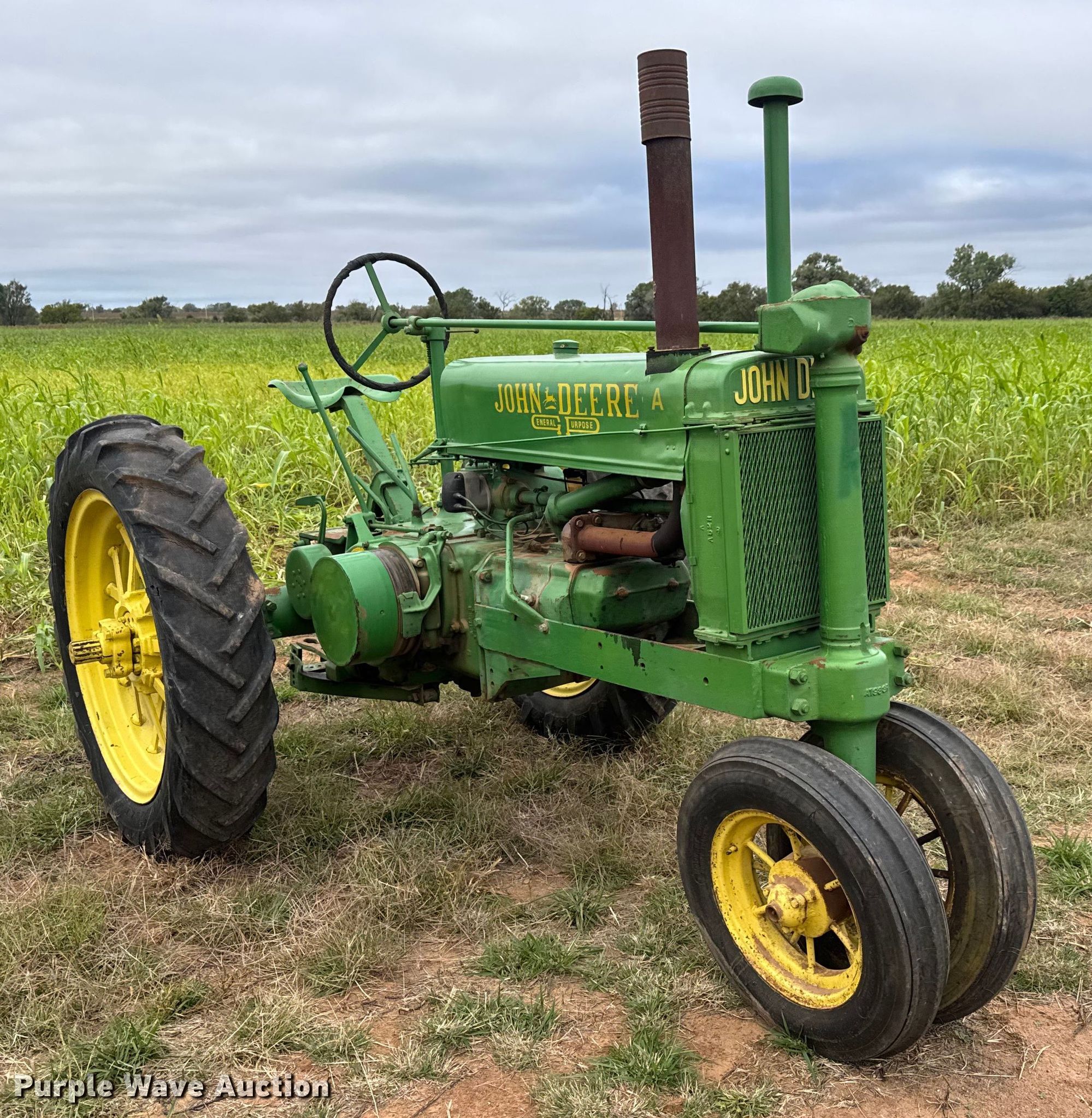 Purple Wave is selling a used Tractor in Kansas. This item is a John Deere A tractor with the following: Serial: 474494