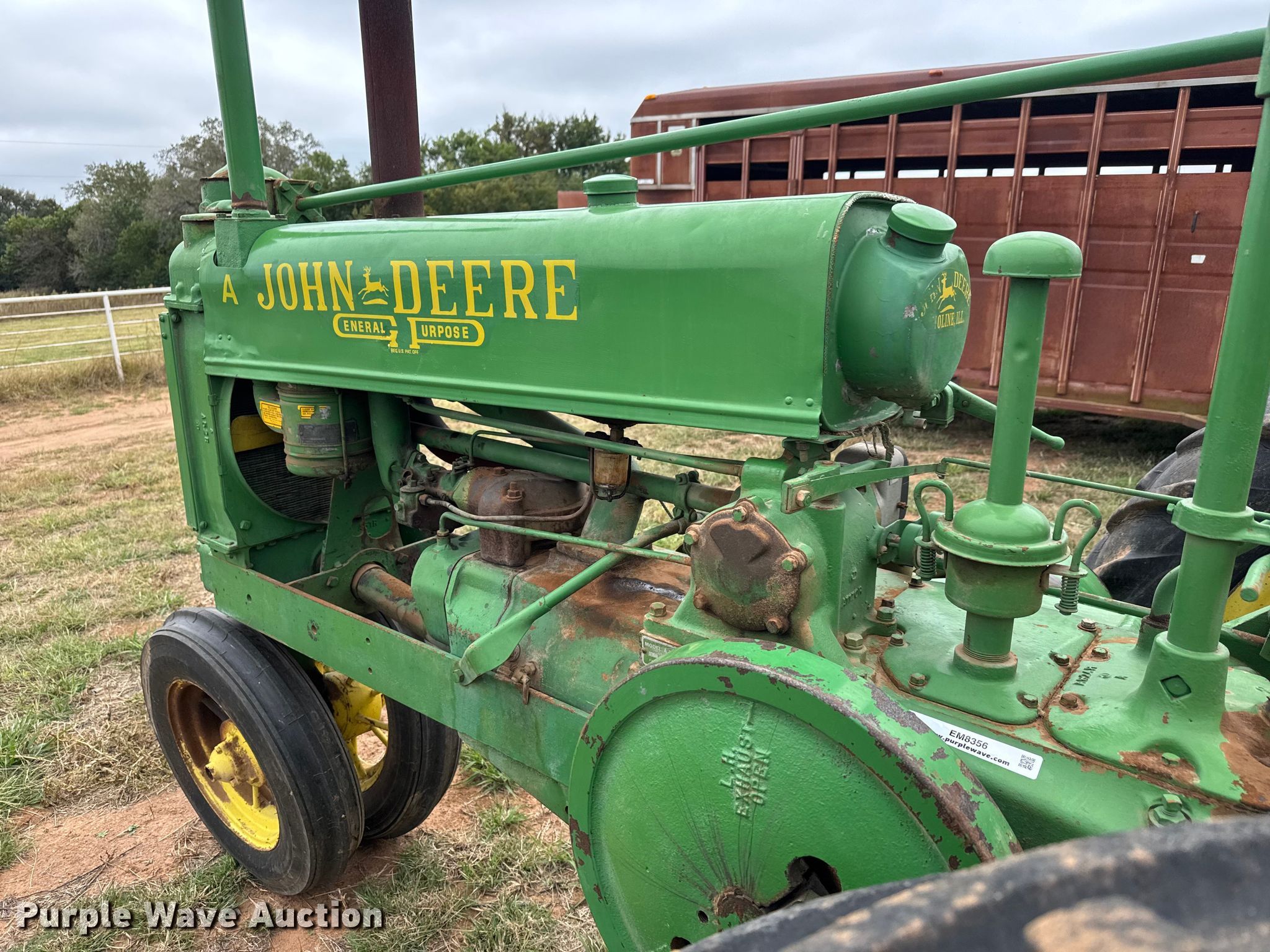 John Deere A tractor for sale in Sharon, Kansas. Item EM8356 will sell on November 12th, 2025.