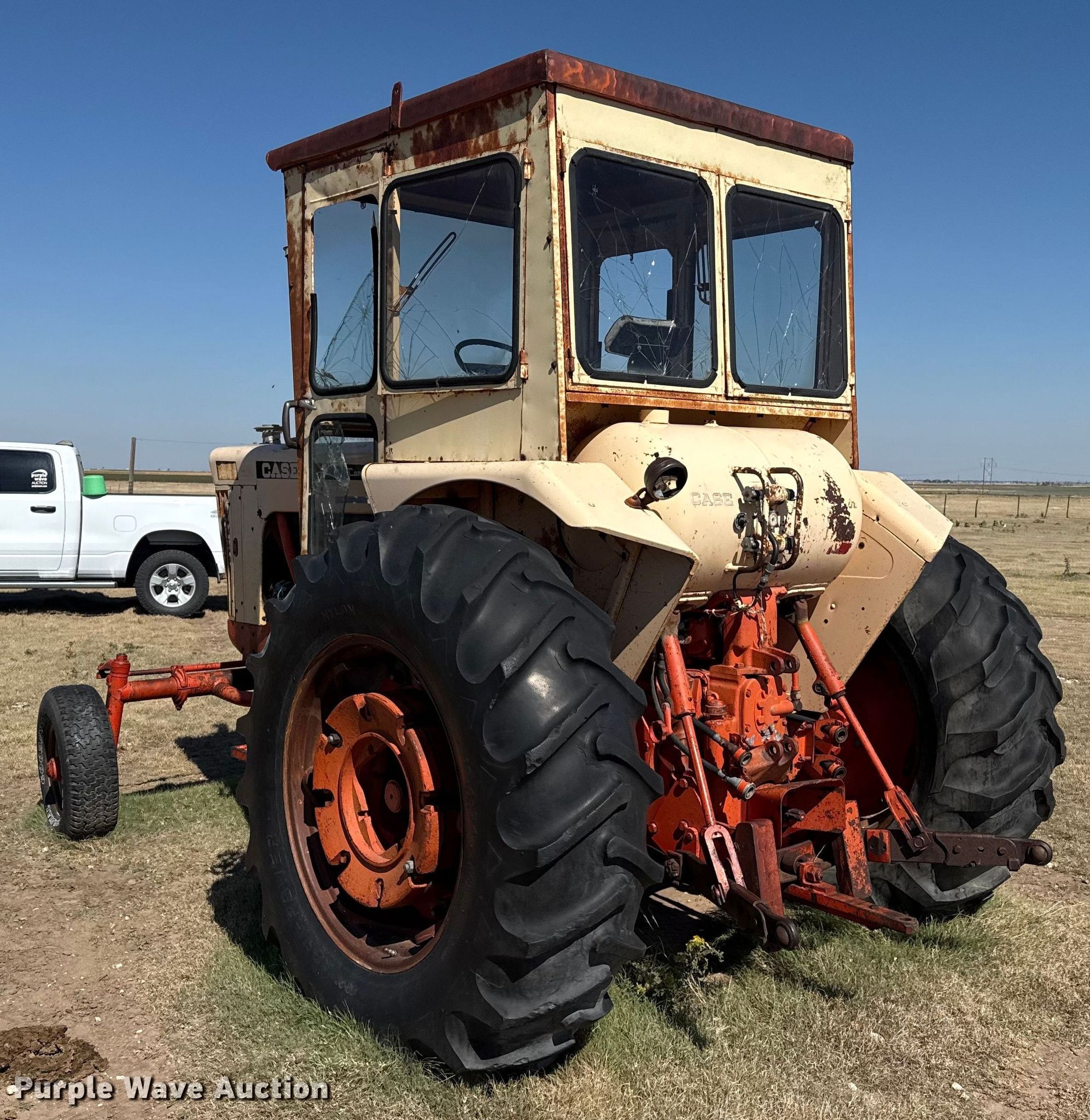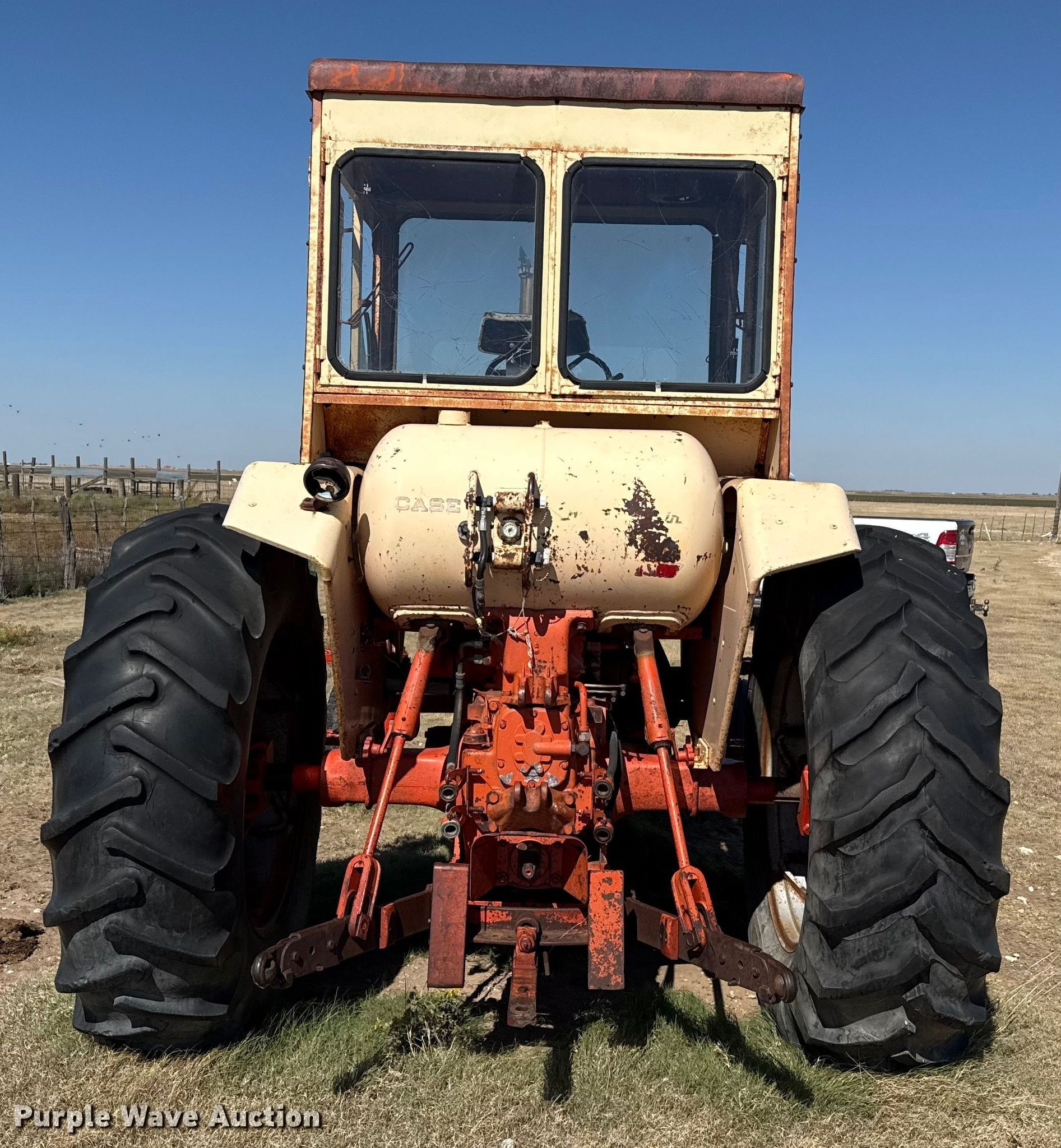 1965 Case 941 tractor. Hours: 4,425 on meter, Serial: 8268758. Engine Cylinders: 6, Fuel type: LPG. Transmission Manual, 8F - 2R. Features PTO: 540, Three point Top link, Hydraulic remote sets Rear: 2. Tires Front: 235/75R15, Rear: 18.4-34, Wheel weights: 4. Notes Unknown operating condition. Guymon, OK 73942