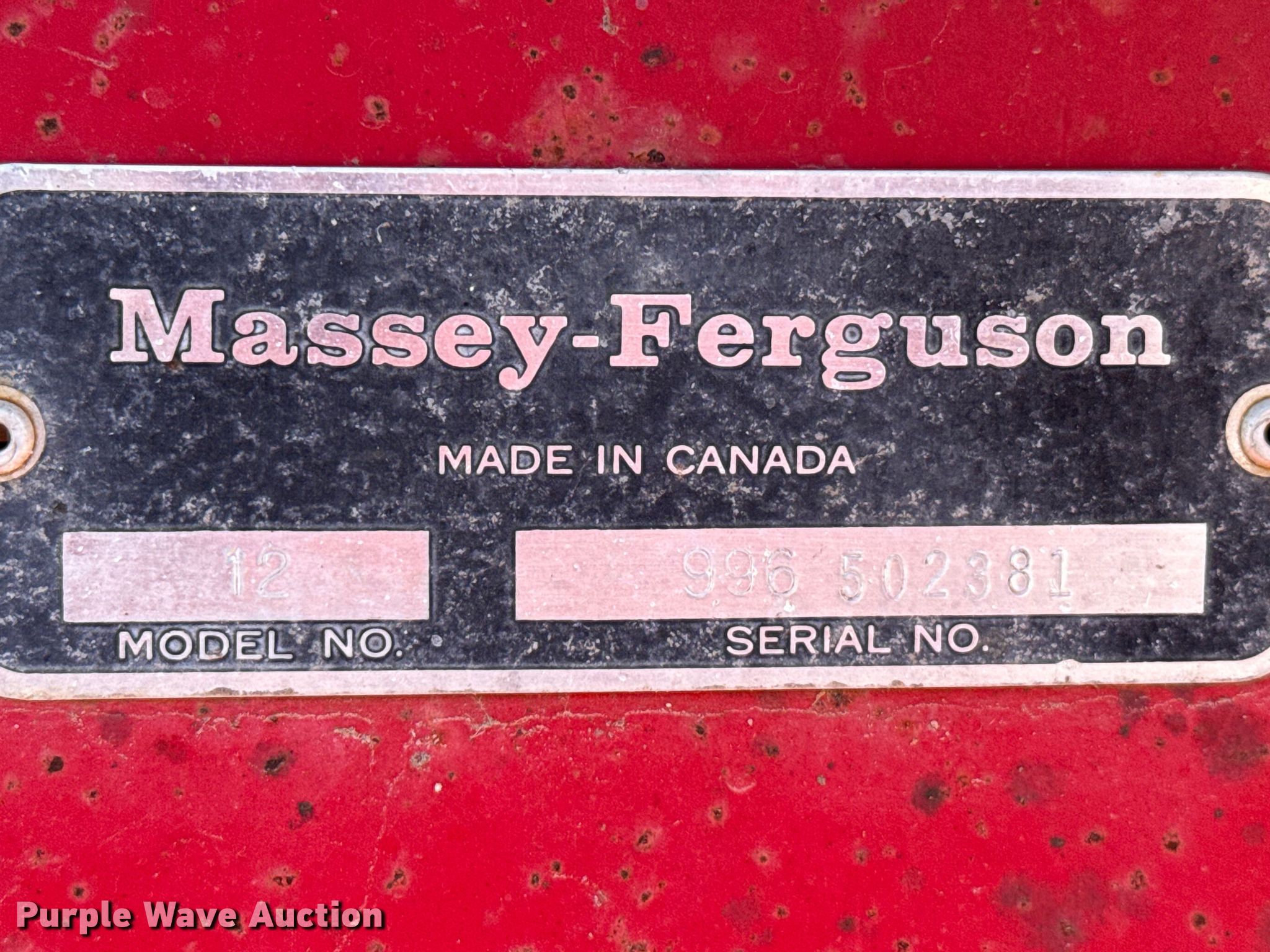 Purple Wave is selling a used Square Baler in Kansas. This item is a Massey Ferguson 12 small square baler with the following: Serial: 996-502381