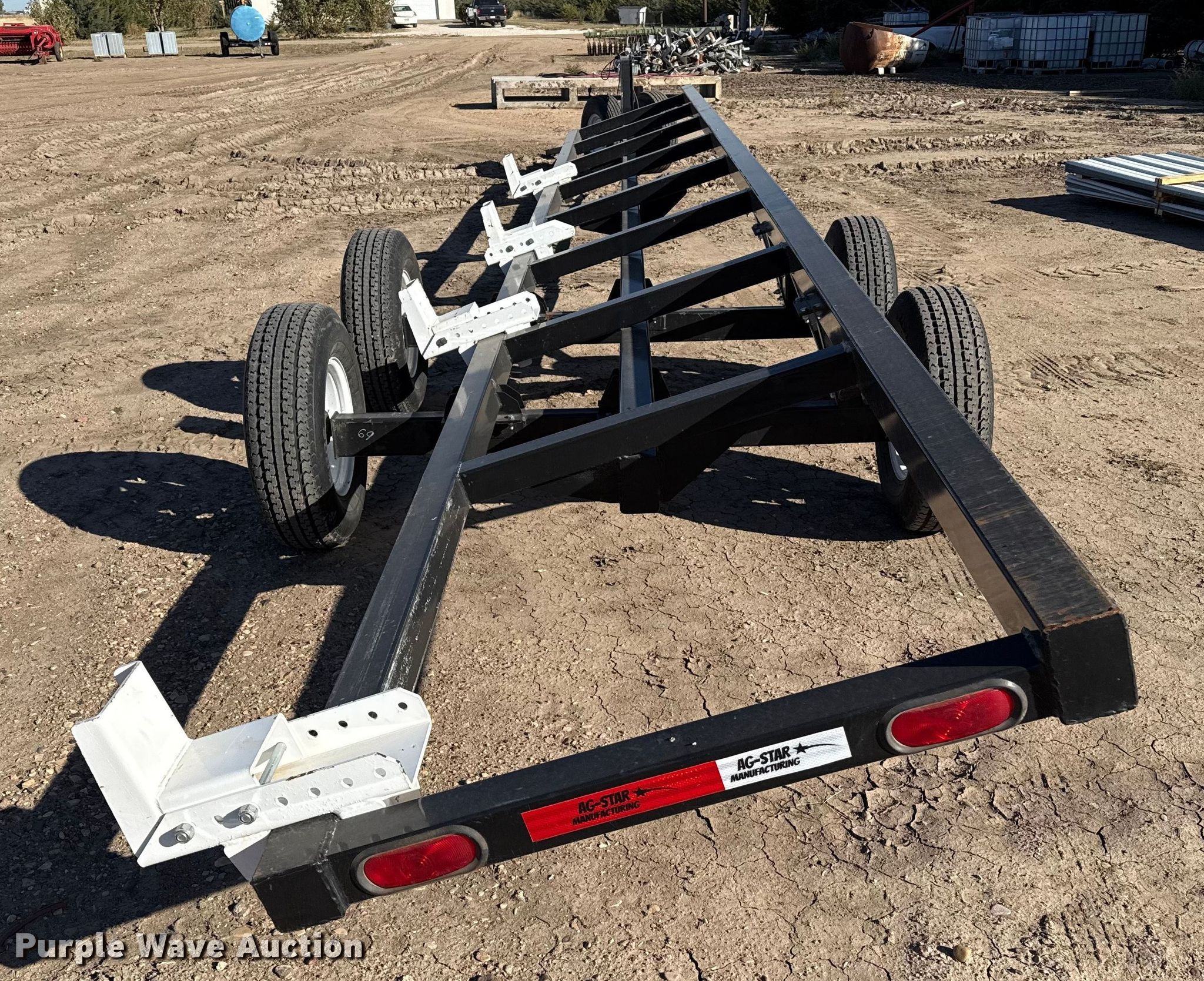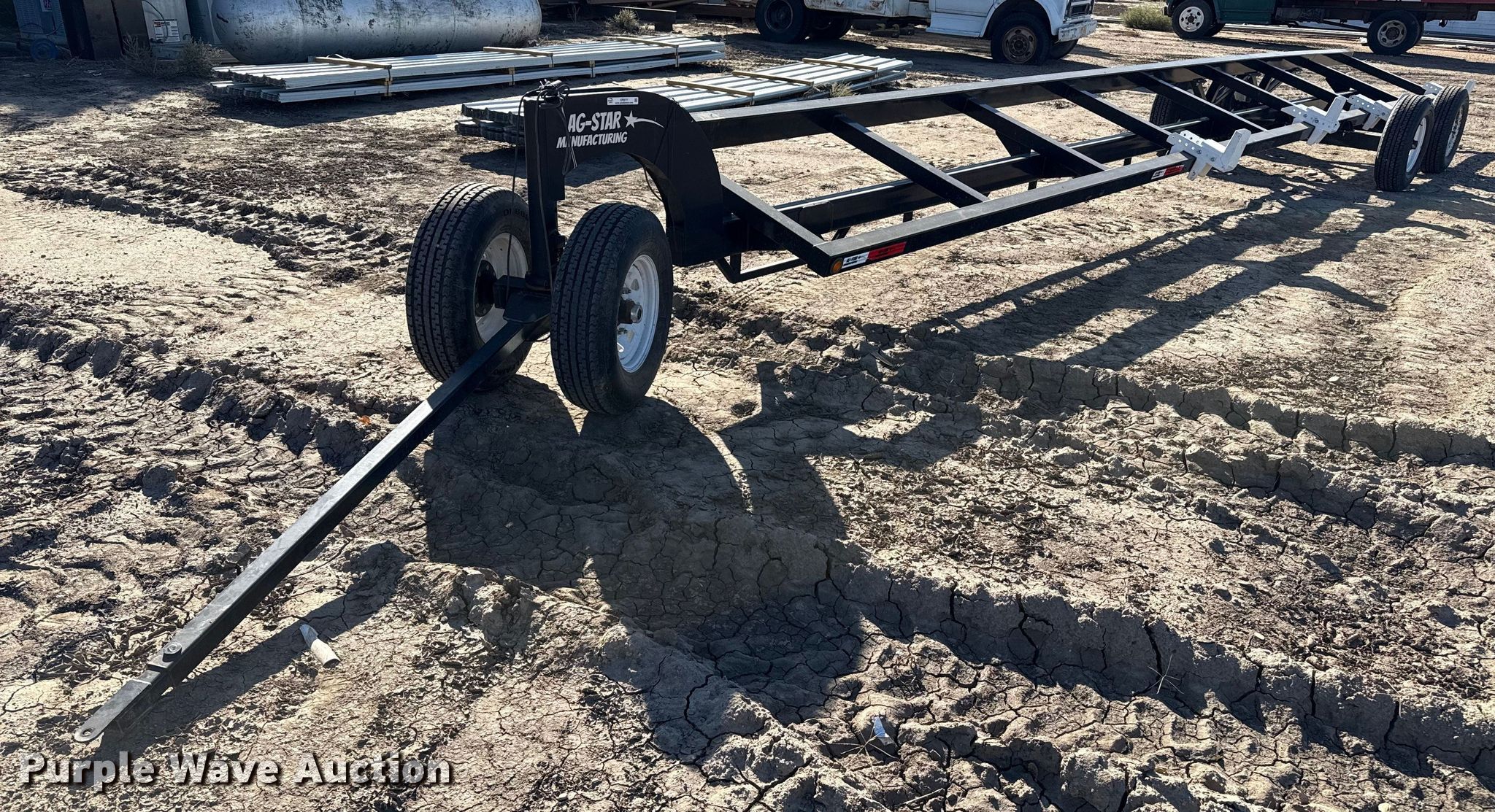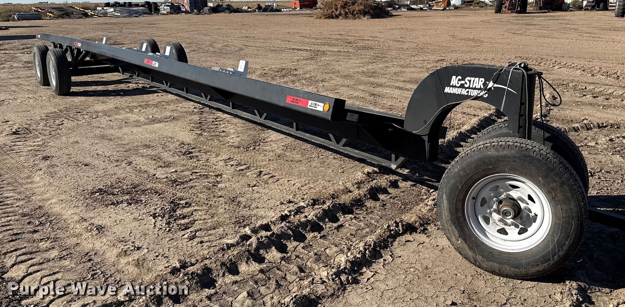 Ag-Star header trailer. VIN: HT00121. Dimensions Overall Length: 46', Width: 86", Deck Length: 36'. Features Deck type: Steel. Chassis Axles: Tandem. Tires Steel wheels, Size: 235/80R16. Transfer of ownership documentation will be a bill of sale. Sublette, KS 67877
