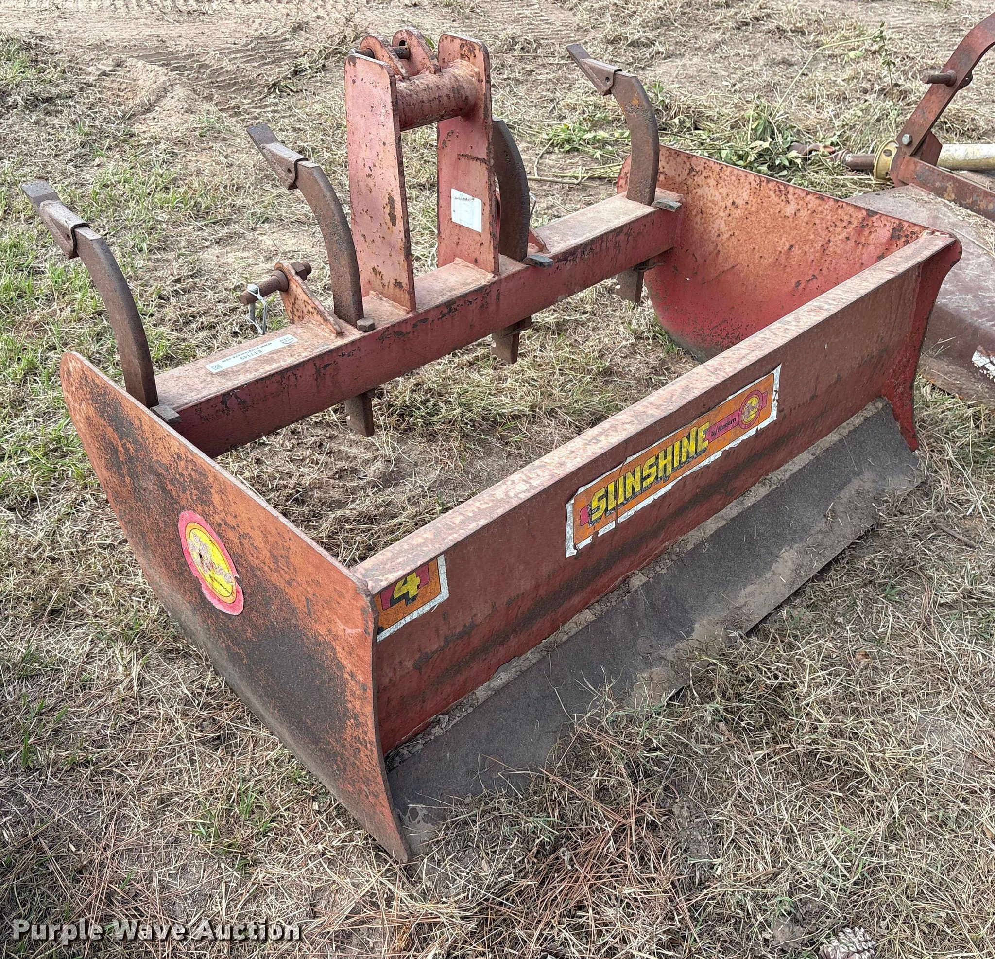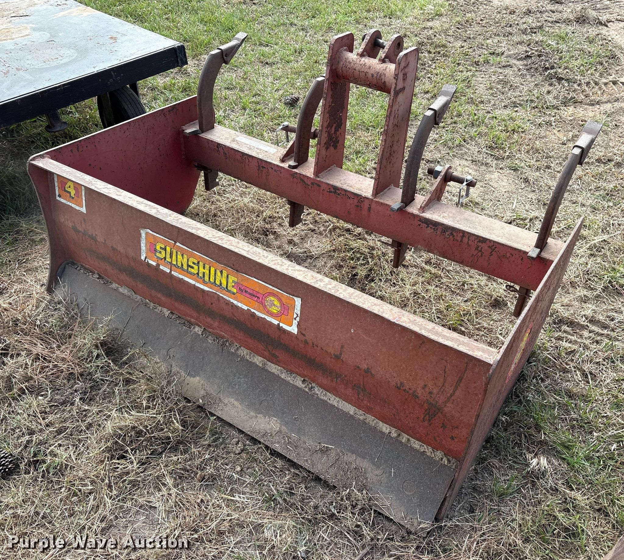 Purple Wave is selling a used Ag Tractor Loader or Attach. in Oklahoma. This item is a Modern 4 box blade with the following: Serial: 88088773