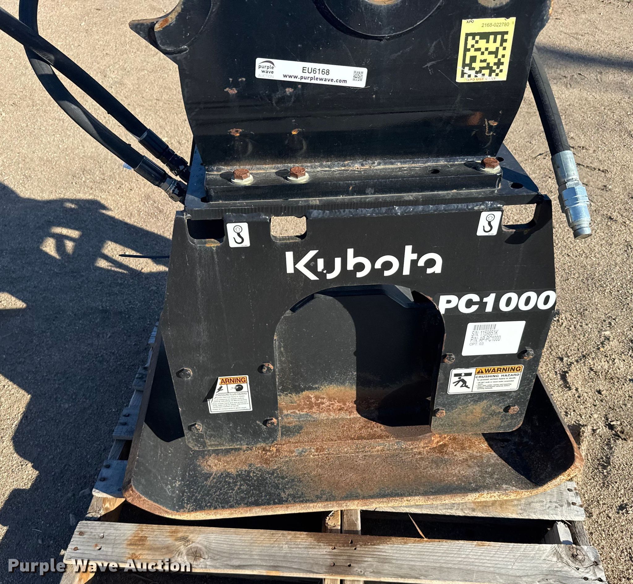 Purple Wave is selling a used Excavator Attach. in Kansas. This item is a Kubota PC1000 excavator plate compactor with the following: Serial: 1159851K, Width: 24"