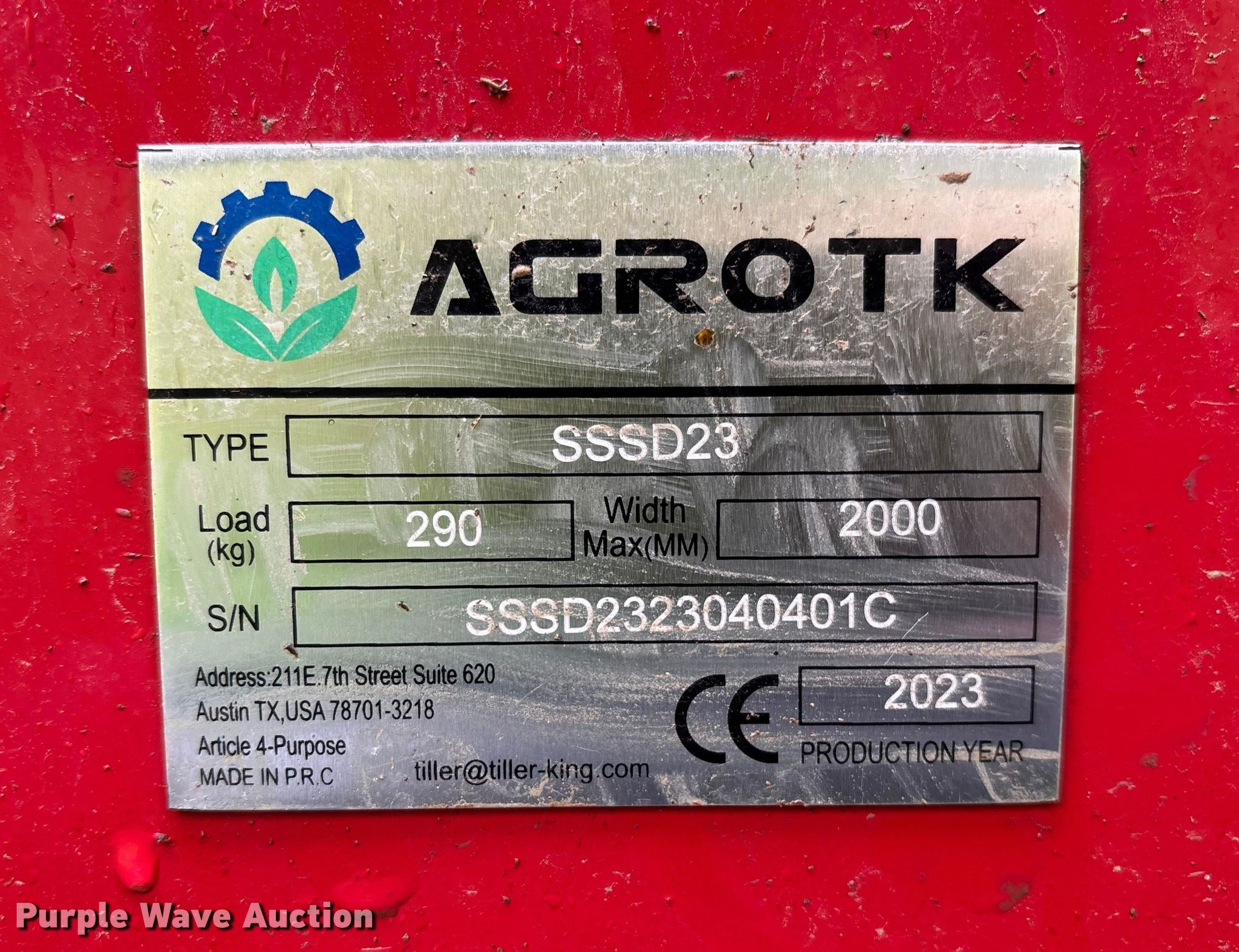 Purple Wave is selling a used Skid Steer Attach. in Kansas. This item is a 2023 Agrotk SSSD23 skid steer no-till seeder with the following: Serial: SSSD2323040401C, Width: 64"