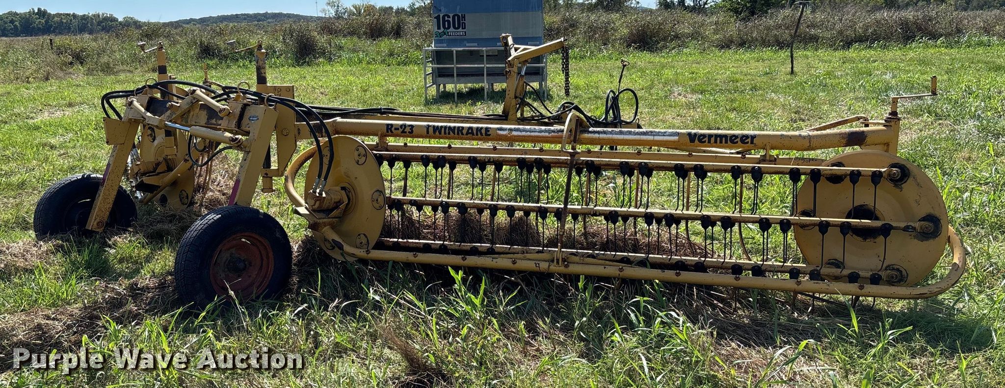 Purple Wave is selling a used Hay Rake in Kansas. This item is a 1990 Vermeer R-23 hay rake with the following: Serial: 1VRA201H6L1001882