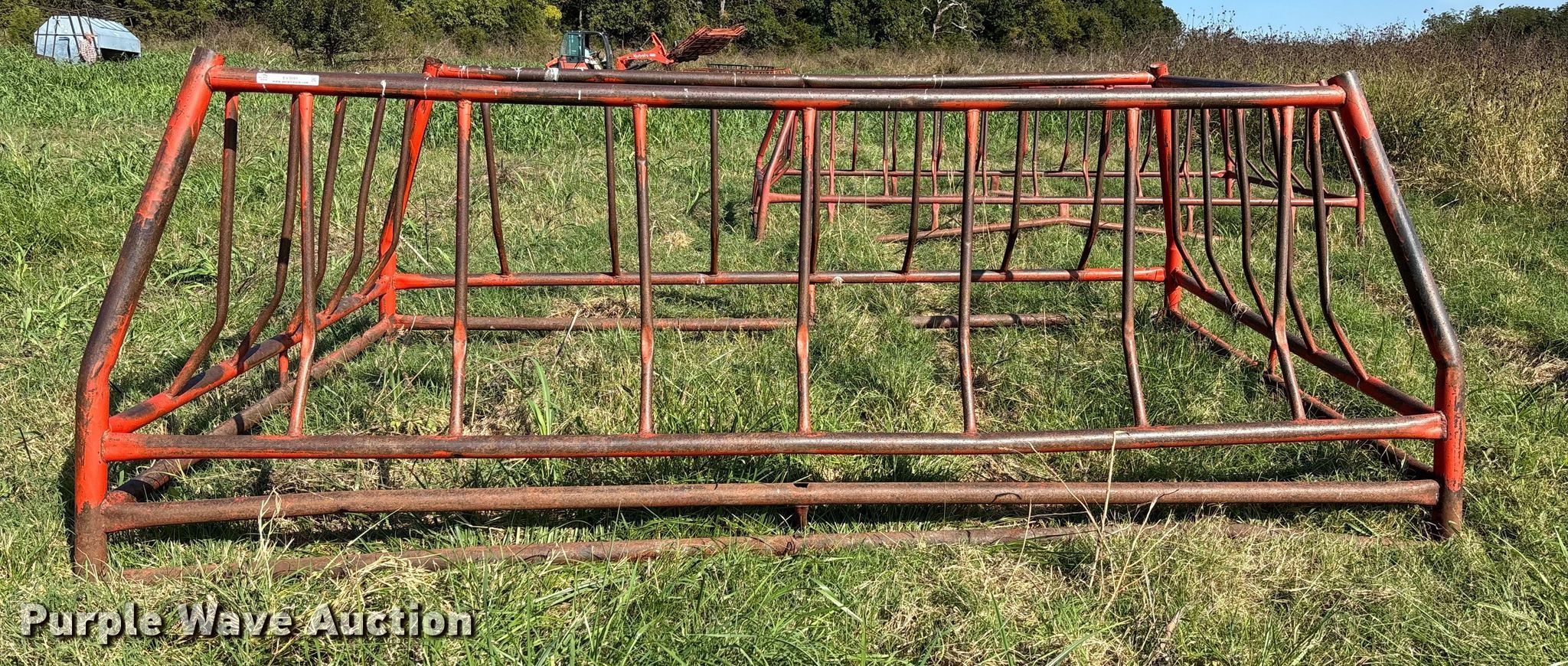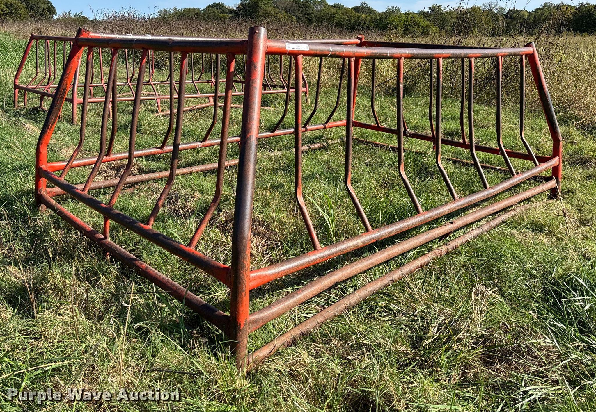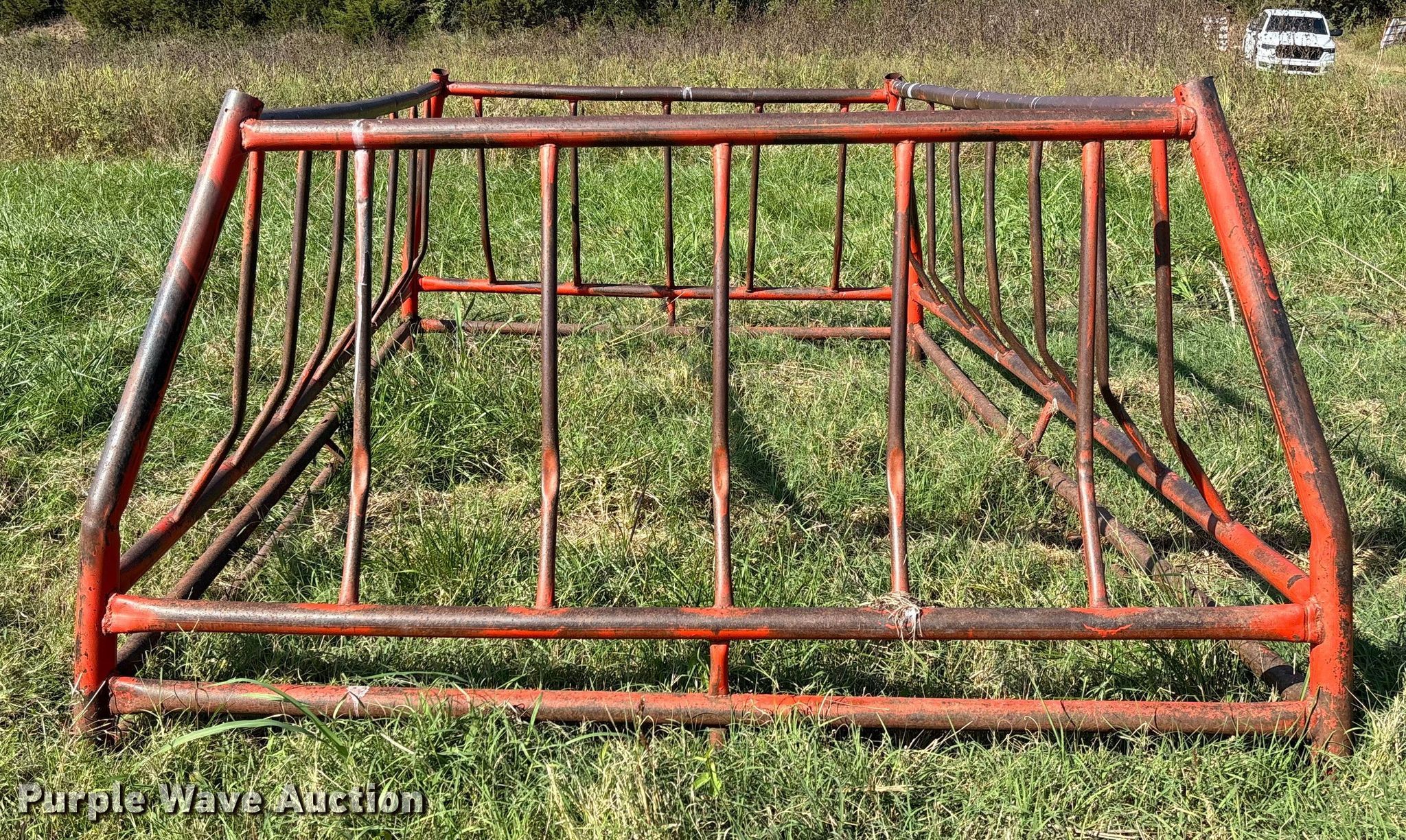 Purple Wave is selling a used Livestock Equip. in Kansas. This item is a Hay bale feeder with the following: Overall, Length: 150", Width: 96", Height: 53"