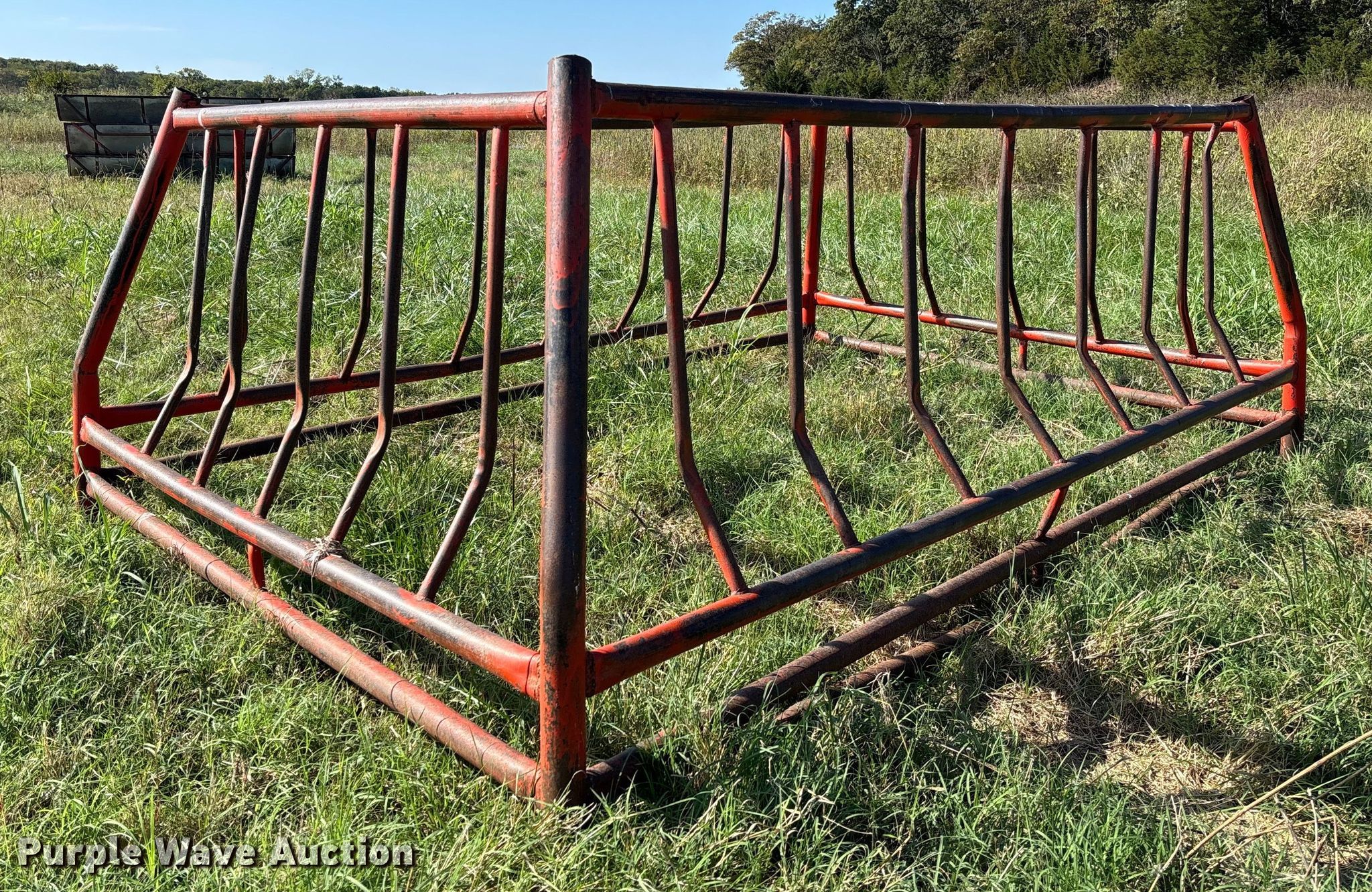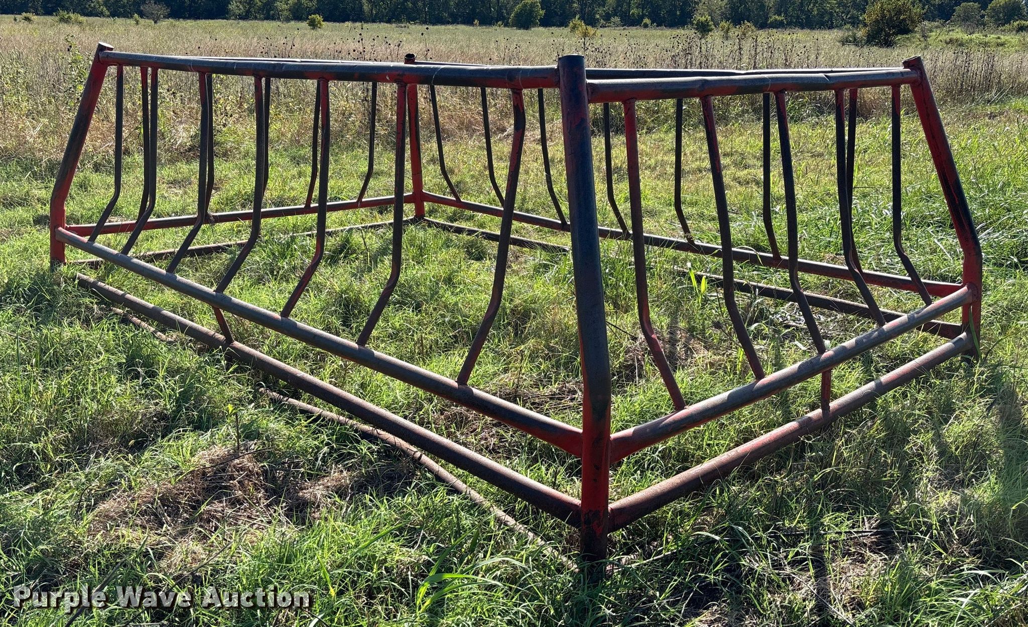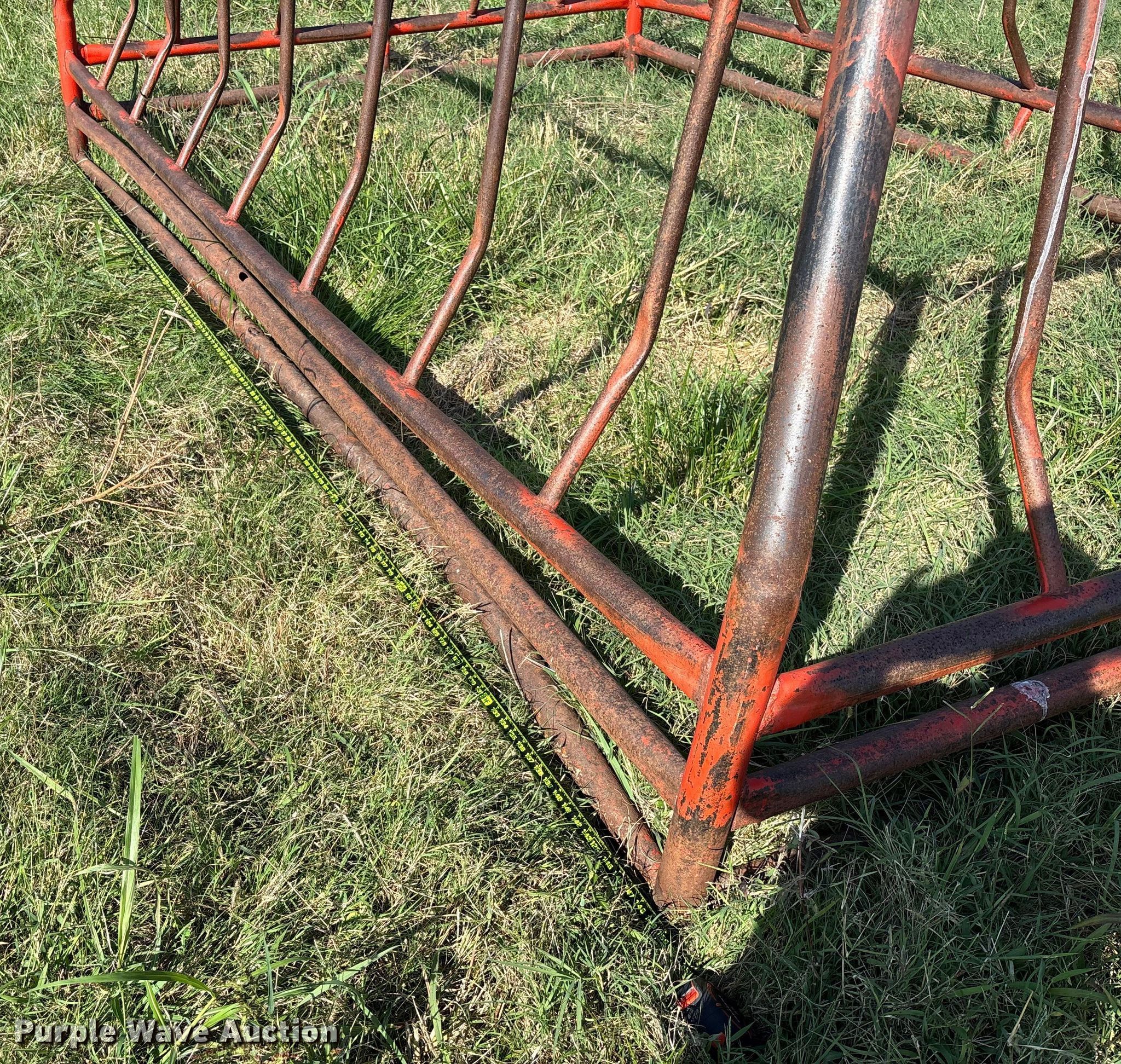 Purple Wave is selling a used Livestock Equip. in Kansas. This item is a Hay bale feeder with the following: Overall, Length: 150", Width: 96", Height: 53"