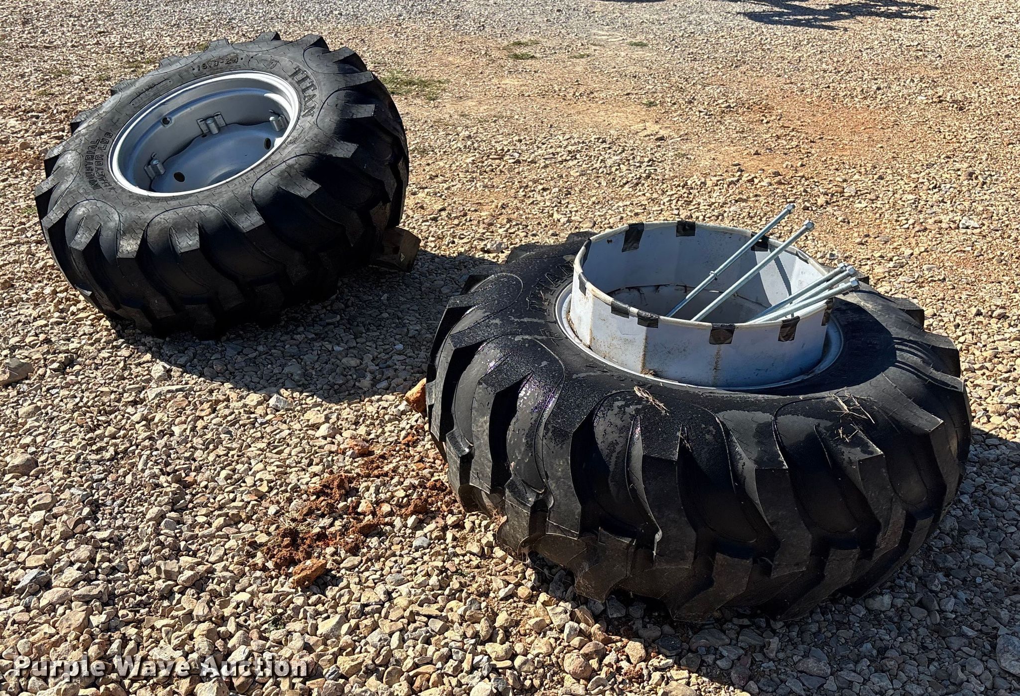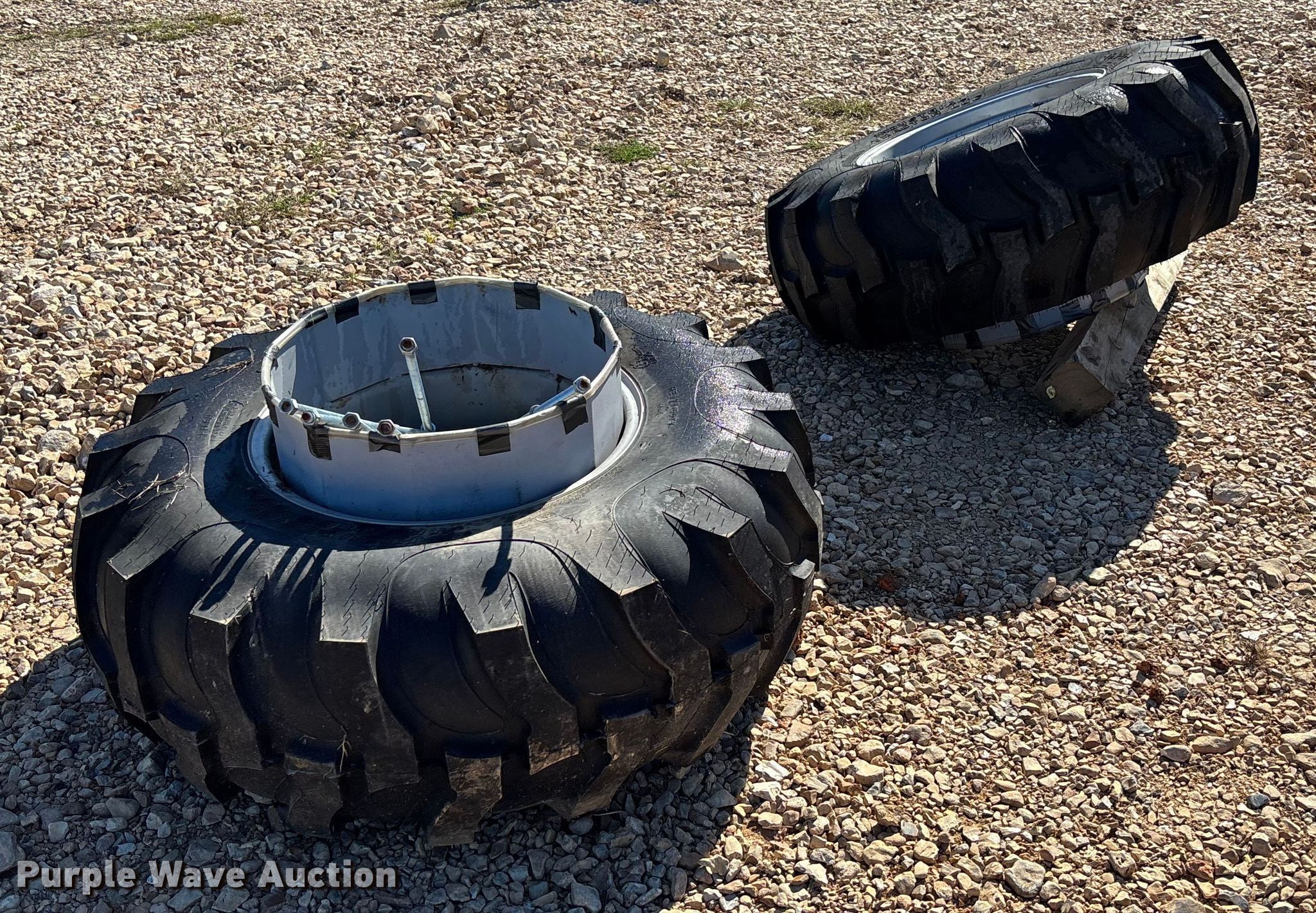 - Unattached dual tires and wheels included