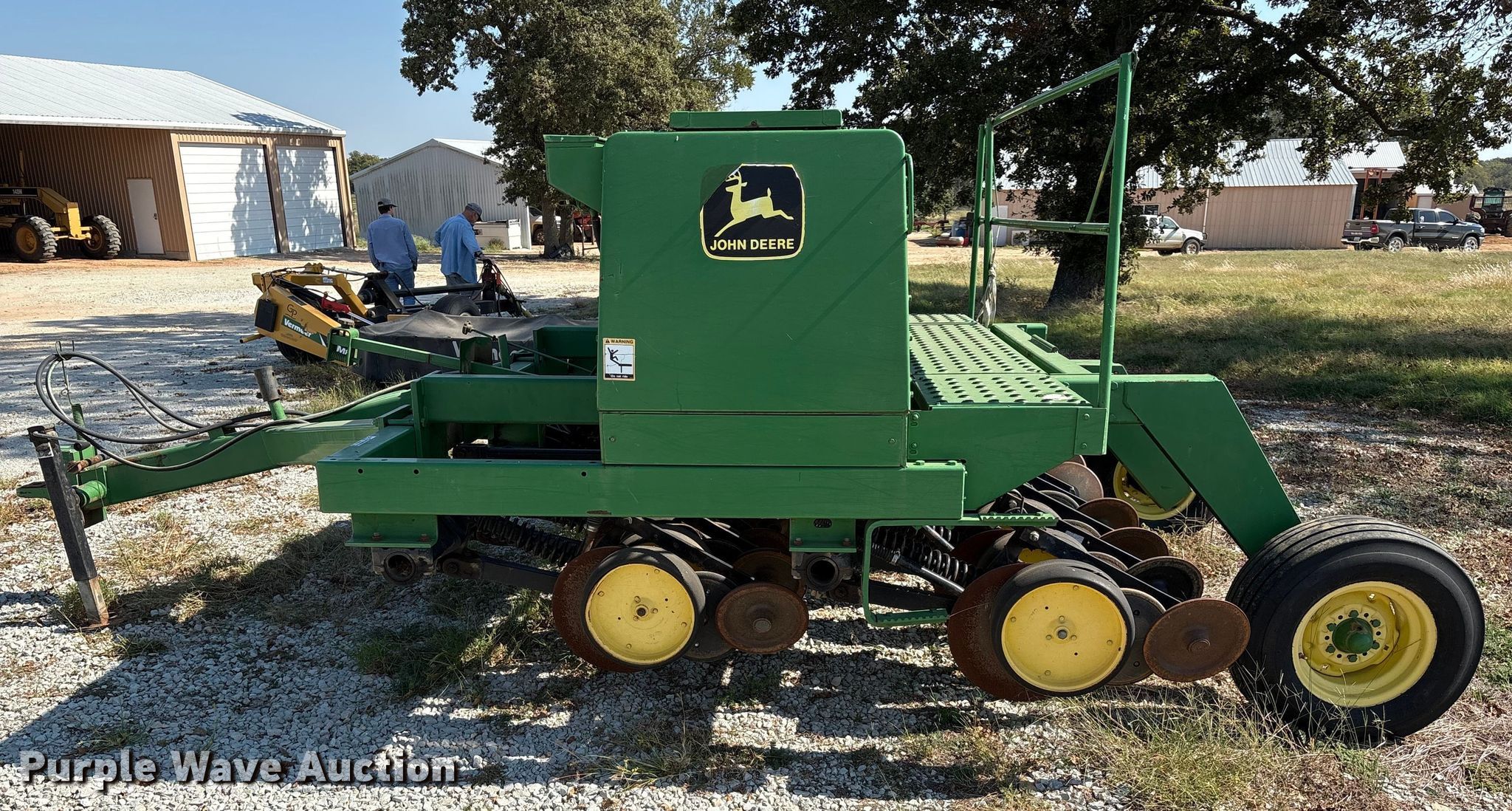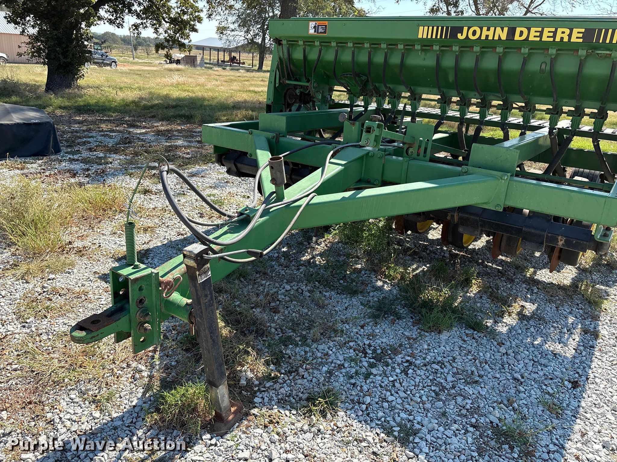 Purple Wave is selling a used Grain Drill or Seeder in Oklahoma. This item is a John Deere 750 grain drill with the following: Width: 10', Row units: 8, Row spacing: 15", Serial: N00750X005562