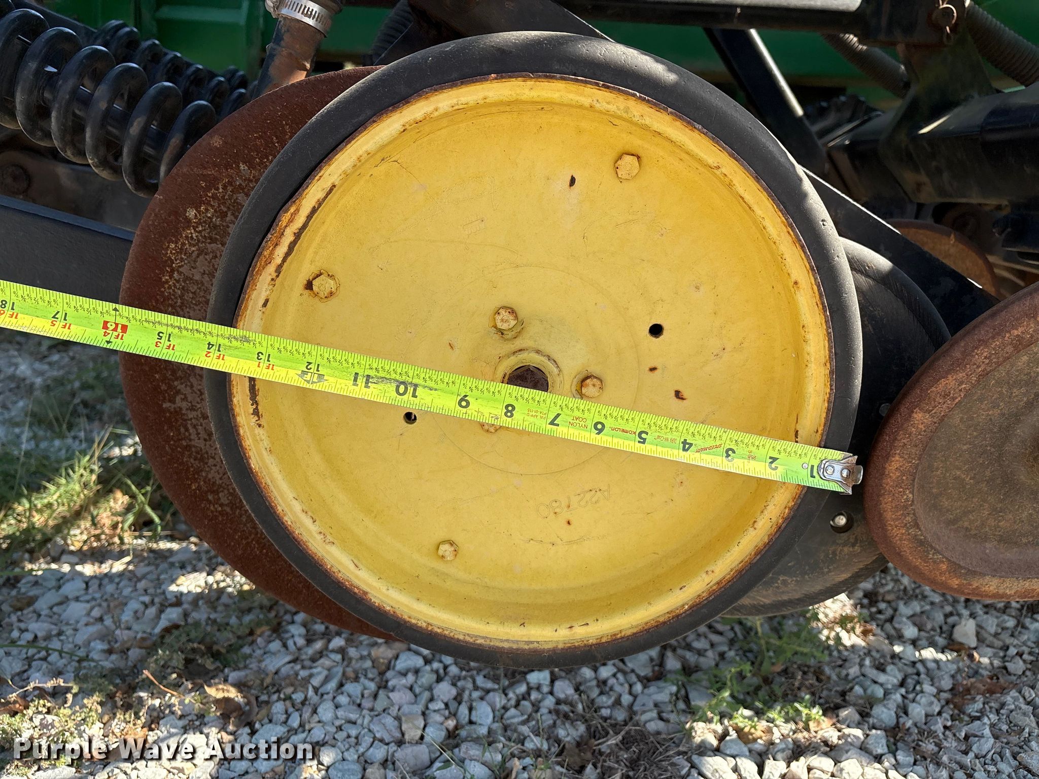 John Deere 750 grain drill. Width: 10', Row units: 8, Row spacing: 15", Serial: N00750X005562. Features Frame Split row units: 8, Split row spacing: 15", Seed delivery Bulk fill system, Row units No-till coulters, Disk openers: Single, Gauge wheels: Single, Closing system: Single Type: Rubber.. Tires Transport tire size: 11L-15 Quantity: 2. Robson Ranch. Connerville, OK 74836