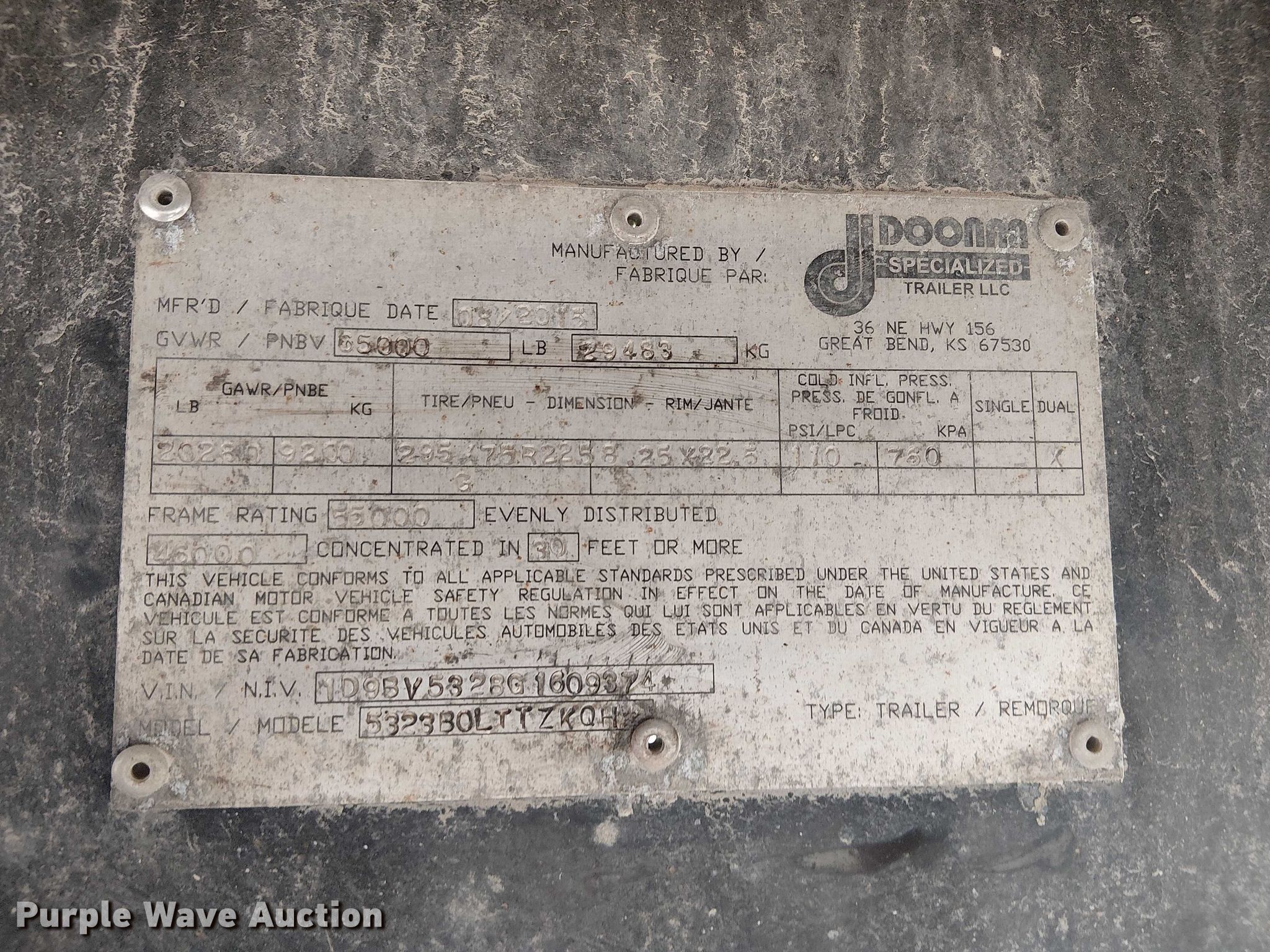Purple Wave is selling a used Flat or Drop Deck Trailer in Missouri. This item is a 2016 Doonan flatbed trailer with the following: VIN: 1D9BV5328G1609374