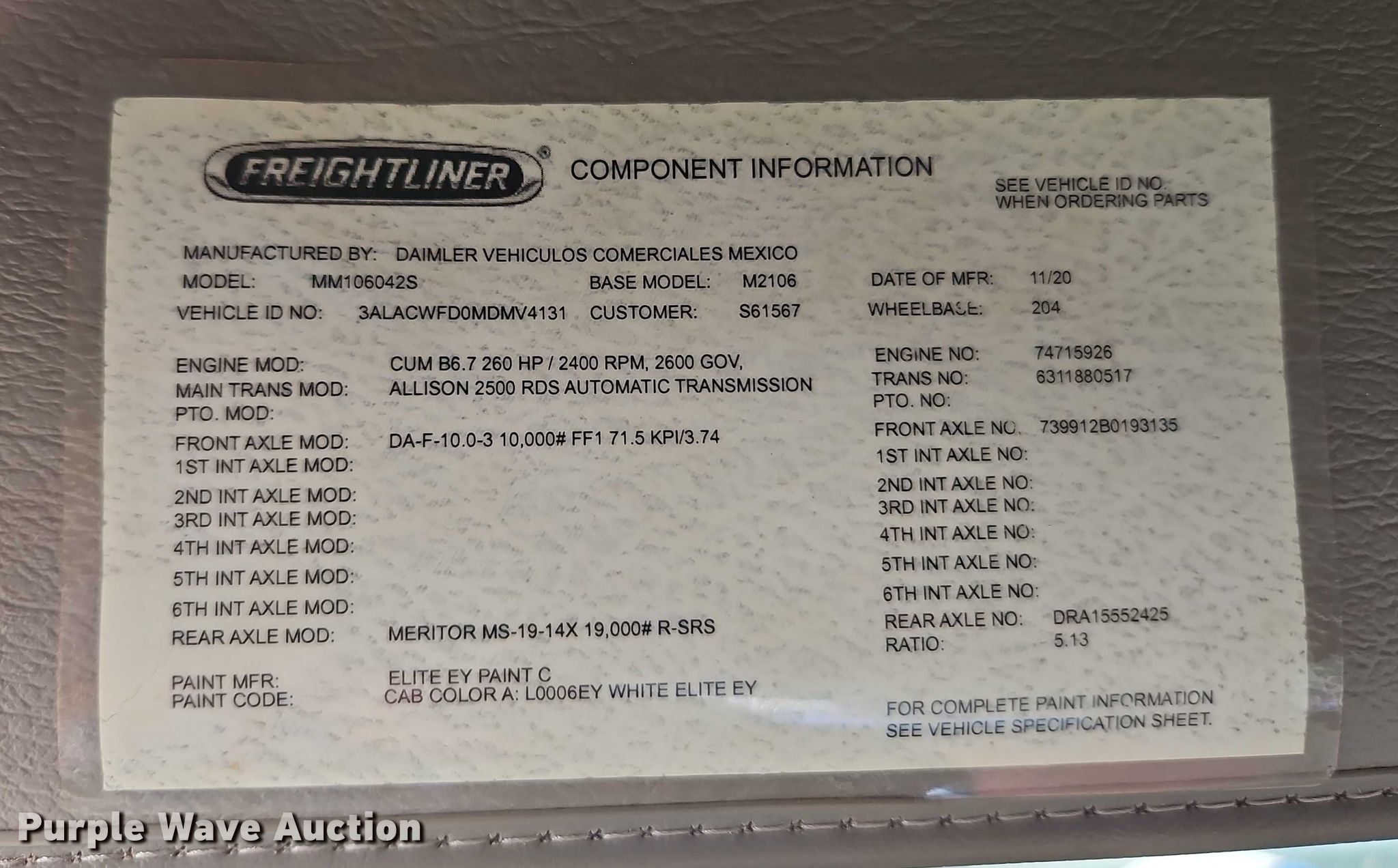 Take a look at this used 2021 Freightliner M2 flatbed truck being sold on November 13th, 2025 in the Thursday November 13 Truck and Trailer Auction made by Freightliner. Take a look at all of the item information below or take a look at similar auctions for Trucks.