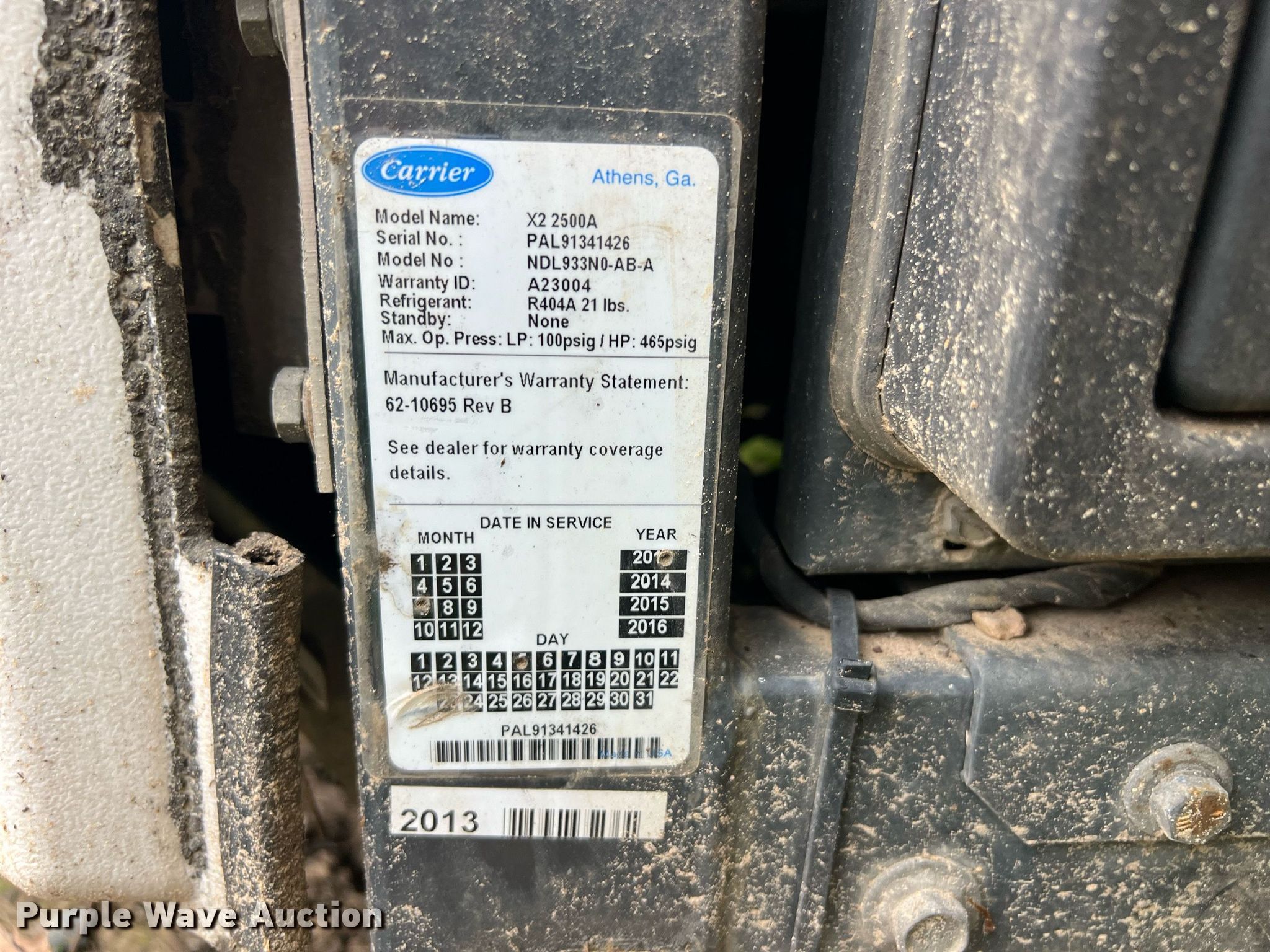 Purple Wave is selling a used Truck Part and Attach. in Oklahoma. This item is a Carrier X2 2500 Advance refrigerator unit with the following: Serial: PAL91341426