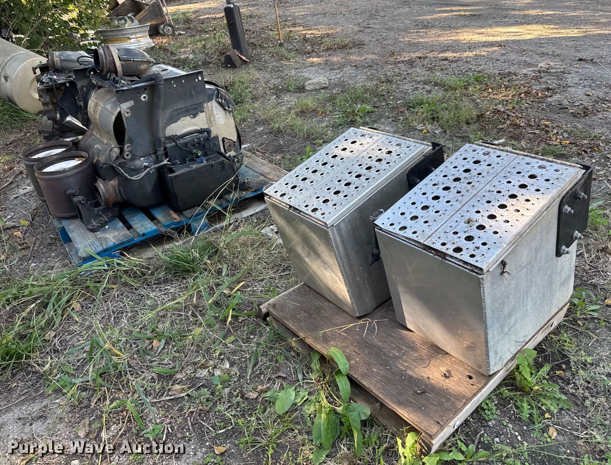 Truck parts. (2) DPF tanks One unit non-operational, (2) toolboxes. Burrowwood Associates, Inc. Valley Center, KS 67147