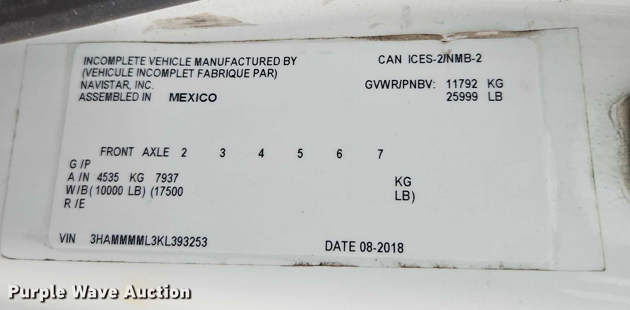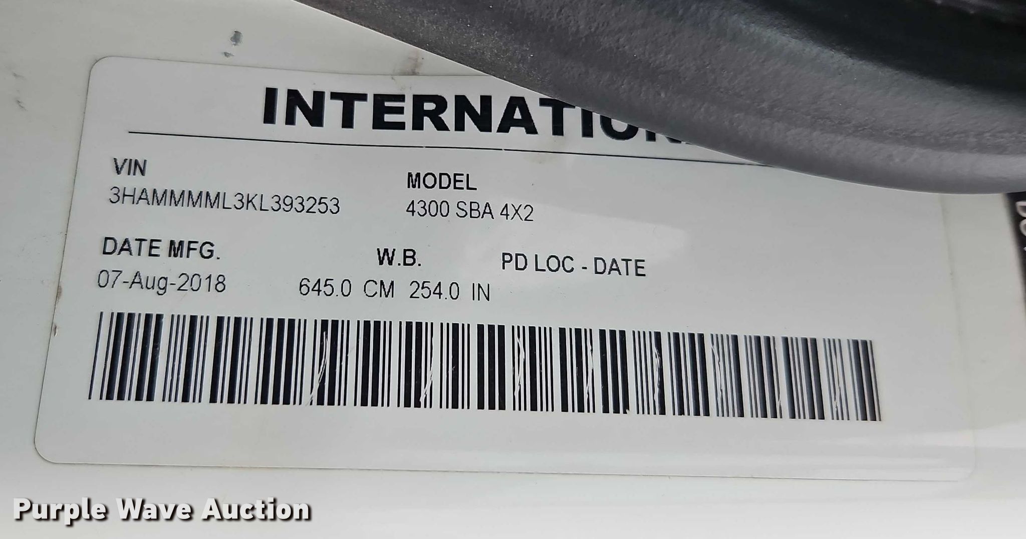 2019 International MA025 box truck. Miles: 192,418 on odometer, Hours: 6,221 on meter, VIN: 3HAMMMML3KL393253. Engine Cummins ISB, Displacement: 6.7L, Fuel type: Diesel. Transmission Automatic. Chassis Axles: Single, Suspension: Spring, Brakes: Air, GVWR: 25,999 lbs, Wheelbase: 254". Interior AC, Heat, Cruise control. Features Bed Box bed, TransGlobal, Serial: 322974, Length: 26' 6", Width: 102", Height: 12' 5", E-track rail system, Floor: Wood, Slider ramp 24", End gate lift, Waltco. Tires Size: 11R22.5. Notes Dash warning indicator: Check engine. Kansas title. Seller is a Missouri licensed motor vehicle dealer. The buyer may be required to pay sales tax and/or registration fees to the dealer prior to taking possession. Buyers may be required to provide identification to the licensed dealer to comply with state laws. Title will be assigned and distributed by the dealer. Please contact the seller for distribution questions. Title distribution may be delayed up to 30 days from verification of funds. Interstate 49 Truck Center. Grandview, MO 64030