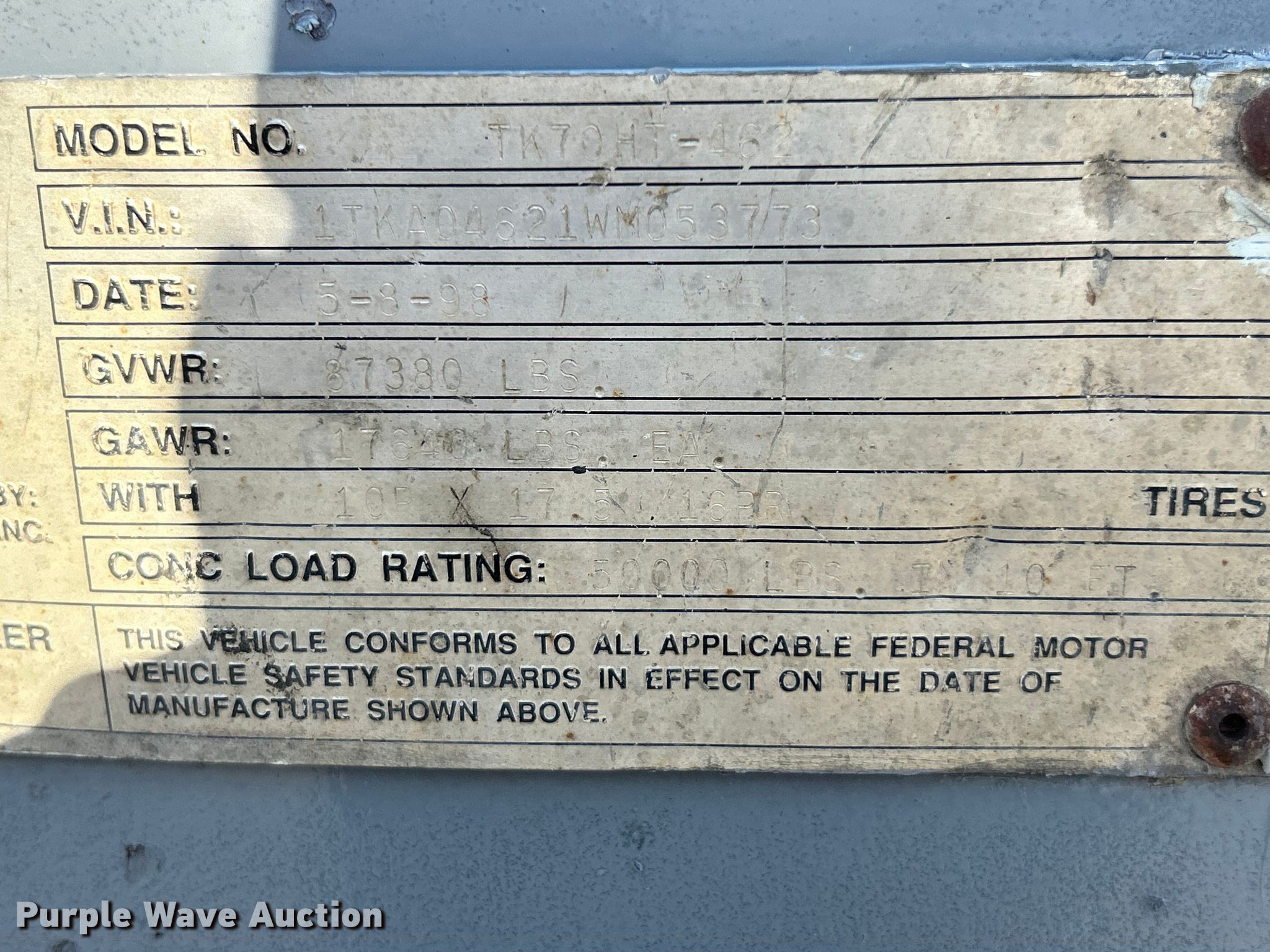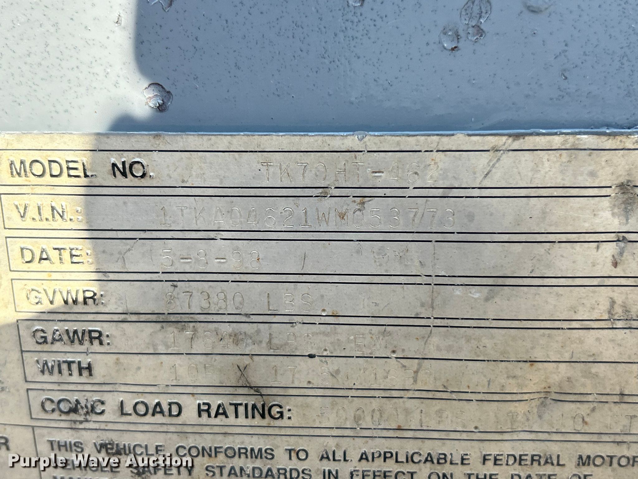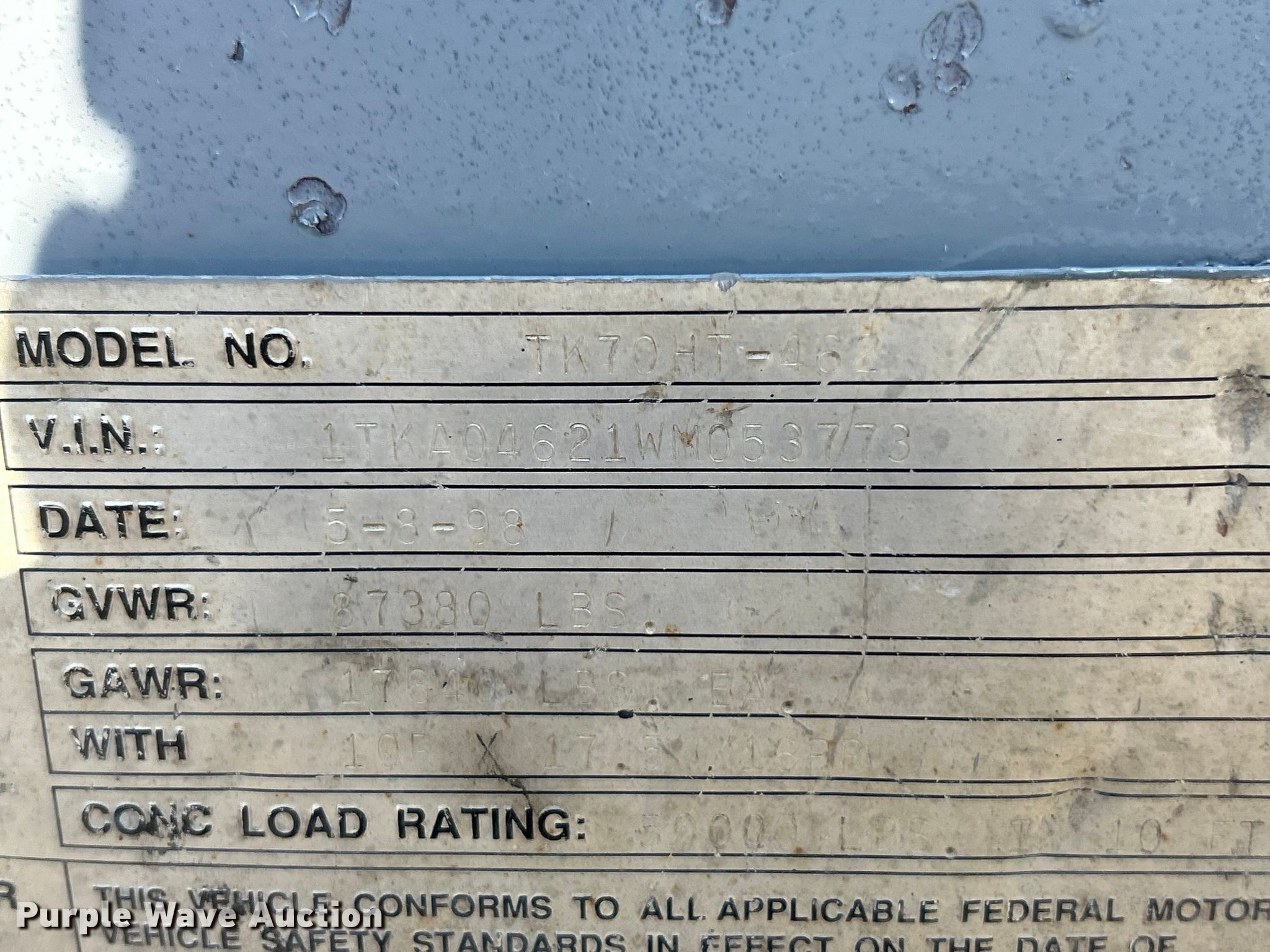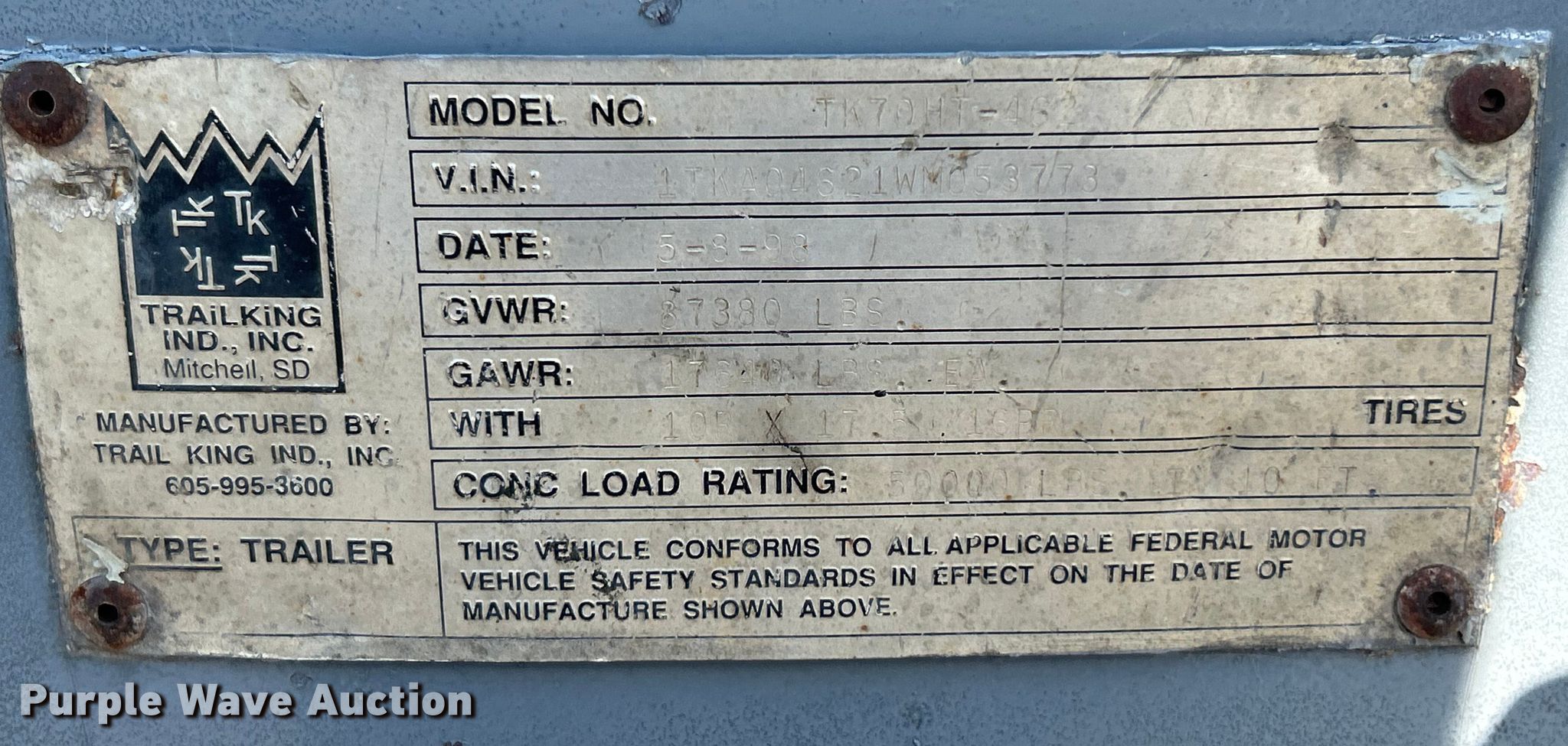 Purple Wave is selling a used Equip. Trailer in Missouri. This item is a 1998 Trail King TK70HT-462 drop deck hydraulic tail equipment trailer with the following: VIN: 1TKA04621WM053773