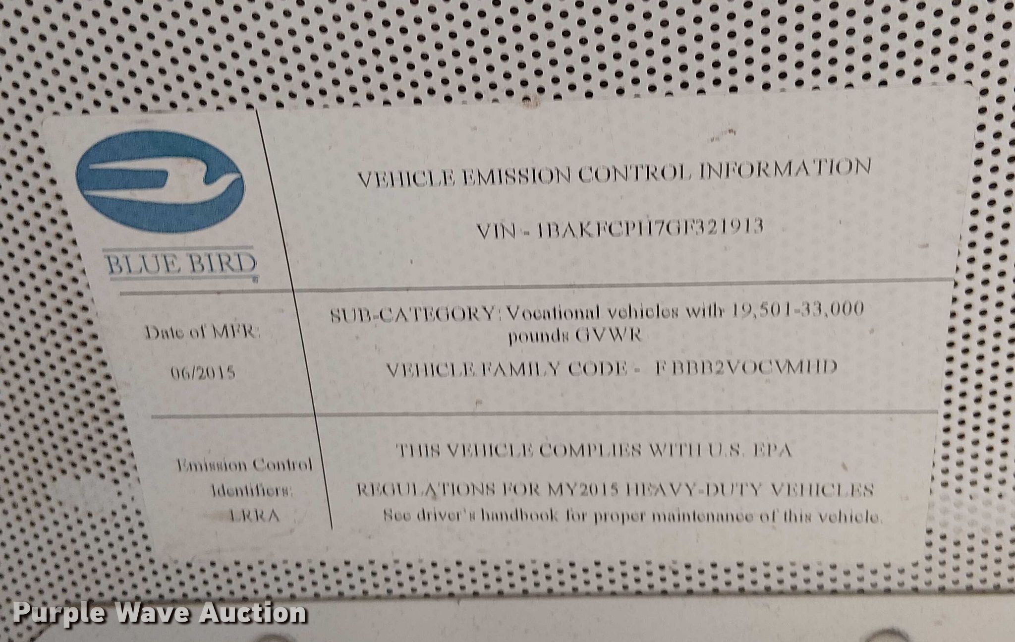 Purple Wave is selling a used Bus in Oklahoma. This item is a 2016 BlueBird Vison school bus with the following: Miles: Actual unknown, Miles or hours may vary, unit still in use, VIN: 1BAKFCPH7GF321913