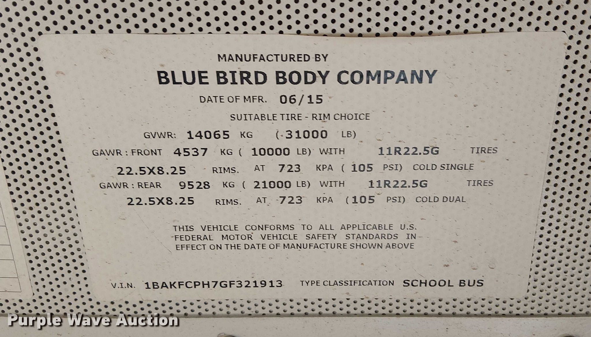 - VIN: 1BAKFCPH7GF321913