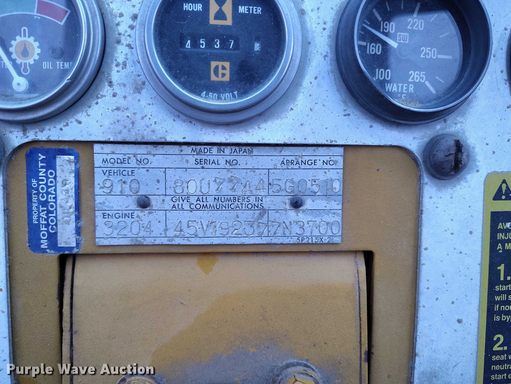 Purple Wave is selling a used Wheel Loader in Colorado. This item is a 1978 Caterpillar 910 wheel loader with the following: Hours: 4,537 on meter, Serial: 80U7744