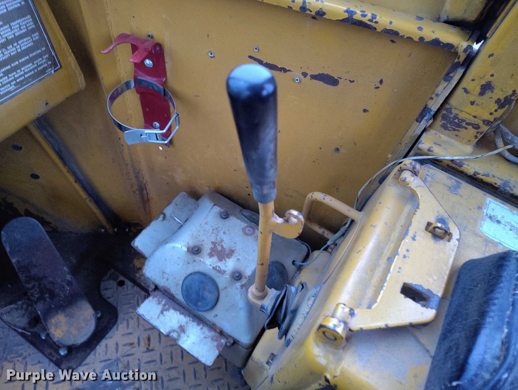 1978 Caterpillar 910 wheel loader. Hours: 4,537 on meter, Serial: 80U7744. Engine Caterpillar 3204, Serial: 45V192377N3700, Cylinders: 4, Fuel type: Diesel. Transmission Powershift, 3F - 1R. Operators station Enclosed cab, Heat, Bucket controls: Joystick. Features Quick coupler: Hydraulic, Bucket Width: 82", Cutting edge: Bolt-on, Forks Balderson, Length: 48". Tires Size: 15.5R25. Moffat County. Craig, CO 81625