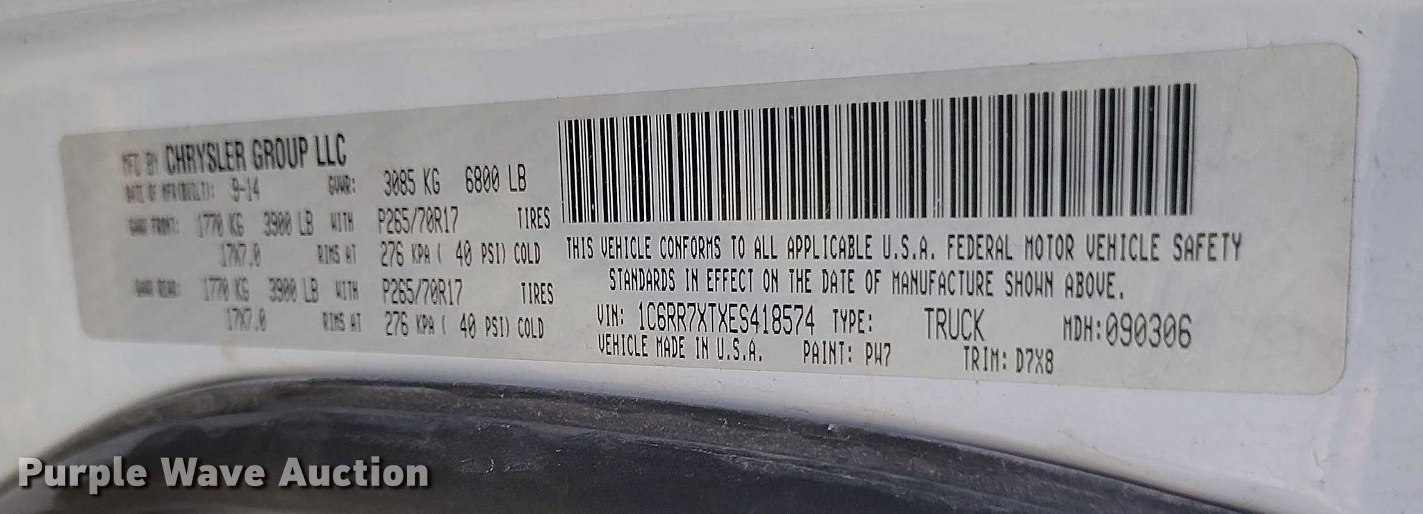 Purple Wave is selling a used 1/2 Ton Pickup or Van in Nebraska. This item is a 2014 RAM 1500 Crew Cab pickup truck with the following: Miles: 213,535 on odometer, VIN: 1C6RR7XTXES418574