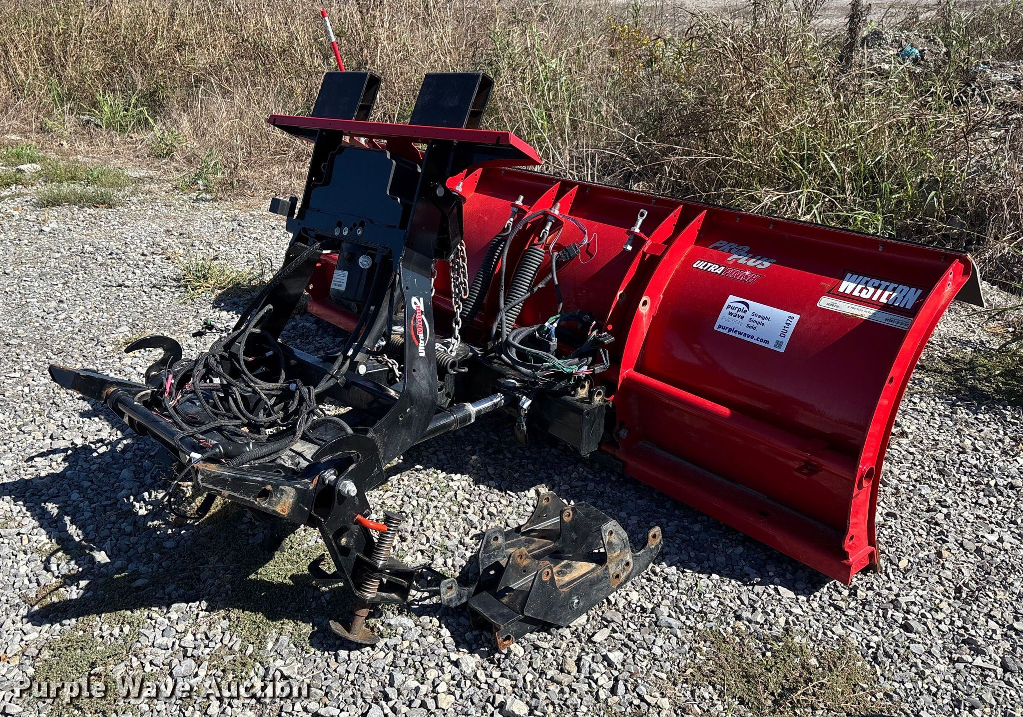 Purple Wave is selling a used Automotive Parts or Acces. in Missouri. This item is a Western Pro Plus snow plow with the following: Width: 8', Controller, Mounting bracket