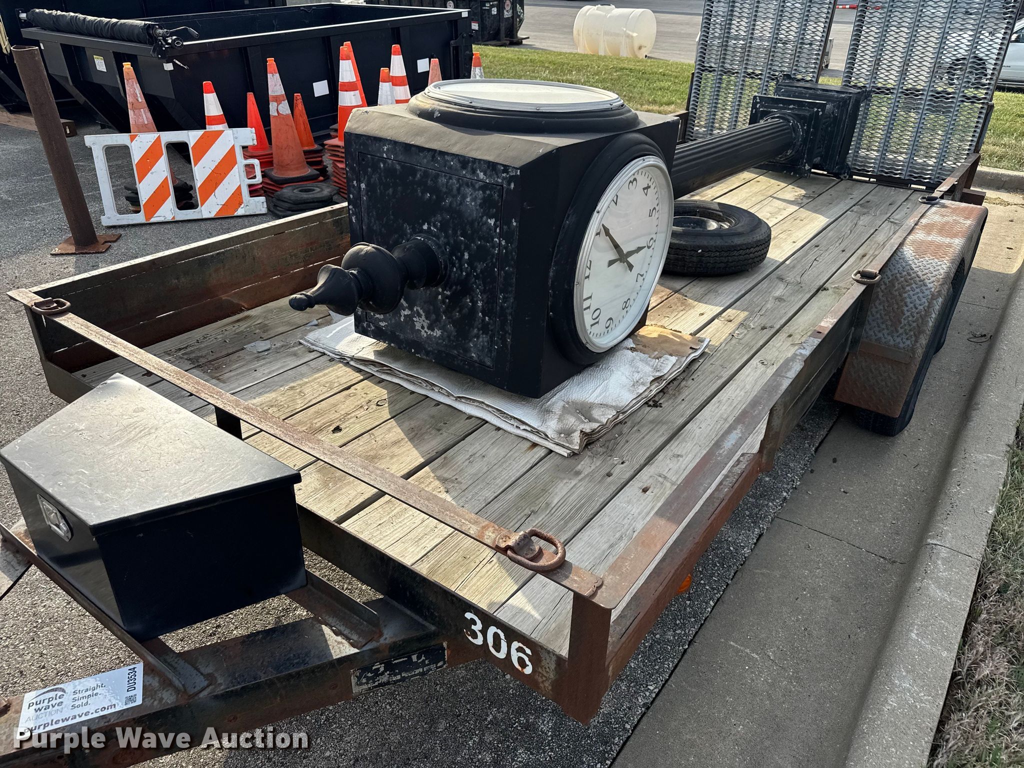 1987 JFW utility trailer. VIN: 42JTF1626H1K10465. Dimensions Overall Length: 20' 2", Width: 98", Deck Length: 16', Width: 77", Side height: 11", Deck height: 24", Ramps: Manual Length: 58". Features Deck type: Wood. Chassis Hitch: Pintle, Landing gear: Single, Suspension: Spring, Brakes: Electric, Axles: Tandem. Tires Steel wheels, Size: 205/75R15. Notes Clock is not included, Non-operational brakes , Unit must be towed or hauled. Kansas title. Title distribution may be delayed up to 14 days from verification of funds. City of Shawnee Parks & Rec. Shawnee, KS 66217