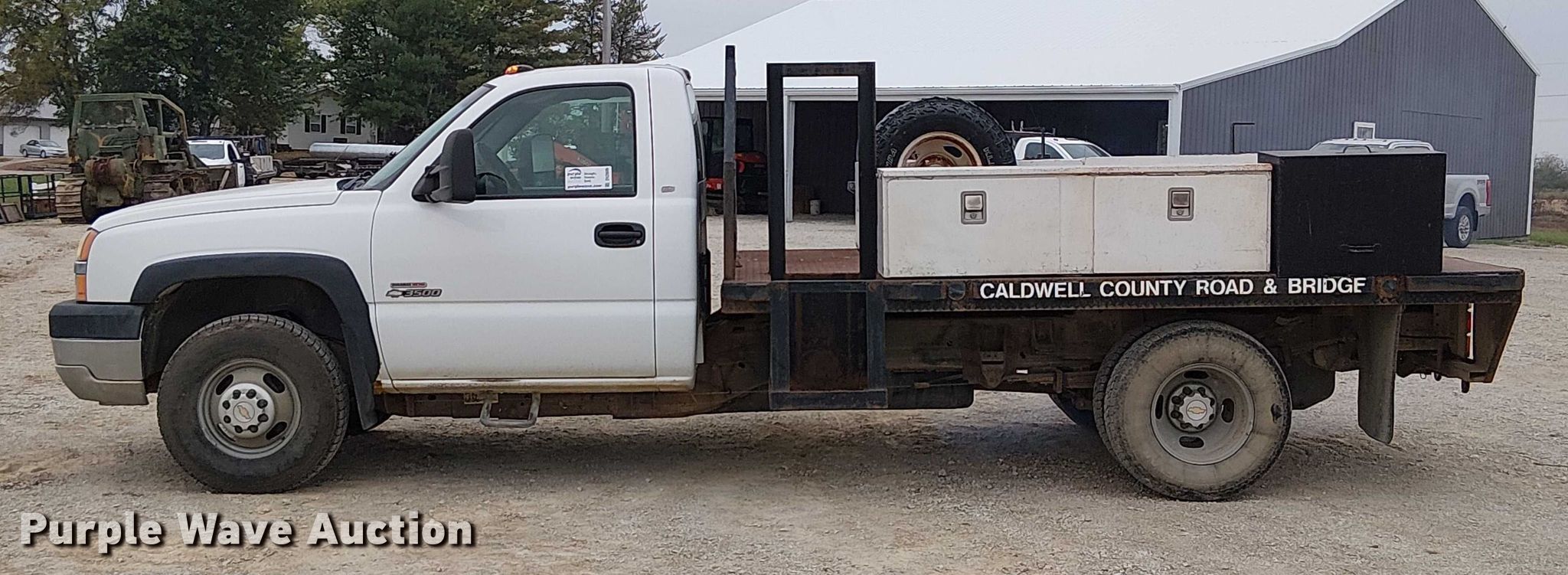 This 2003 Chevrolet Silverado 3500 flatbed pickup truck will sell to the highest bidder regardless of price.