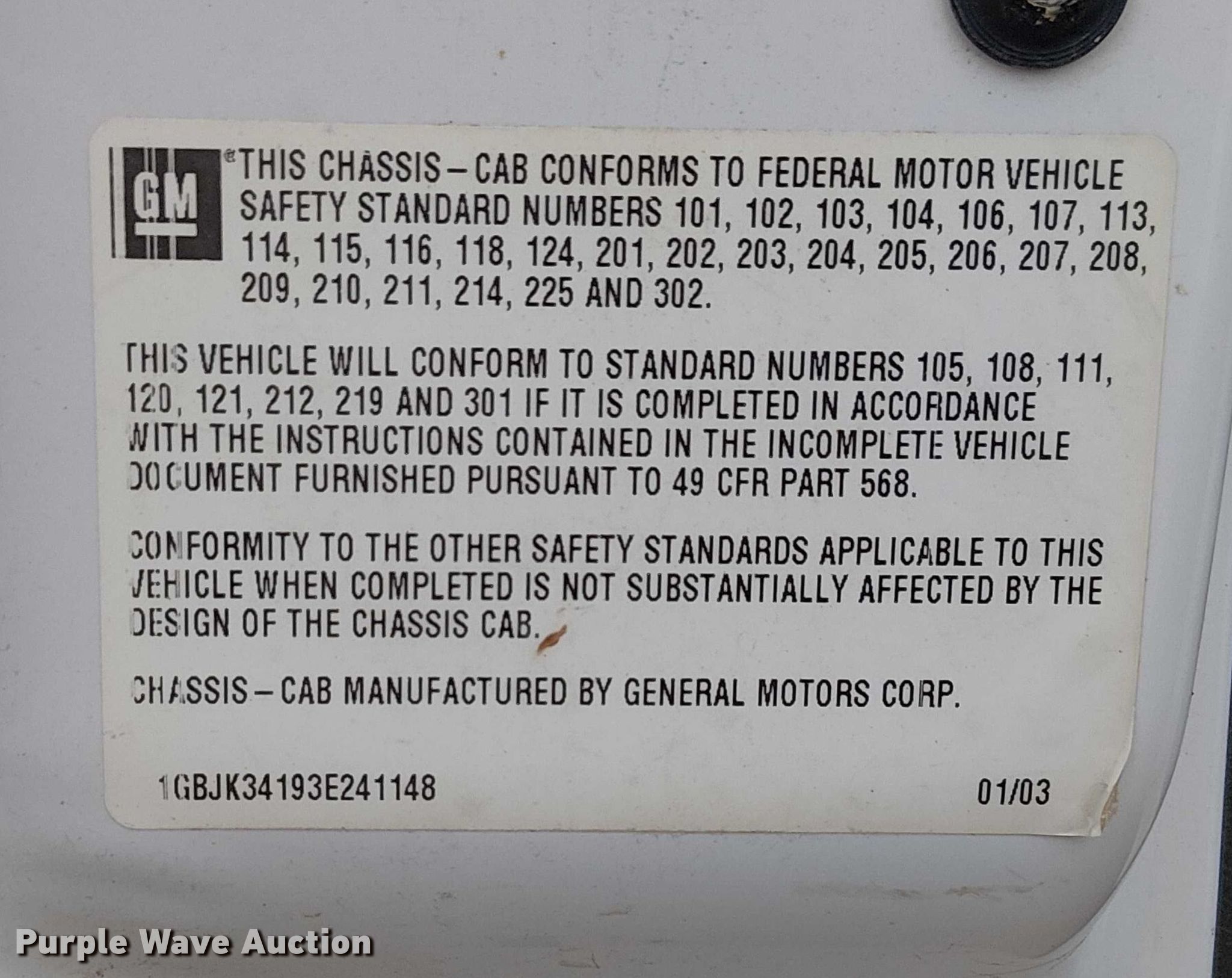 - VIN: 1GBJK34193E241148