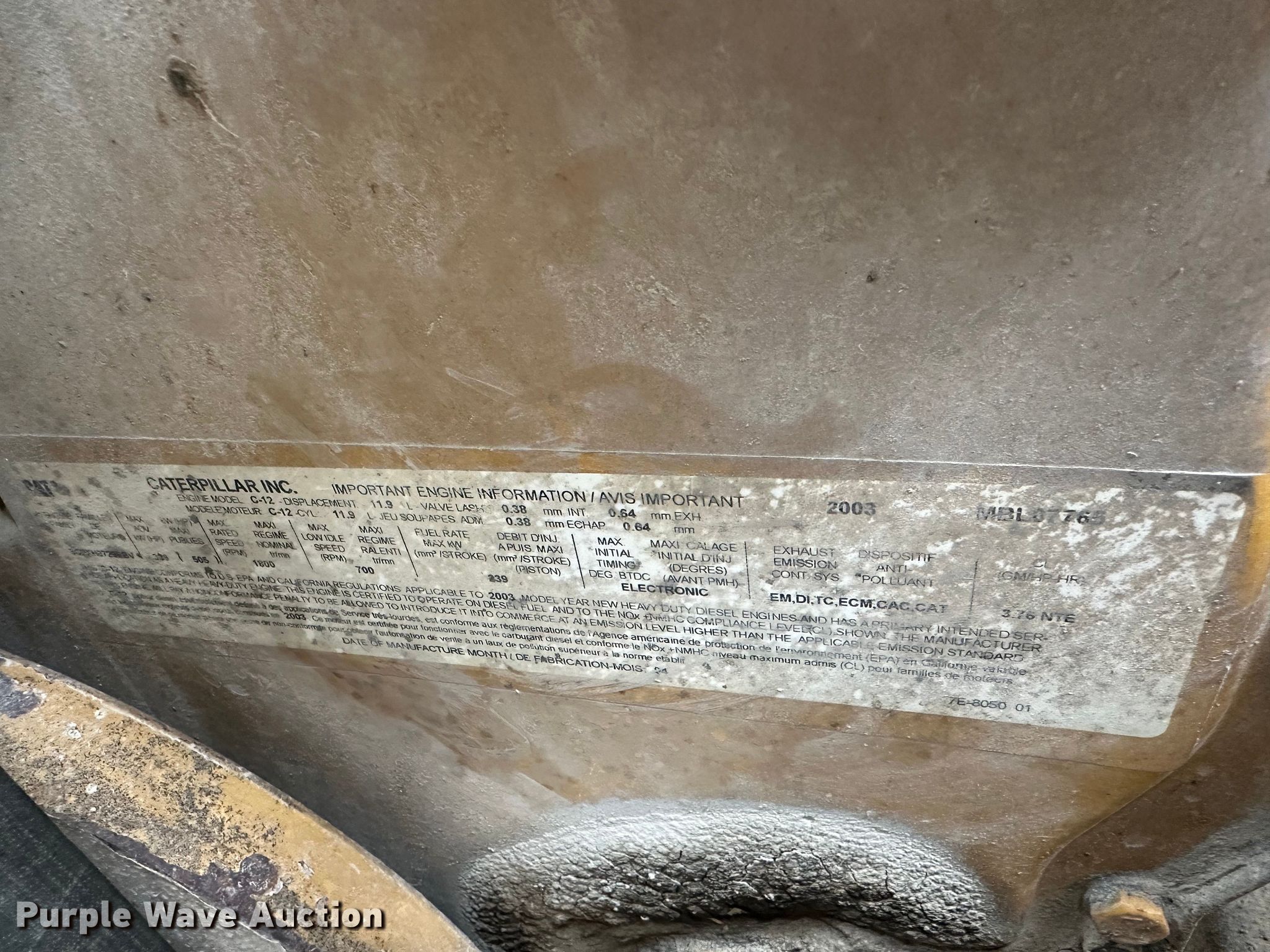 2004 Freightliner FL112 semi truck. Miles: 339,331 on odometer, VIN: 1FUJBGAS24HM33584. Engine Caterpillar C12, Displacement: 12.0L, Cylinders: 6, Fuel type: Diesel. Transmission Eaton Fuller, Manual, Speed: 10. Chassis Axles: Tandem, Differential lock: Inter-axle, Suspension: Air Dump valves, Brakes: Air, PTO, Wet kit, GVWR: 52,000 lbs FAWR: 12,000 lbs, IAWR: 20,000 lbs, RAWR: 20,000 lbs. Interior AC, Heat, Heated mirrors, Cruise control, Air ride cab. Features Deck plate: Aluminum, Fifth wheel type: Air operated, Sliding, Fuel tank: Dual. Tires Size: 295/75R22.5. Notes Windshield chipped or cracked, PTO hydraulic leak. Missouri title. Title distribution may be delayed up to 30 days from verification of funds. Caldwell County, MO. Kingston, MO 64650