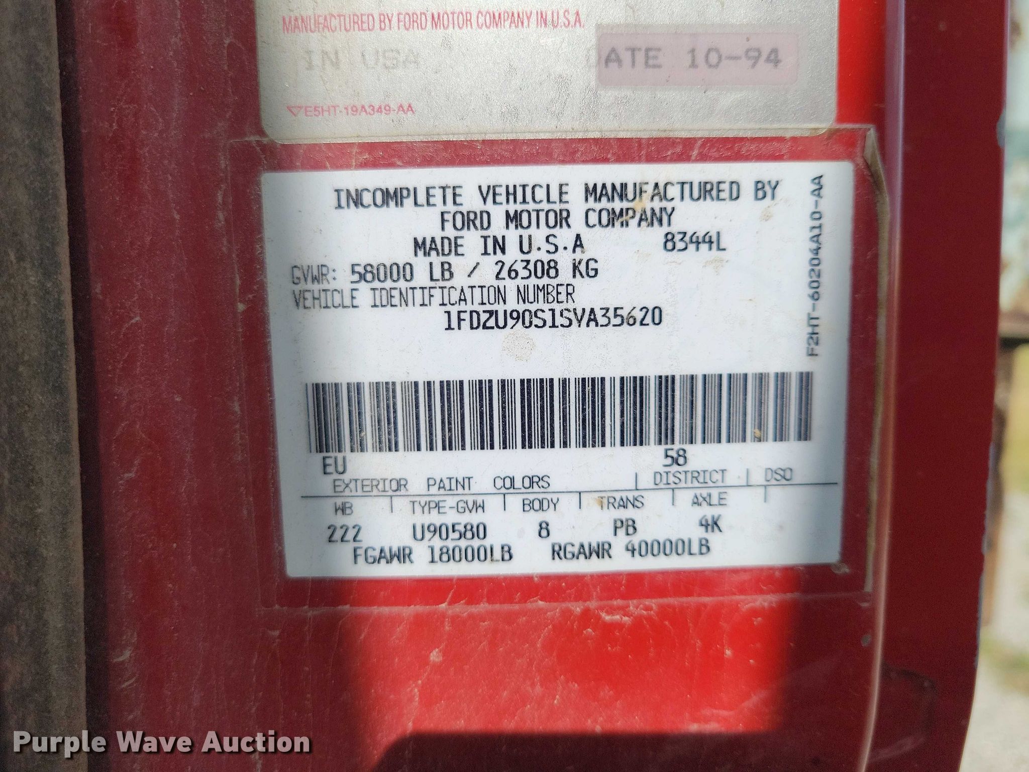 - VIN: 1FDZU90S1SVA35620