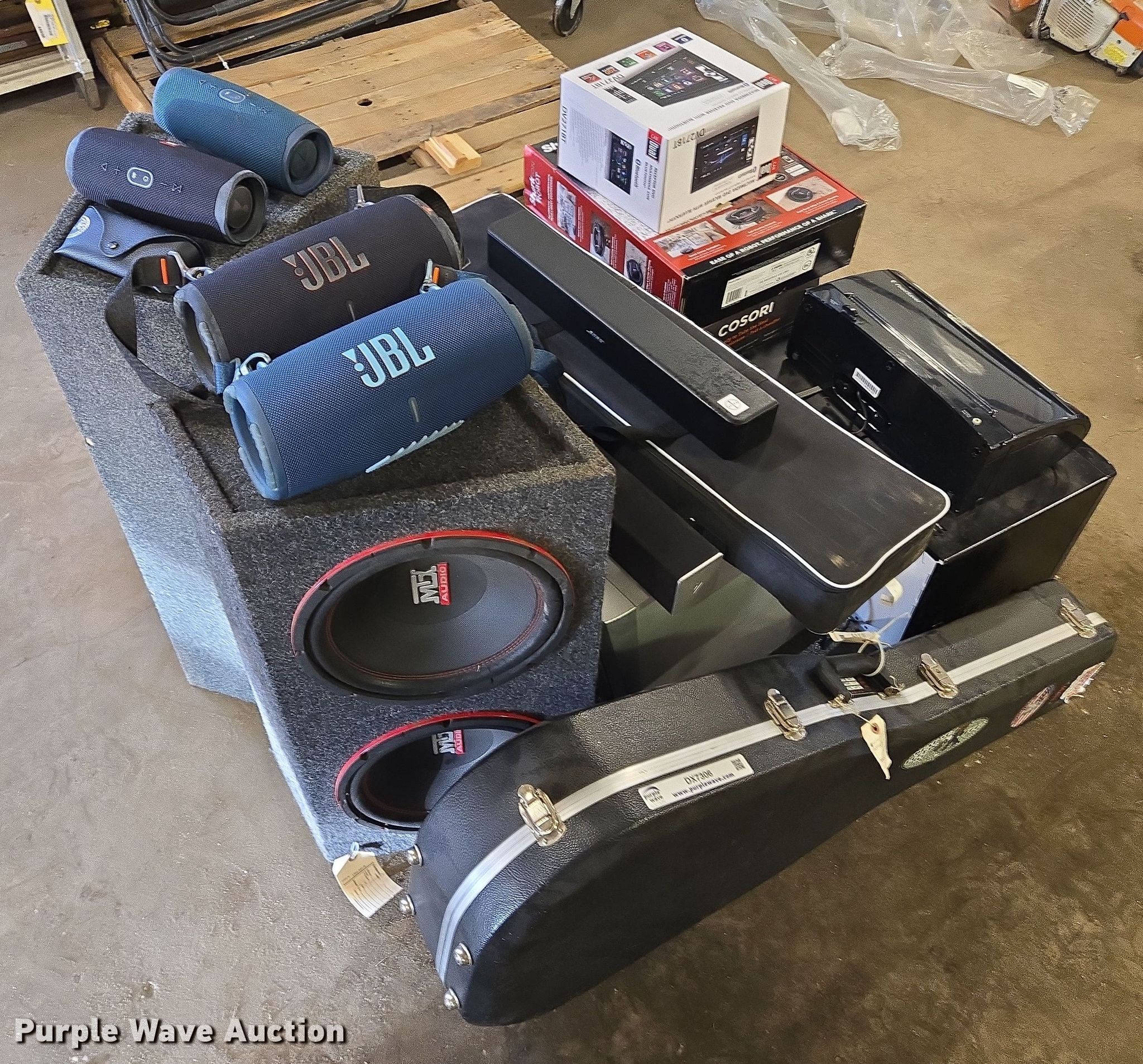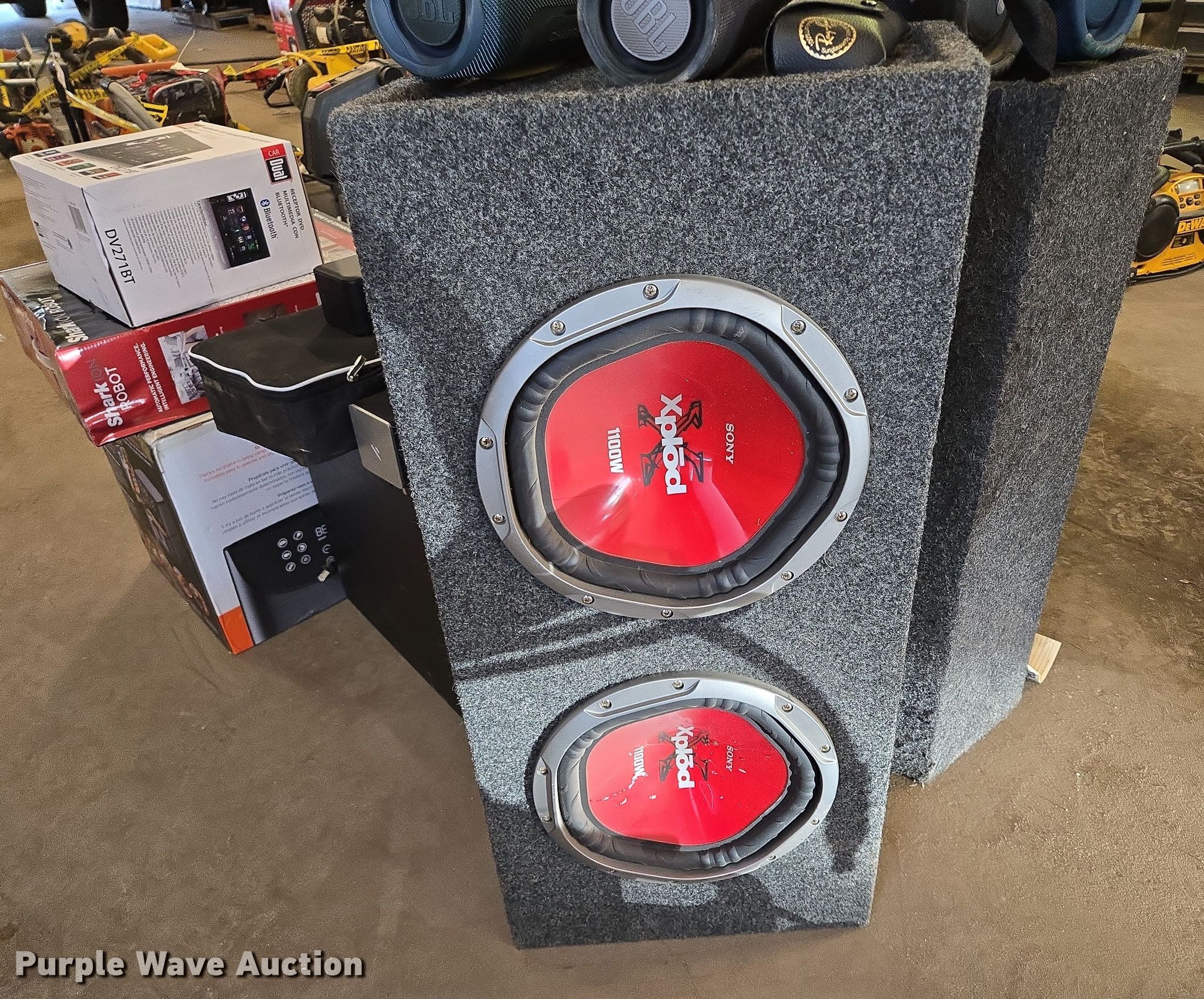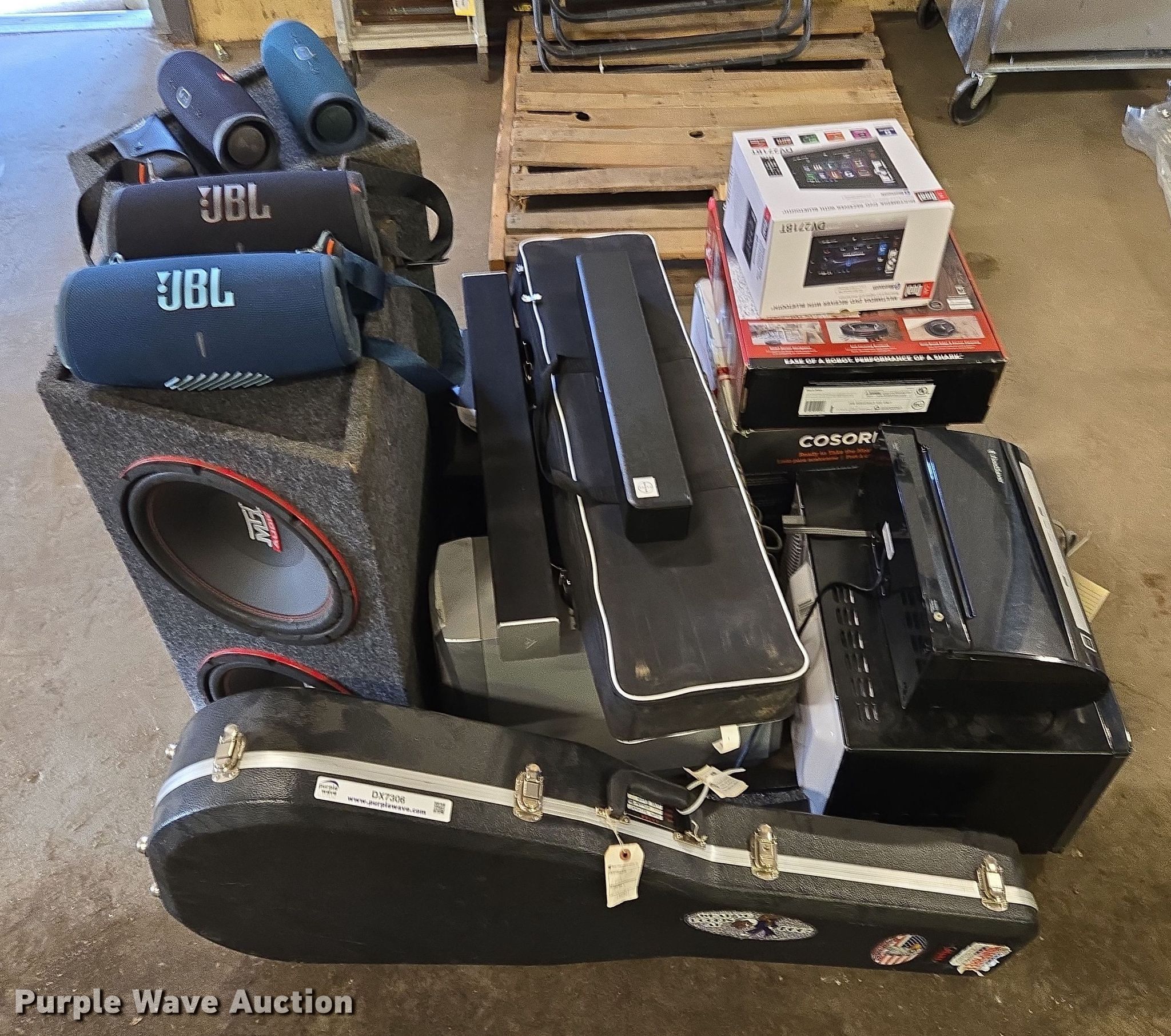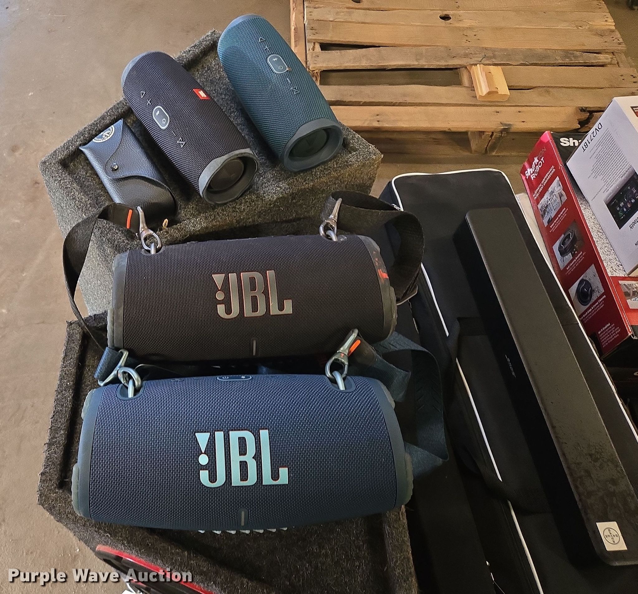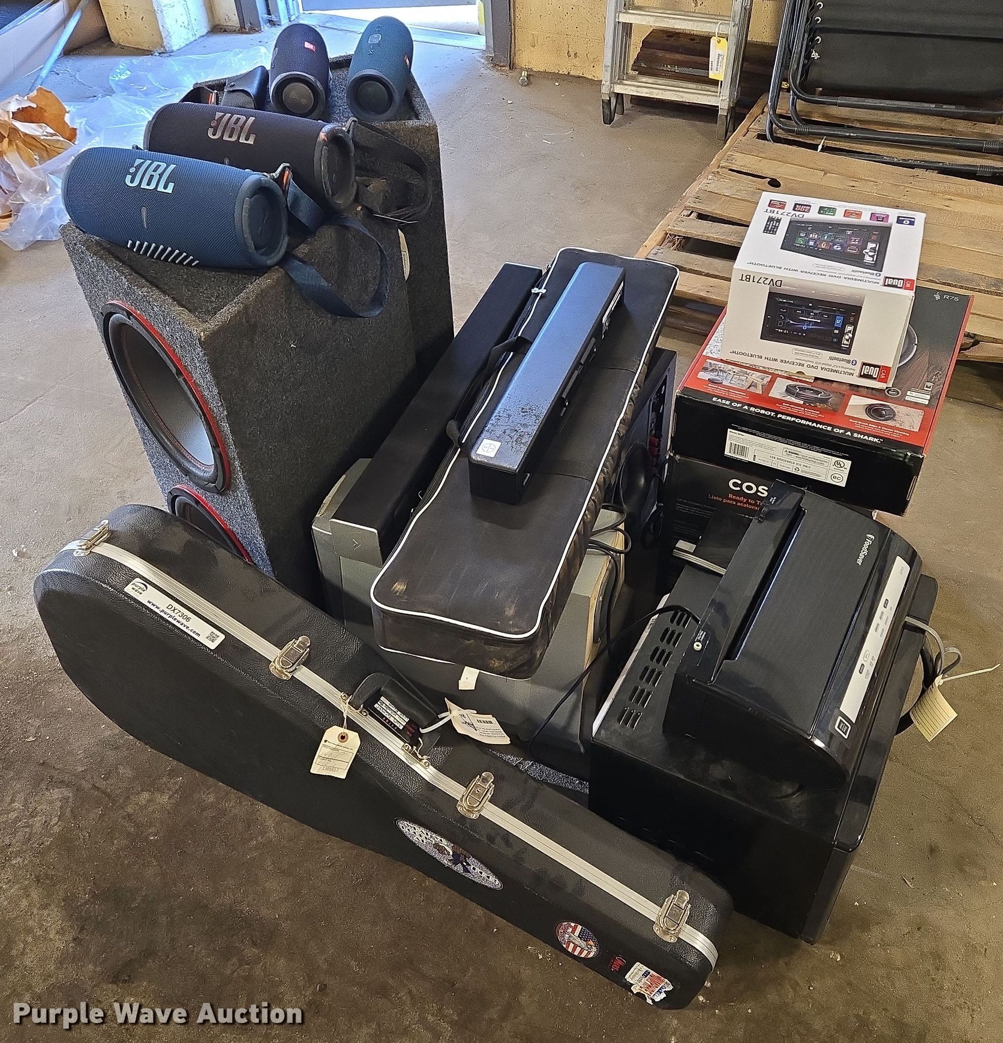 Purple Wave is selling a used Electronics in South Dakota. This item is a Electronics with the following: (4) JBL Bluetooth speakers, Subwoofers, Sound bars, Screen, Car Dual multimedia DVD receiver, Shark ION Robot vacuum, Coloring air fryer, Foodsaver vacuum sealer, Hamilton beach microwave, Martin guitar