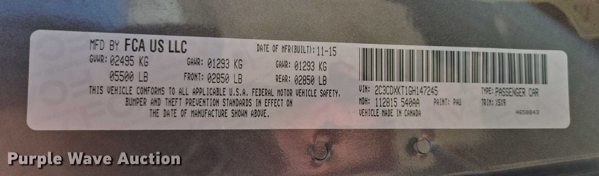 - VIN: 2C3CDXKT1GH147245
