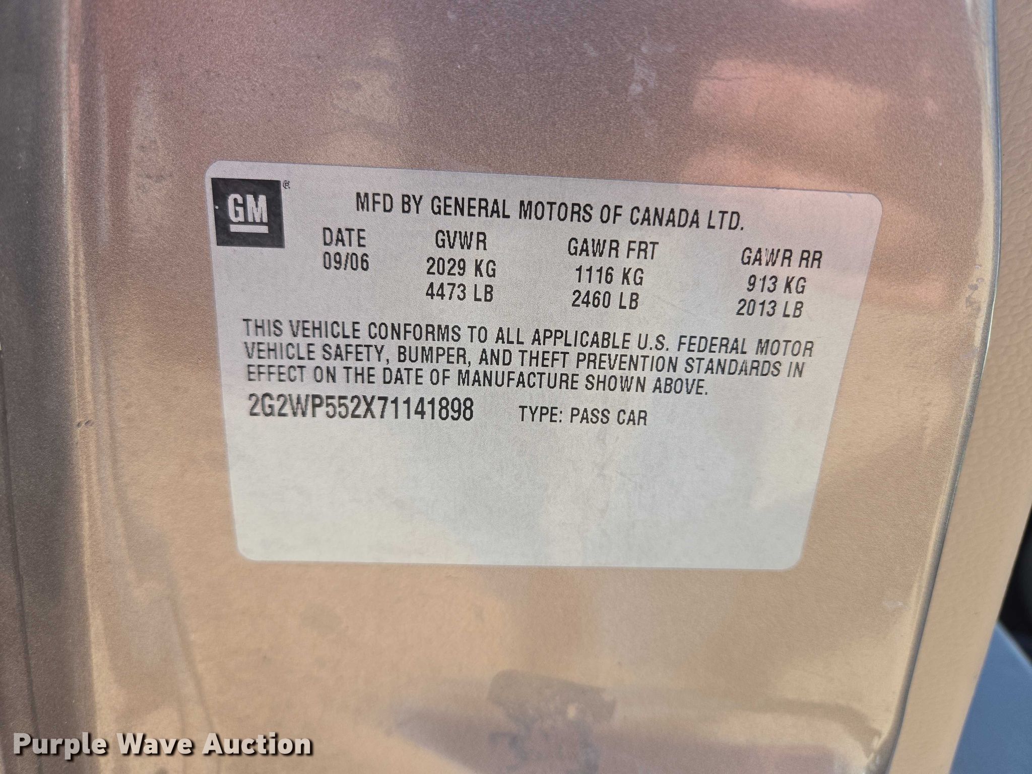 - VIN: 2G2WP552X71141898