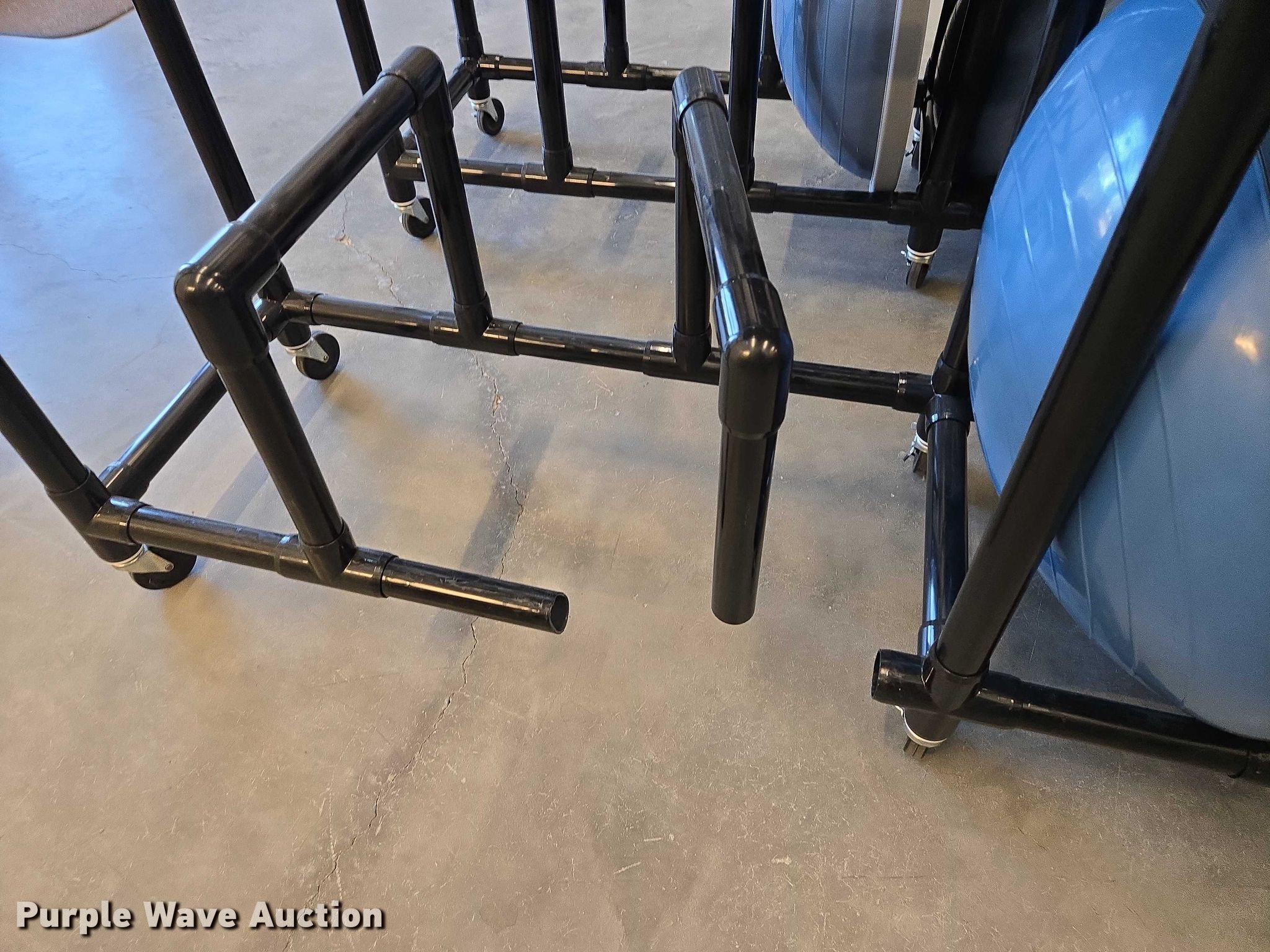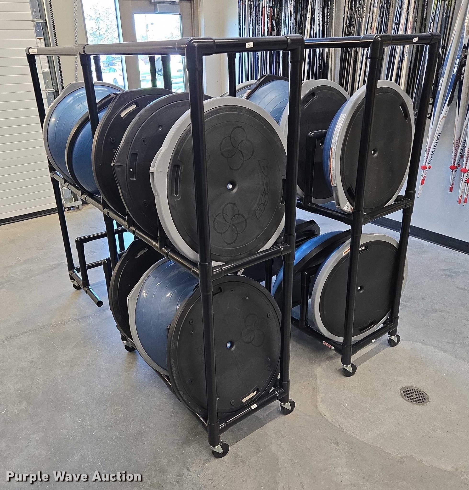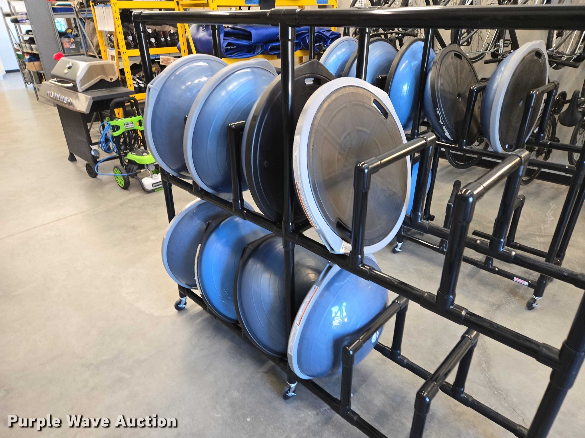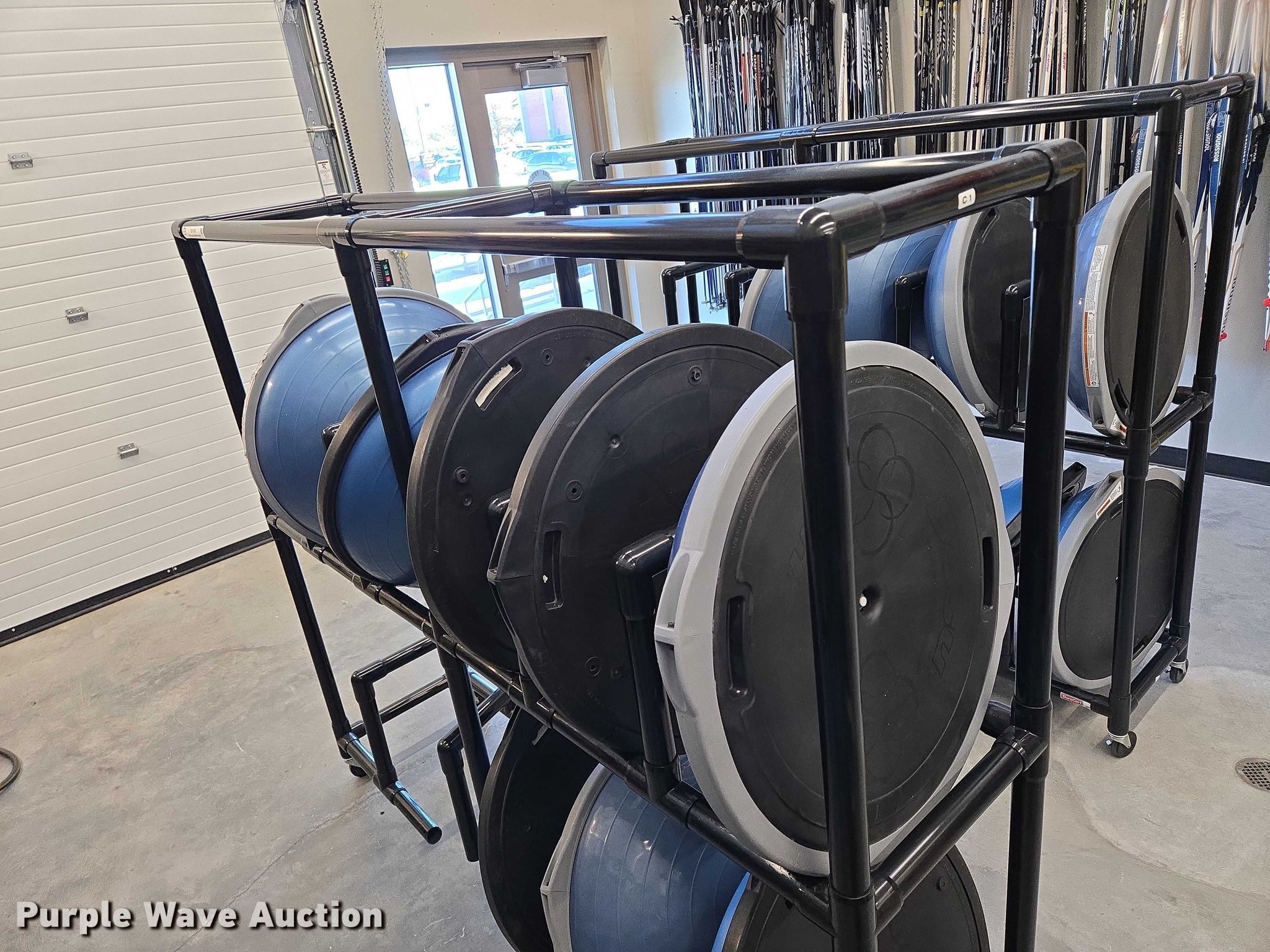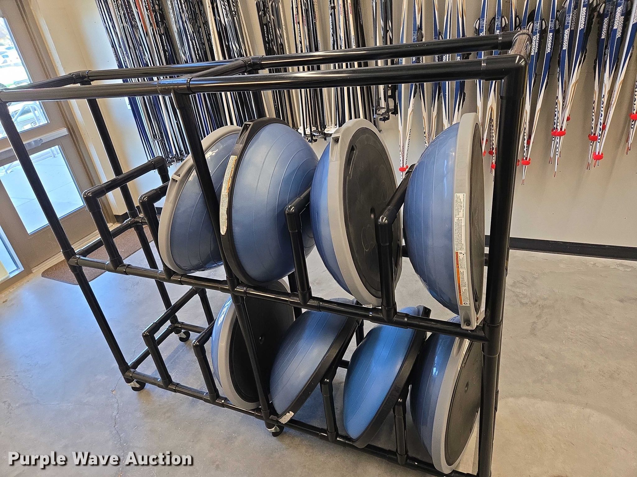 Purple Wave is selling a used Sporting Goods in South Dakota. This item is a (16) Bosu balance training balls with the following: (2) storage carts, One piece of PVC pipe needs replaced on one cart